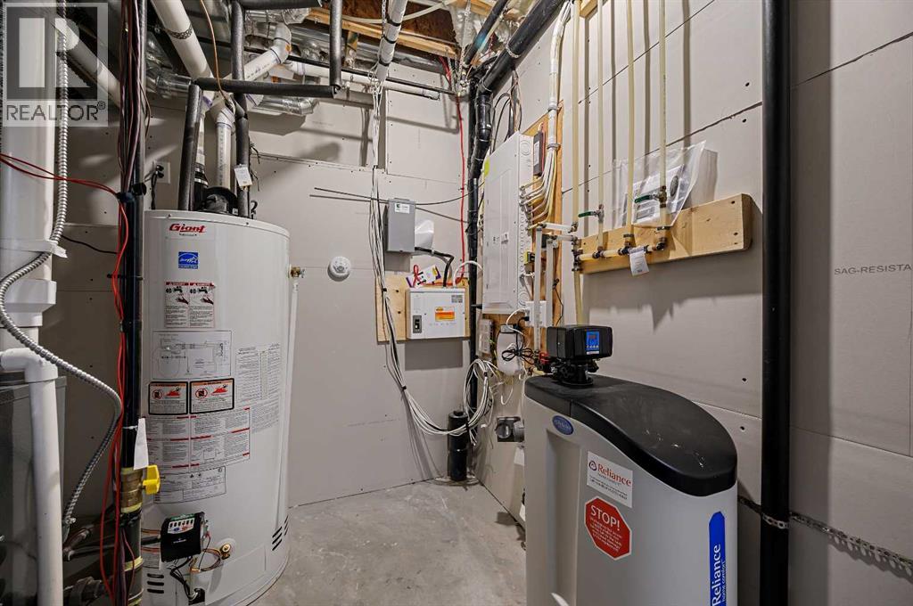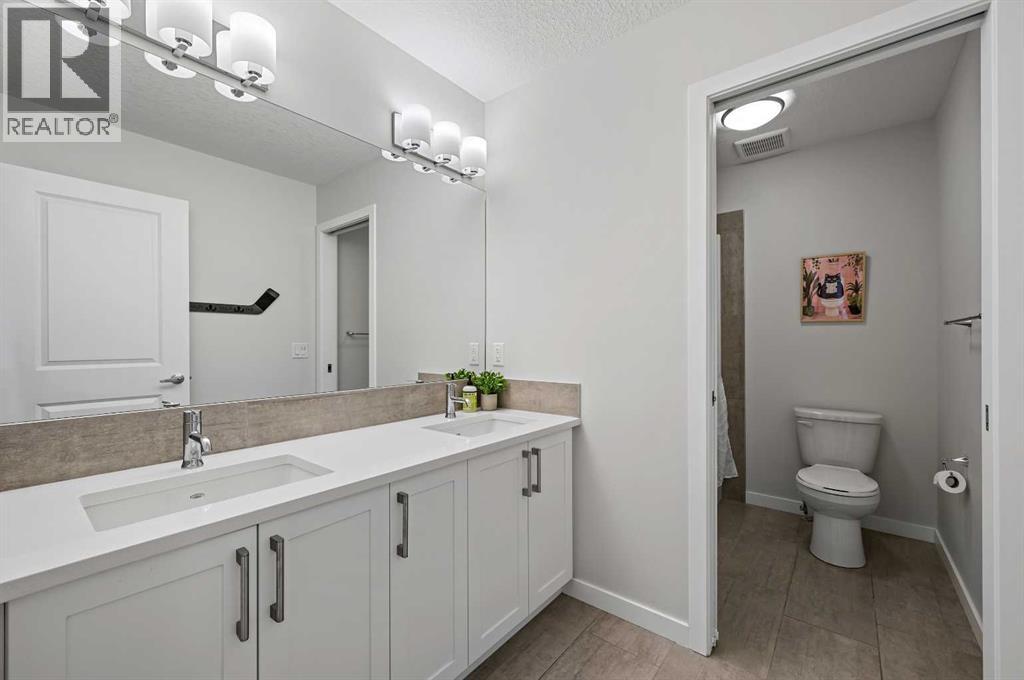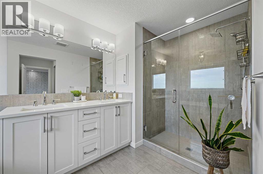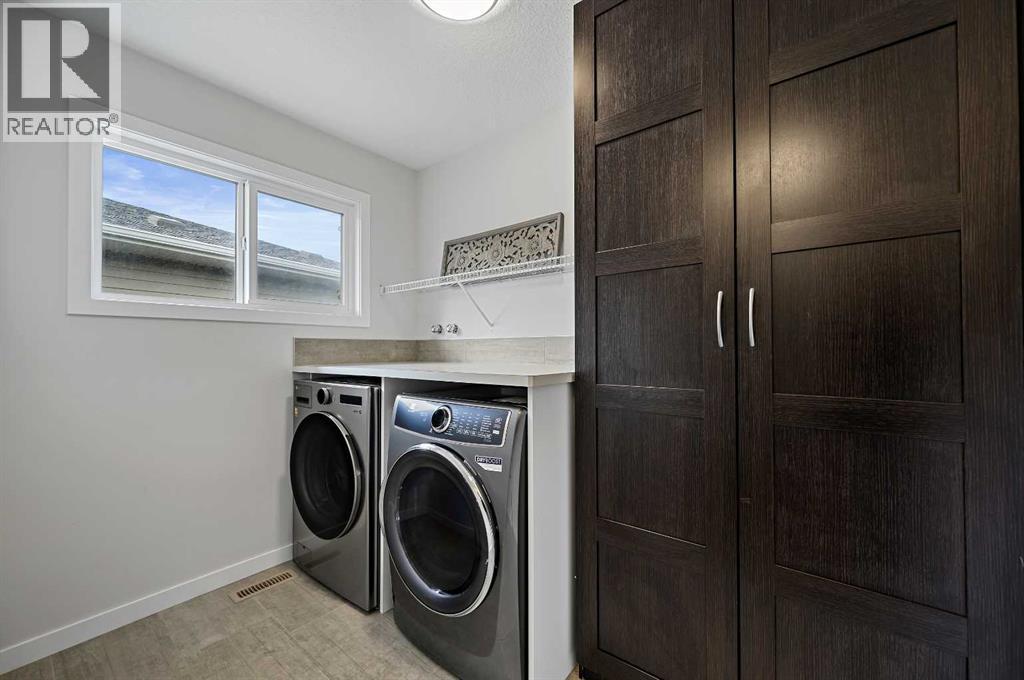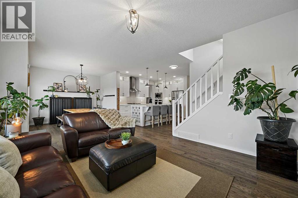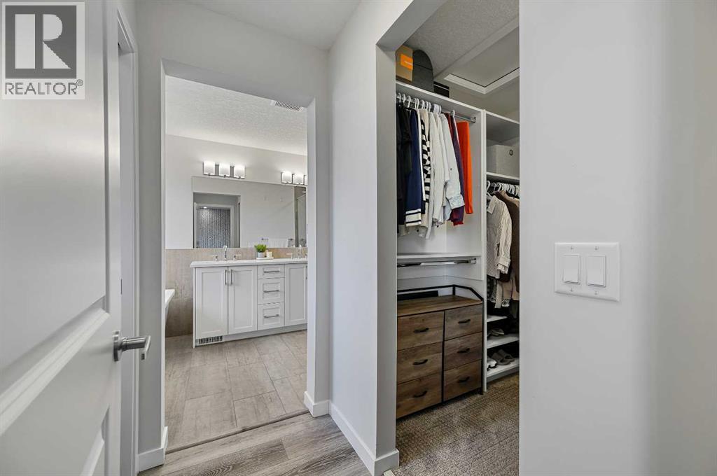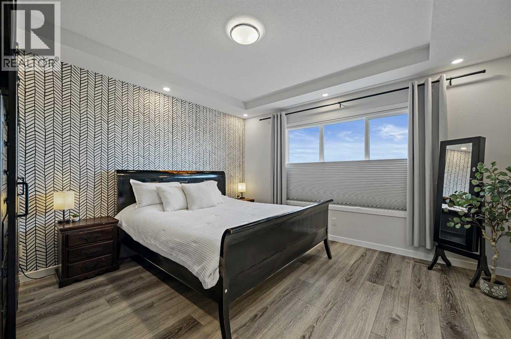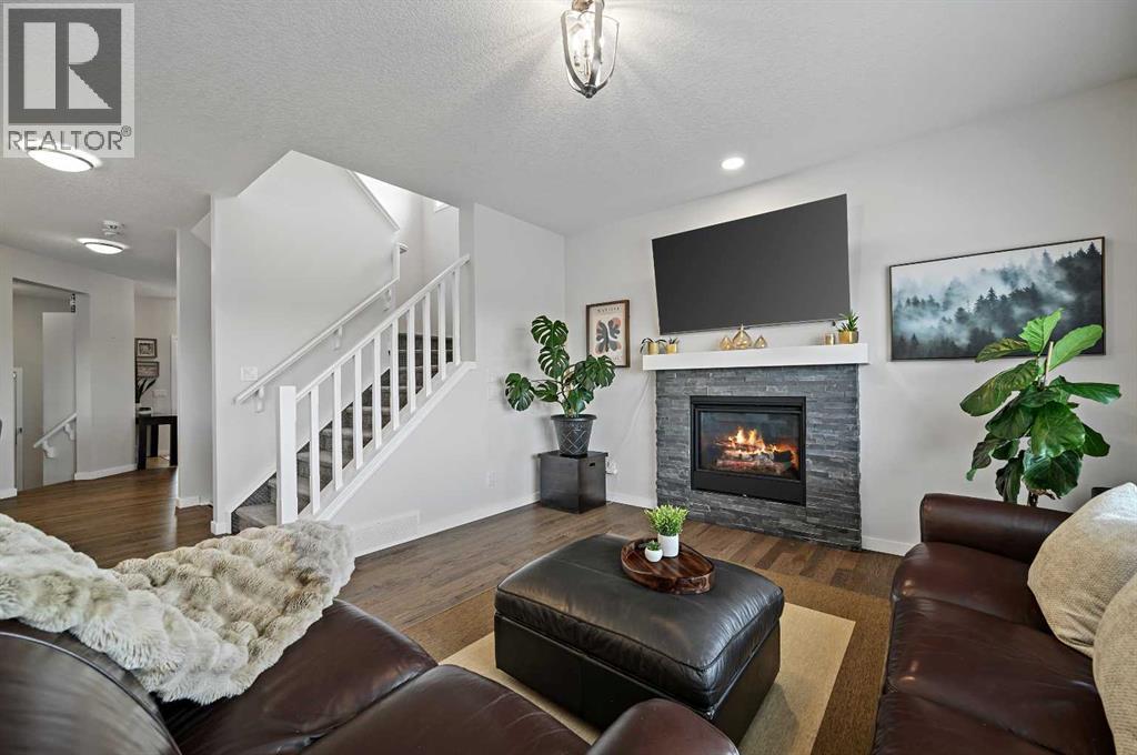 Luxury living meets everyday functionality in this extensively upgraded 5-bedroom, 4-bathroom modern two-storey WALK-OUT, TRIPLE GARAGE home backing directly onto pathways, no "fish bowl" here! You even get some beautiful MOUNTAIN views!Offering 3,384 sqft of total developed living space on a 4,724 sqft WALK-OUT lot, this Hillcrest home combines thoughtful design with premium finishes throughout.The main floor features 9’ ceilings, designer lighting, and a striking stone-surround gas fireplace. The chef-inspired kitchen is a showpiece with a massive flush quartz island with built-in wine storage and seating for four, full-height cabinetry with glass upper doors including accent lighting and under-cabinet lighting, farmhouse under-mount stainless steel sink, gas cooktop stove, built-in wall oven and microwave, chimney-style hood fan, tile backsplash, and a large pantry. A tucked-away tech space/drop zone behind the kitchen offers the perfect homework or work-from-home station. The sunk-in mudroom includes built-in lockers and bench seating for organized family living.Upstairs you’ll find four bedrooms — ALL with WALK-IN CLOSETS — plus a large central bonus room with VAULTED ceilings, ideal for family movie nights or a kids’ retreat. The spacious primary suite features a TRAY ceiling, separate recessed (dimmable) pot lights and large walk-in closet with built-ins. The luxurious 5-piece ensuite offers dual sinks with a raised vanity, standalone soaker tub, and a fully tiled shower with additional wand/control. A second 5-piece bathroom serves the additional bedrooms with a separate pocket door to the tub/shower and toilet for added convenience and functionality.The fully developed walk-out basement offers a large recreation area, fifth bedroom, 4pc bathroom, 2 storage rooms and direct access to the recently landscaped backyard that opens seamlessly to the pathway system leading to multiple parks, schools, shopping and more! The large upper deck finished in Dura dek gives the bottom stone patio coverage for those rainy spring days ahead.Enjoy the elevated glass-panel deck finished with duradek, has a BBQ gas line and unobstructed views overlooking the green space. The TRIPLE tandem garage provides exceptional parking, storage, and workspace flexibility.Additional upgrades include: Dual-zone high-efficiency furnace, high-efficiency water heater, reverse osmosis system, water softener and load management system to meet all current required codes.Located close to schools, parks, playgrounds, pathways, shopping, restaurants, and medical services — this exceptional Airdrie WALK-OUT home delivers space, storage, privacy, and refined comfort in one of the city’s most desirable family communities. (id:55690)