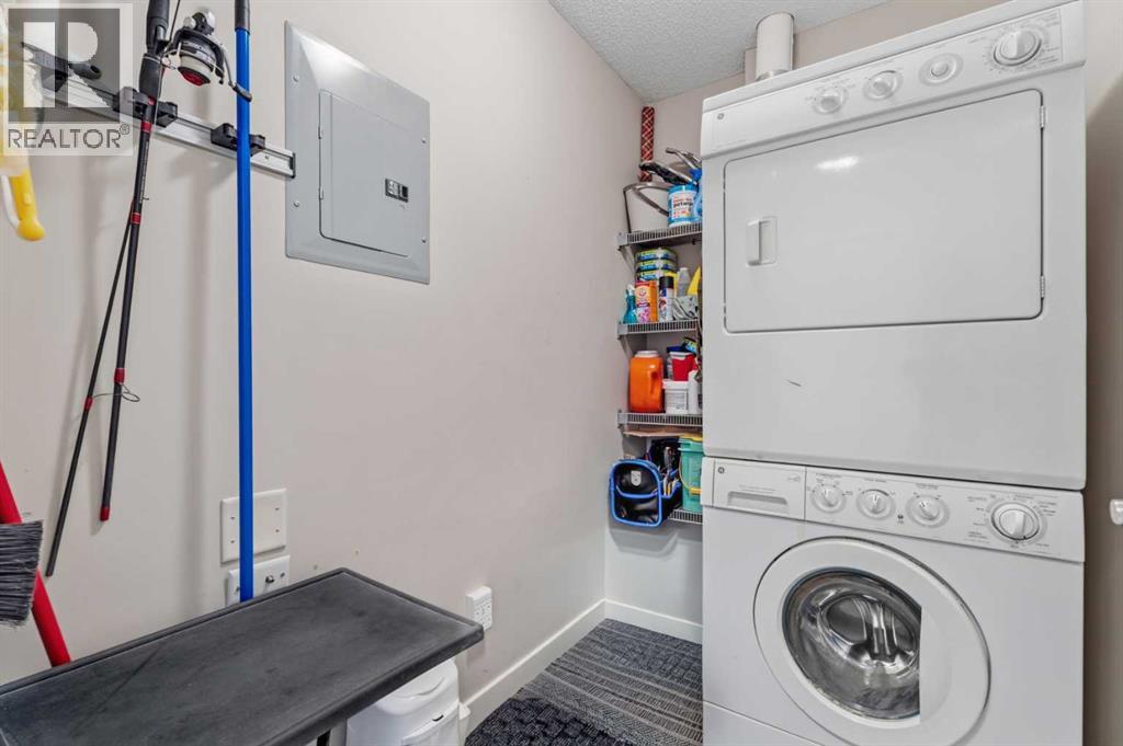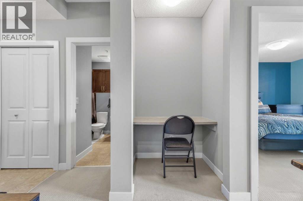 Welcome to Alora at Sunset Ridge, nestled in a stunning and picturesque community. Known as one of the most scenic neighbourhoods in the Cochrane area, Sunset Ridge offers breathtaking mountain views throughout the community and an exceptional lifestyle surrounded by natural beauty. This bright and inviting 1 bedroom + den, 1 bathroom unit presents a fantastic opportunity for homeowners and investors alike. As you enter, you’re welcomed by an abundance of natural light and a warm, welcoming atmosphere. The thoughtfully designed layout offers great den space which can be used as an office, guest room, or additional living/dining space. The unit has beautiful wood cabinetry, quartz countertops, and ample cabinet/closet space for all your storage needs with a spacious in-suite laundry room as well. Enjoy your private balcony with partial mountain views and a quiet location great for relaxing when the weather is warm. The beautifully maintained complex is laid out to accentuate the surrounding mountain views and features a gym, useful common areas, and meticulous year-round upkeep. A true standout feature of this home is the TWO titled parking stalls, a rare and highly desirable offering in apartment living. Whether you have multiple vehicles, a guest vehicle, or are seeking added long-term value, having two titled stalls is a significant advantage. Don’t miss this opportunity to own in one of Cochrane’s most scenic and desirable communities. (id:55690)