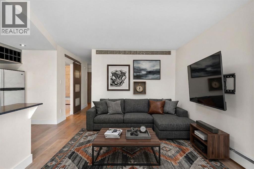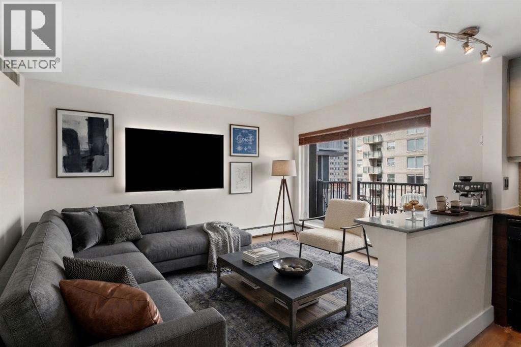 TOP-FLOOR CORNER UNIT - IN ONE OF DOWNTOWN'S BEST LOCATIONS - STEPS TO 17TH AVE! Set on one of the most desirable streets in the Beltline area, this location delivers unbeatable walkability. Just steps to 17th Avenue!! You will be surrounded by Calgary’s top restaurants, cafés, fitness studios and boutiques - all within a 5-minute walk. Quiet, tree-lined and incredibly central, this building is on a street that offers both energy and calm. Located in a well-maintained small (only 16 units!) CONCRETE building, this TOP FLOOR, corner unit offers added privacy with no neighbours above you. This 4-level walk-up is known for its solid construction and quiet living. Secure FOB access gets you in the building. Inside, you’ll find NEW HARDWOOD floors throughout, BIG closet at front entrance. This unit maximizes the space - 484 sq ft - and feels big and open! Functional 1 bedroom, 1 bathroom layout with TONS of natural light. Enjoy cooking in your kitchen with lots of counter space (GRANITE!) PLUS a great sized window above the sink! Open concept. BALCONY. Nice sized bedroom with AWESOME closet space and glass sliding doors. Barn doors, baseboards, lighting, handles and cabinet coloring - truly make this unit feel updated and modern! LAUNDRY IN THE UNIT! Brand new washer/dryer. Soaker tub. PET-FRIENDLY building (with board approval) - no size or breed restrictions - makes this a rare find for pet owners in the inner city!!! Condo fees include heat and water. An ideal opportunity for those seeking inner-city living with exceptional walkability, privacy and long-term value. Don't have a car? You can literally WALK/BIKE everywhere....But this unit comes with assigned parking! Work downtown? Enjoy the benefits of inner-city living - with reduced commute times = come home for lunch or to take the dog out!! Transit is also close - 2 bus stops are within a two min walk. Perfect for young professionals, first-time buyers or investors! STOP renting - pay your own mortgage instead!!!! NO POST TENSION CABLES! (id:55690)