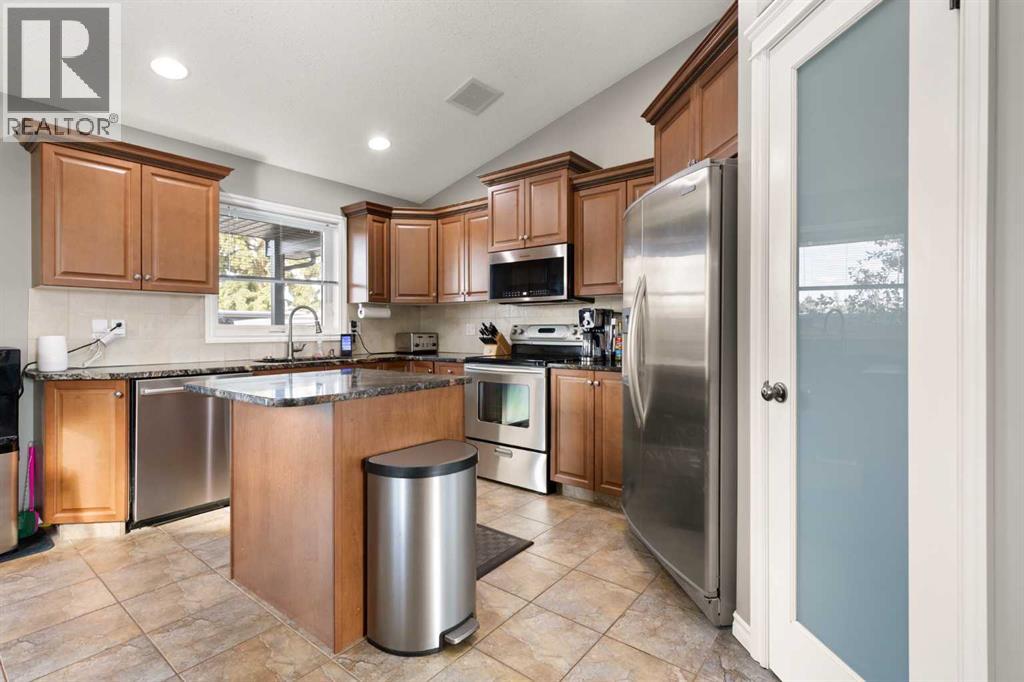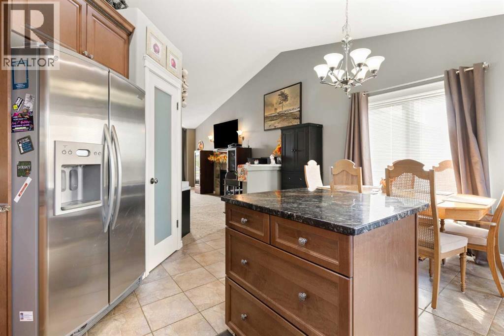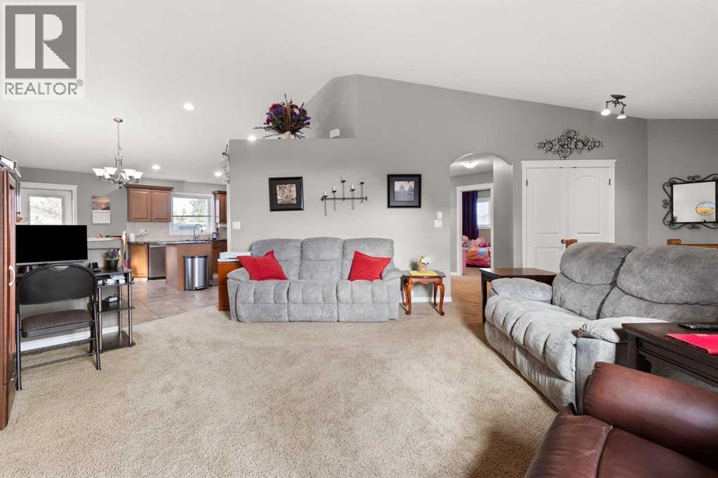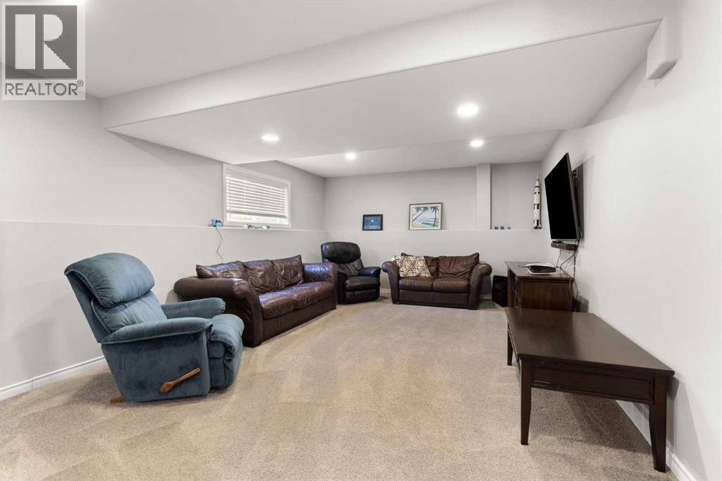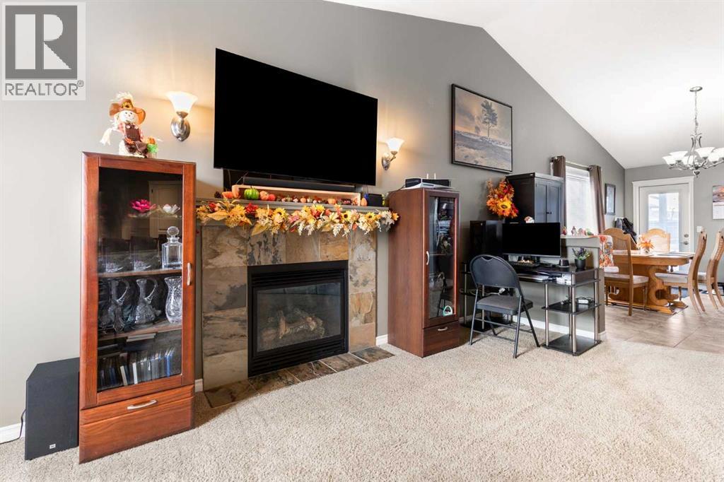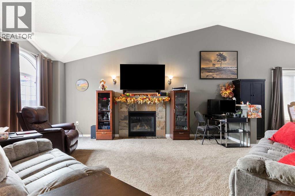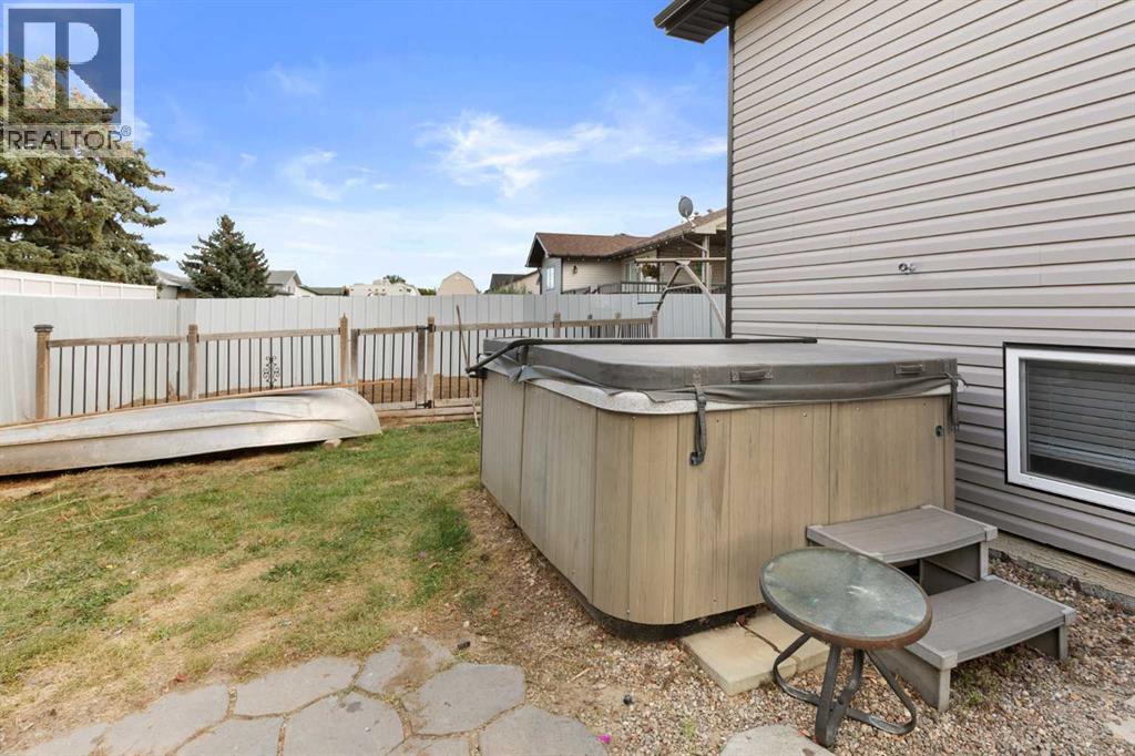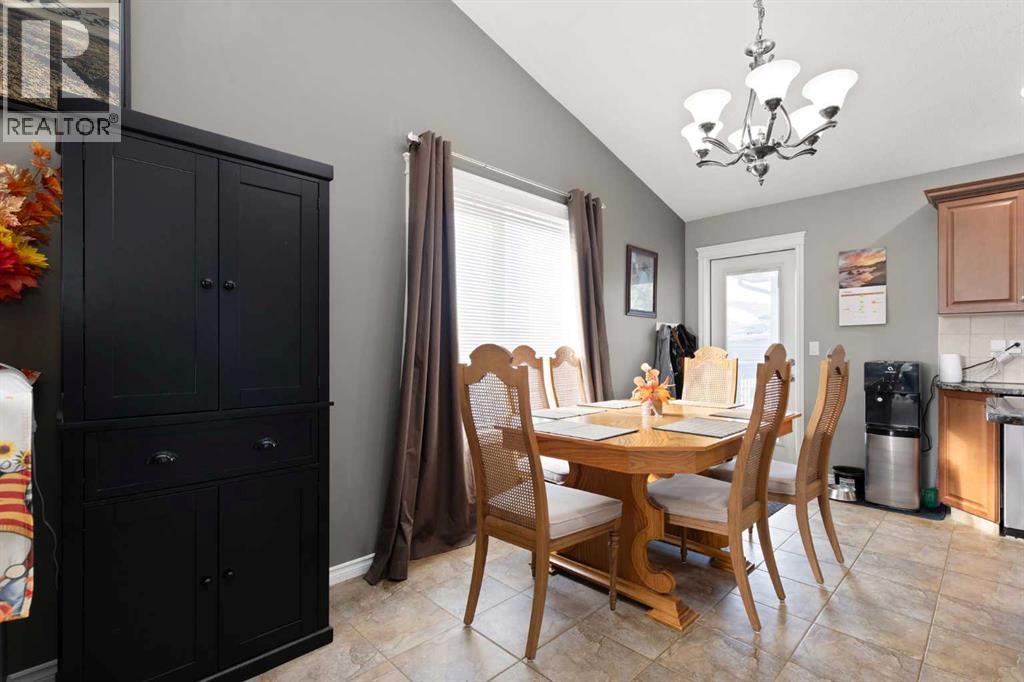 This beautifully designed 1,400 sq. ft. bi-level, built by Serenity Homes, sits on a quiet cul-de-sac and offers an impressive blend of quality, functionality, and modern comfort. Step inside and be greeted by vaulted ceilings and a bright, open layout. The kitchen showcases granite countertops, maple cabinetry, tiled backsplash, corner pantry, and a large island overlooking the dining area. The living room features a cozy gas fireplace, while the primary suite includes deck access, a 4-piece ensuite with double sinks, shower, and walk-in closet. Two additional bedrooms, main-floor laundry, and a second 4-piece bathroom complete the upper level - a highly popular layout for families that balances comfort and convenience. The professionally developed basement (2019) is perfect for growing families - featuring a massive family room, two spacious bedrooms, and a full 4-piece bathroom. Large windows flood the space with natural light, creating a warm and inviting atmosphere ideal for entertaining or relaxing. Outside, enjoy the fully fenced and landscaped yard with underground sprinklers front and back (including the garden), a maintenance-free covered deck, patio with firepit area (blocks for fireplace are stored under deck), and hot tub. The 23 × 24 attached garage is insulated, plumbed for heat, and paved triple car driveway out front! Oversized RV parking is available in the backyard OR there's a smaller area in the front driveway that could be utilized. Even better - the thermostat, door locks, and garage doors can all be controlled remotely via app, offering convenience and peace of mind. Recent updates include shingles replaced in 2021, paved driveway, adding to the home’s already strong pride of ownership. Perfectly located across from a walking path with river/coulee views, this property delivers space, serenity, and smart living - all in one incredible Redcliff location. (id:55690)