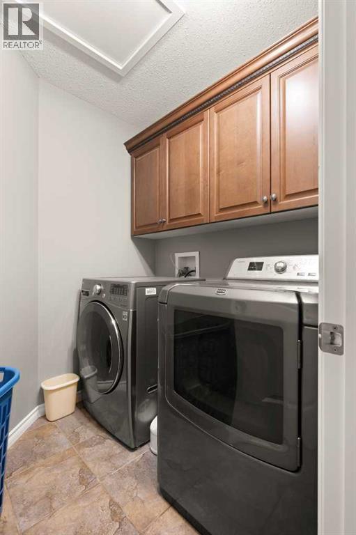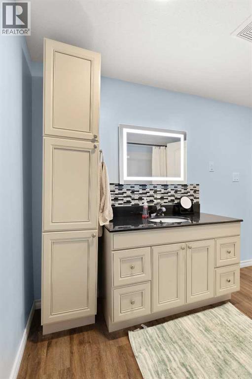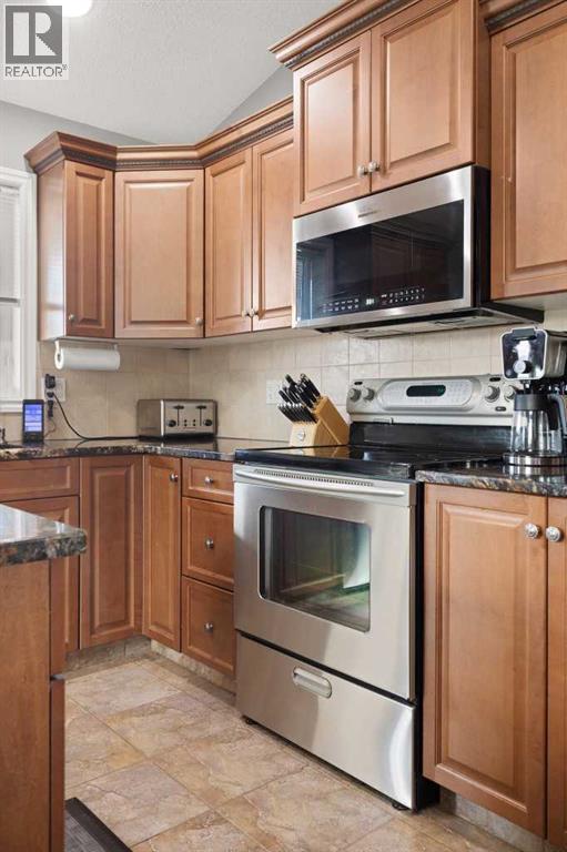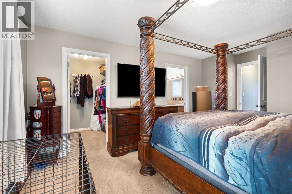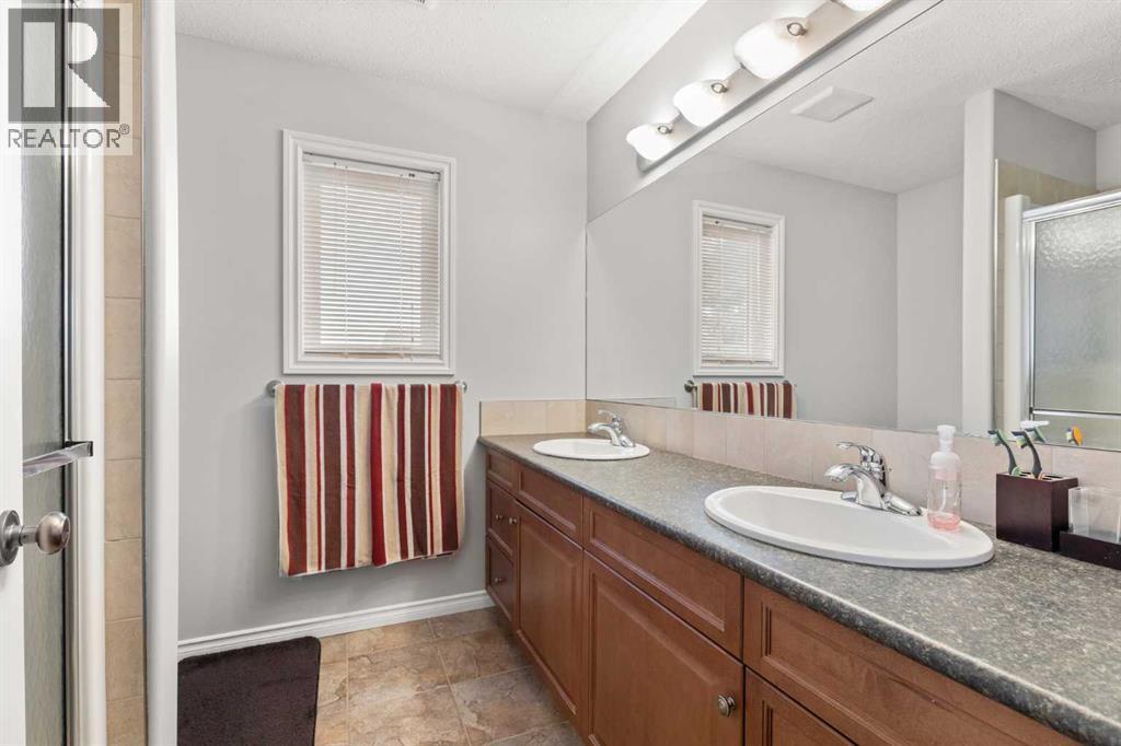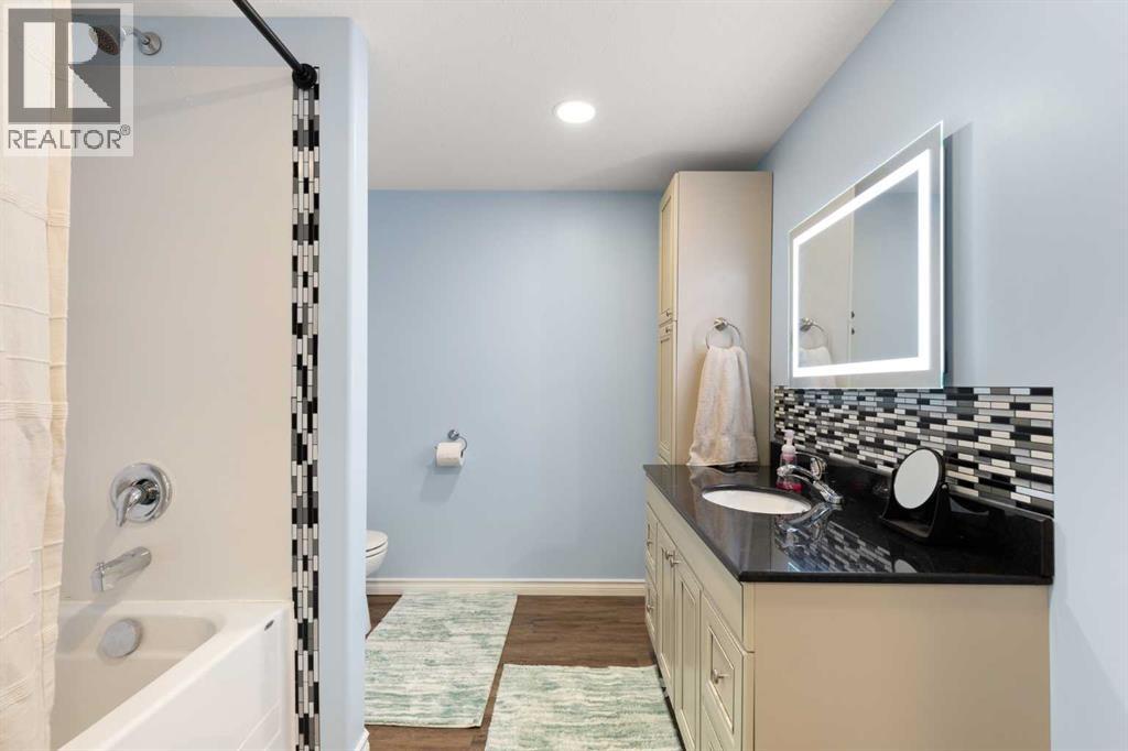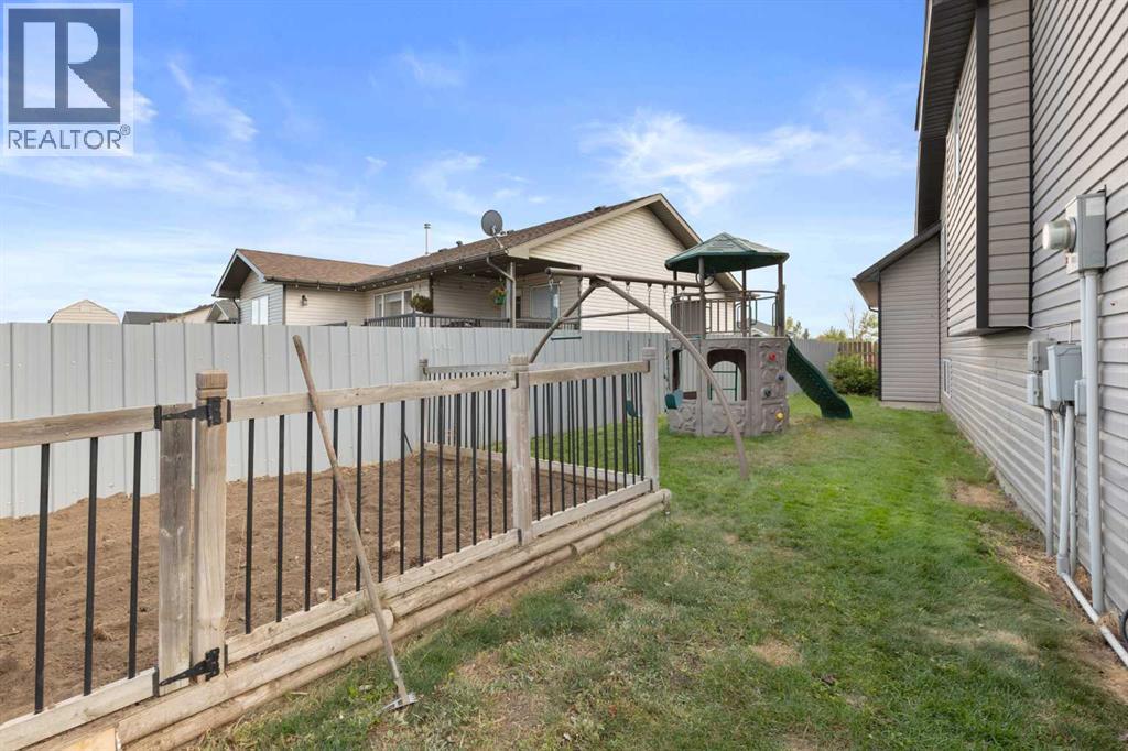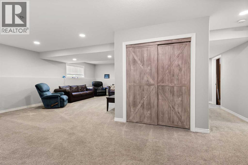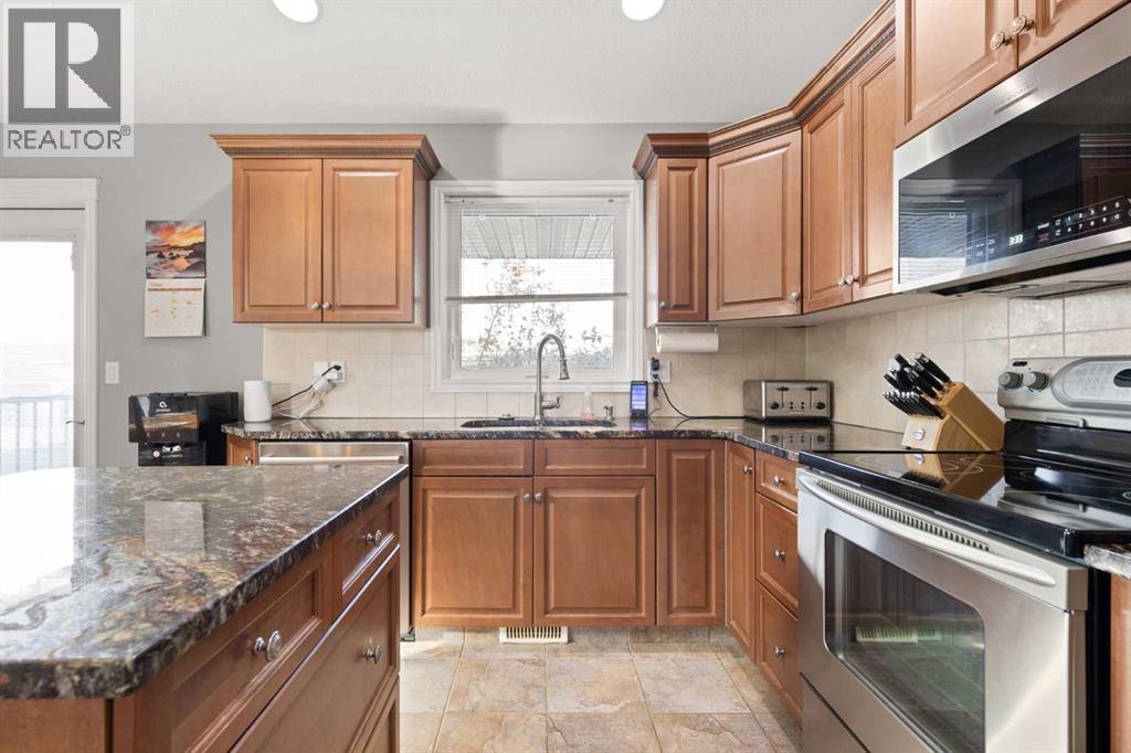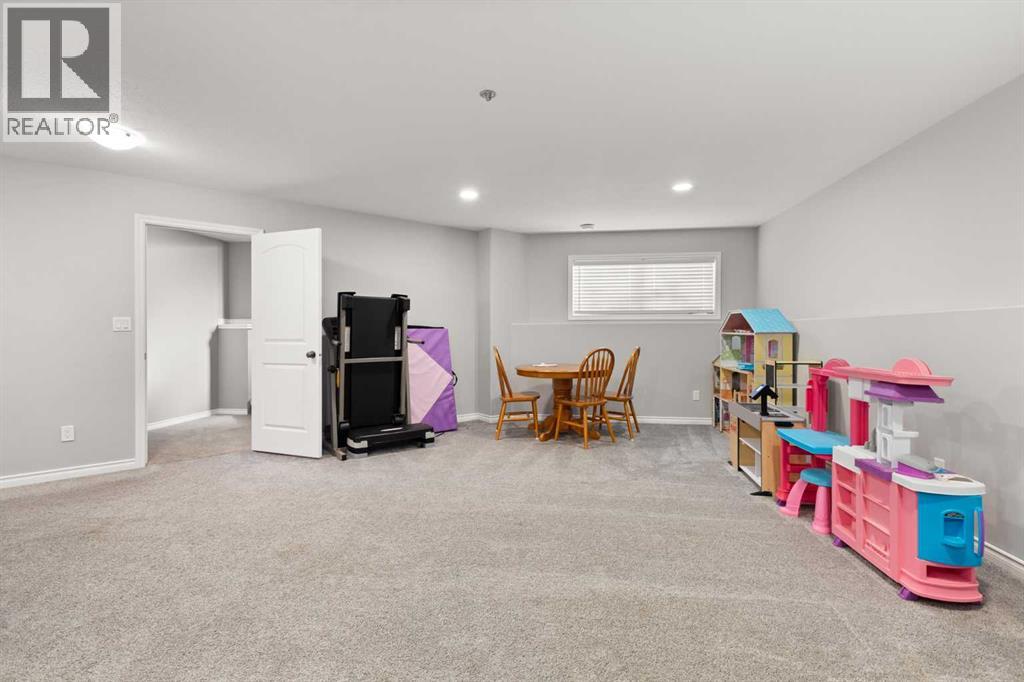 This beautifully designed 1,400 sq. ft. bi-level, built by Serenity Homes, sits on a quiet cul-de-sac and offers an impressive blend of quality, functionality, and modern comfort. Step inside and be greeted by vaulted ceilings and a bright, open layout. The kitchen showcases granite countertops, maple cabinetry, tiled backsplash, corner pantry, and a large island overlooking the dining area. The living room features a cozy gas fireplace, while the primary suite includes deck access, a 4-piece ensuite with double sinks, shower, and walk-in closet. Two additional bedrooms, main-floor laundry, and a second 4-piece bathroom complete the upper level - a highly popular layout for families that balances comfort and convenience. The professionally developed basement (2019) is perfect for growing families - featuring a massive family room, two spacious bedrooms, and a full 4-piece bathroom. Large windows flood the space with natural light, creating a warm and inviting atmosphere ideal for entertaining or relaxing. Outside, enjoy the fully fenced and landscaped yard with underground sprinklers front and back (including the garden), a maintenance-free covered deck, patio with firepit area (blocks for fireplace are stored under deck), and hot tub. The 23 × 24 attached garage is insulated, plumbed for heat, and paved triple car driveway out front! Oversized RV parking is available in the backyard OR there's a smaller area in the front driveway that could be utilized. Even better - the thermostat, door locks, and garage doors can all be controlled remotely via app, offering convenience and peace of mind. Recent updates include shingles replaced in 2021, paved driveway, adding to the home’s already strong pride of ownership. Perfectly located across from a walking path with river/coulee views, this property delivers space, serenity, and smart living - all in one incredible Redcliff location. (id:55690)