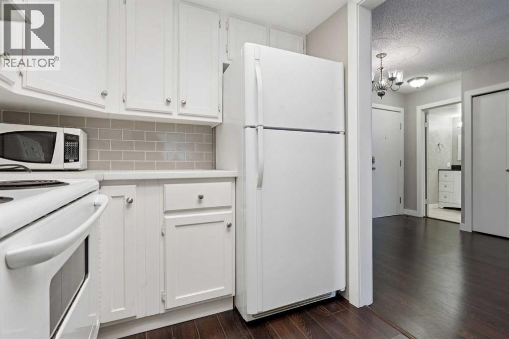 Rarely does a top-floor unit become available at this price point! This well-maintained 1-bedroom condo offers an excellent opportunity for first-time buyers or investors looking to enter the market. The unit faces west, providing beautiful views of partial mountain scenery, along with plenty of natural light. Over the past few years, the home has seen thoughtful updates, including a refreshed bathroom with a new vanity, lighting, and toilet. Dark brown laminate flooring runs throughout the entire unit, offering a modern look that is both stylish and easy to maintain. The cozy living room features an electric fireplace—perfect for staying warm during winter evenings—while the spacious kitchen offers ample storage and functionality. Shared laundry is conveniently located on the basement level. Ideally situated, this condo is just a 5 minute walk to CF Market Mall and approximately a 15 minute walk to the University of Calgary. Don’t miss this fantastic opportunity! Book your showing today! (id:55690)