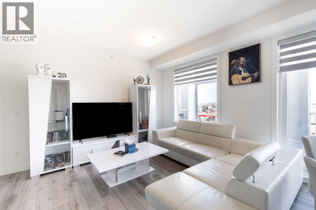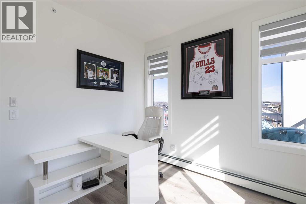 Welcome to Auburn Rise! Here’s your rare opportunity to own one of the best in the building in one of Calgary’s few LAKE communities; A TOP FLOOR, CORNER UNIT featuring TWO BEDROOMS, TWO FULL BATHROOMS, AIR-CONDITIONING and underground parking for TWO VEHICLES! This beautiful building is part of a well-managed complex offering modern style and contemporary finishes that rival most condos in the City, and built only 4 years ago. Step into Unit 406 and you’re welcomed with tall 9-foot ceilings and wide-plank LVP flooring that flows throughout, leading to large windows that completely fill the open-concept living space with BRIGHT natural light. With classic shaker style cabinets in crisp white, and a huge 6-person island with double-waterfall quartz counters and undermount composite sink, the kitchen is a host’s dream come true for guests and family gatherings alike. A suite of quality stainless appliances include a built-in stove and microwave oven, along with a glass countertop range promising quick and easy cleaning once the cooking is done. Step outside and you’ll find a gracious patio, extending nearly 20 FEET along the front of the unit, giving incredible PANORAMIC VIEWS clear to the skyscrapers of the downtown core, and even to the mountaintops to the West, where you’ll get to watch Calgary’s famous SUNSETS! The master bedroom is found tucked away around the kitchen, with an east window offering bright and sunny mornings (and cool evenings), then leading to a walk-through closet which gives way to a private 4-pc ensuite bathroom with dual-sink vanity. The second bedroom also benefits from this east exposure but also offers private access to the shared 4-pc bathroom thanks to a convenient pocket door, meaning guests don’t need to leave the bedroom for access.With so many condos, parking is always an issue, but this unit comes included with an extra large TITLED underground parking stall, allowing for TWO VEHICLES to be parked in tandem. If you need more sto rage, a storage space is also assigned to the unit and located only steps away from the parking stall, the perfect place to store seasonal items or sports equipment. Finally, location, location, location! Imagine NEVER having to drive to the grocery store again! With Co-op located across the street, as well other shops and even the local community pub/restaurant, home can finally be a place where you park your car and take a walk instead. Don’t forget you’ll also get LAKE ACCESS where you can swim and soak up the rays on the beach just down the street from your home! (id:55690)