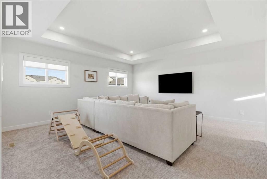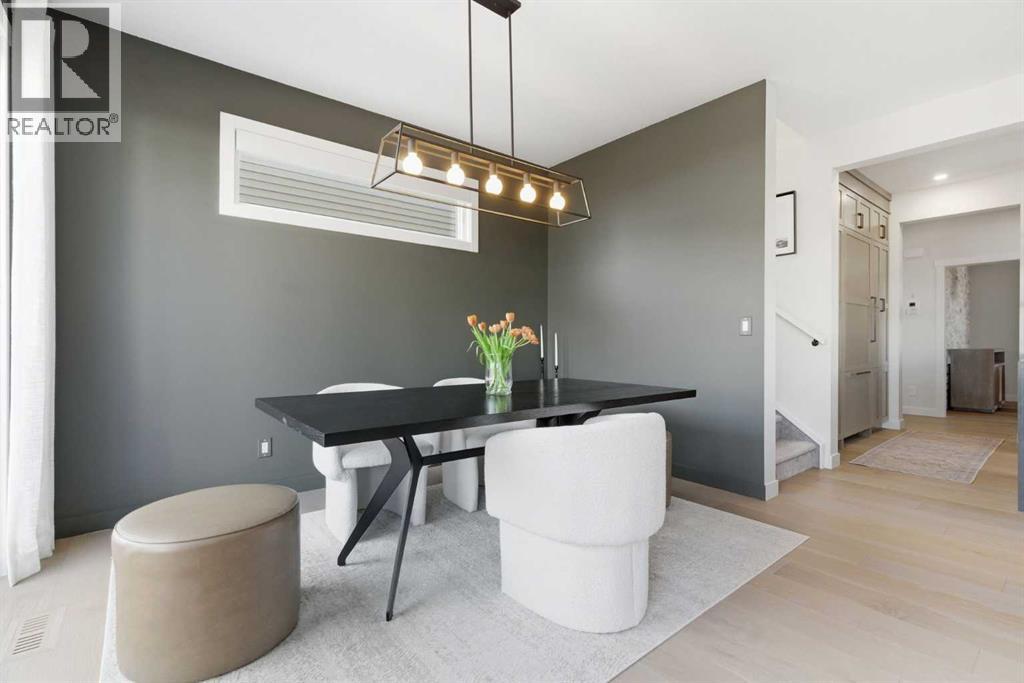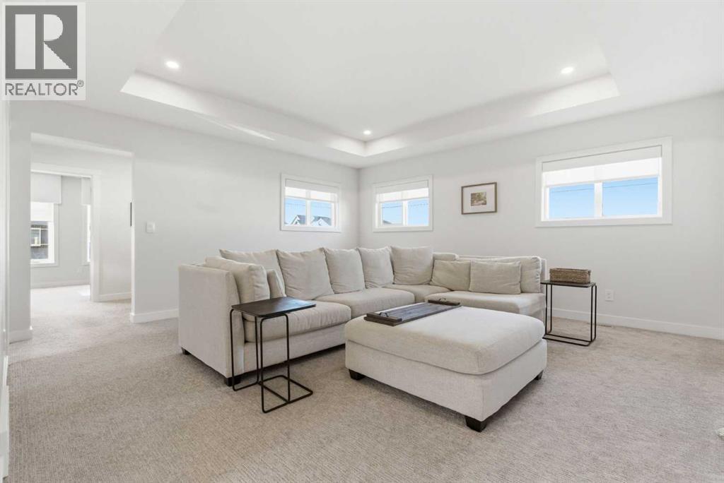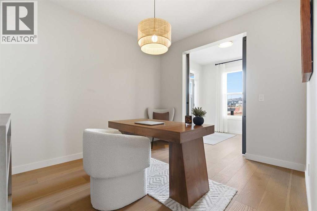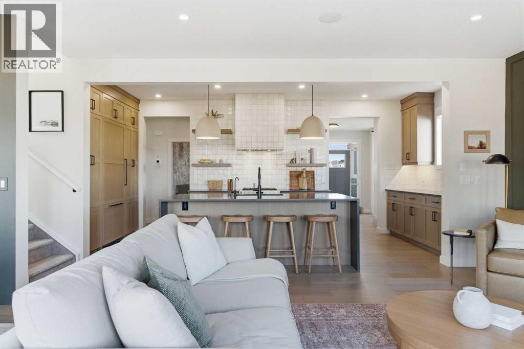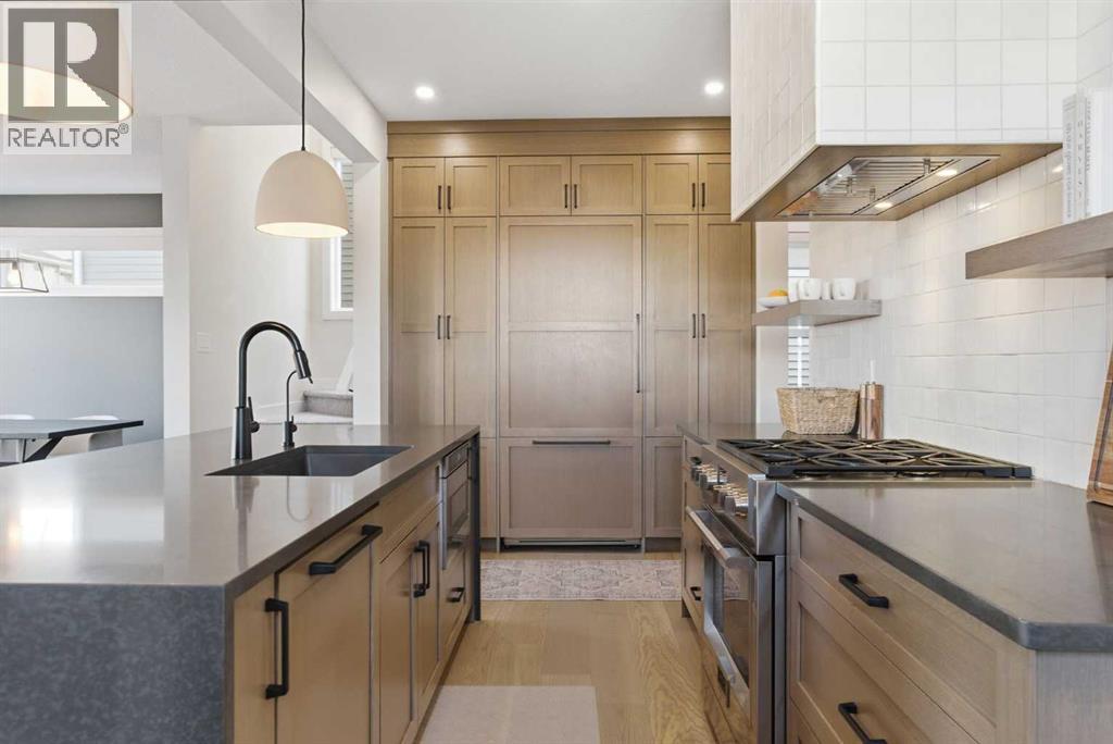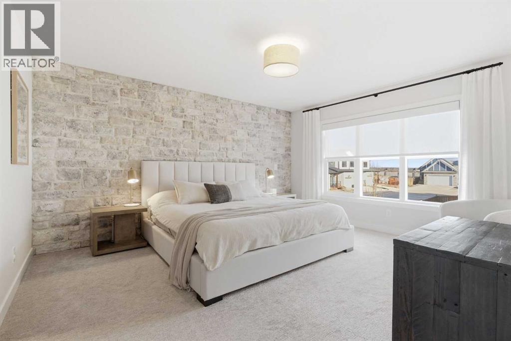 4 BEDROOMS | 3 1/2 BATHROOMS | 2-STOREY | 3,600+ SQFT OF LIVING SPACE | DOUBLE ATTACHED GARAGE | FULLY DEVELOPED BASEMENT | CORNER LOT | Welcome to this stunning Trico-built former showhome located in the sought-after community of Sirocco at Pine Creek, offering over 3,600 sqft of beautifully finished living space with 4 bedrooms and 3.5 bathrooms. Situated on a corner lot, this home is loaded with high-end upgrades and thoughtfully designed for both everyday living and entertaining. As you enter the home, you are greeted by soaring 9-foot ceilings and rich white oak hardwood flooring that flows throughout the main level. The bright and inviting living room features a gas fireplace and elegant decorative wall paneling, creating a warm and refined space to gather. Just off the foyer, a versatile flex room with a glass barn door and striking stone feature wall provides the perfect space for a home office or formal dining room. The heart of the home is the designer kitchen, showcasing white oak cabinetry with integrated appliances, including a hidden fridge and dishwasher, high-end gas range, built-in microwave, and a statement backsplash. Quartz countertops with rounded edges, a large island with waterfall edge and flush eating bar, and full-height cabinetry with crown moulding complete this stunning space. The adjacent dining area opens onto the rear deck and fully fenced landscaped backyard with a stone patio and built-in fire pit - the perfect place for entertaining. A walkthrough butler’s pantry leads to the mudroom with built-in lockers and convenient access to the double attached garage. Upstairs, you’ll find a spacious bonus room with tray ceilings and large windows, along with a convenient study nook. The luxurious primary retreat features a statement stone feature wall, a large walk-in closet with direct access to the laundry room, and a spa-inspired 5-piece ensuite with dual vanities, soaker tub, and a glass shower with bench. Two additional bedrooms, each with their own walk-in closet, and a full 4-piece bathroom complete this level. The fully developed basement with 9-foot ceilings offers even more living space, including a large recreation room with play area, a fourth bedroom, and a full bathroom, making it ideal for guests or a growing family. Additional upgrades include central air conditioning, built-in sound system on the main floor and basement, CAT5 wiring, electronic blinds, and sump pump. Located close to parks, playgrounds, and pathways, this exceptional home offers luxury, space, and functionality in one of Calgary’s newest and most desirable communities. Book your showing today! (id:55690)