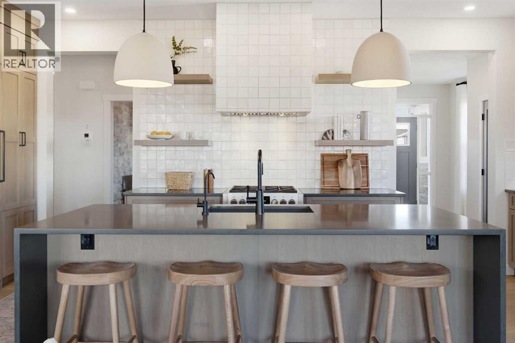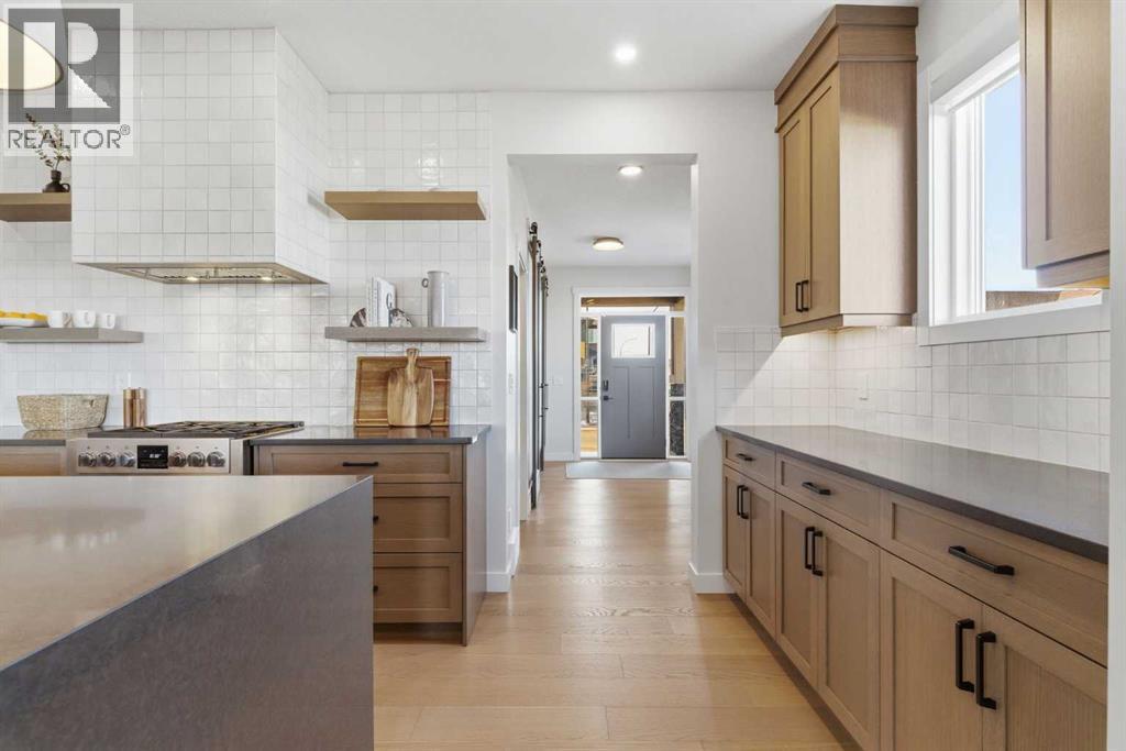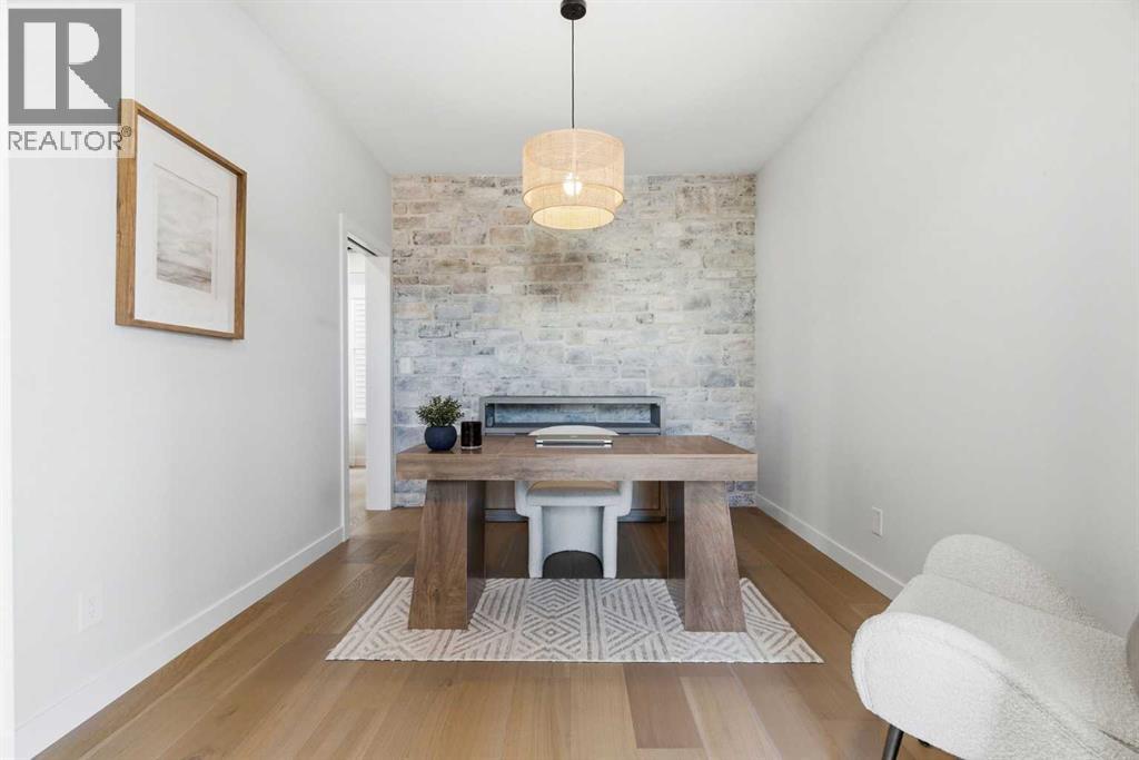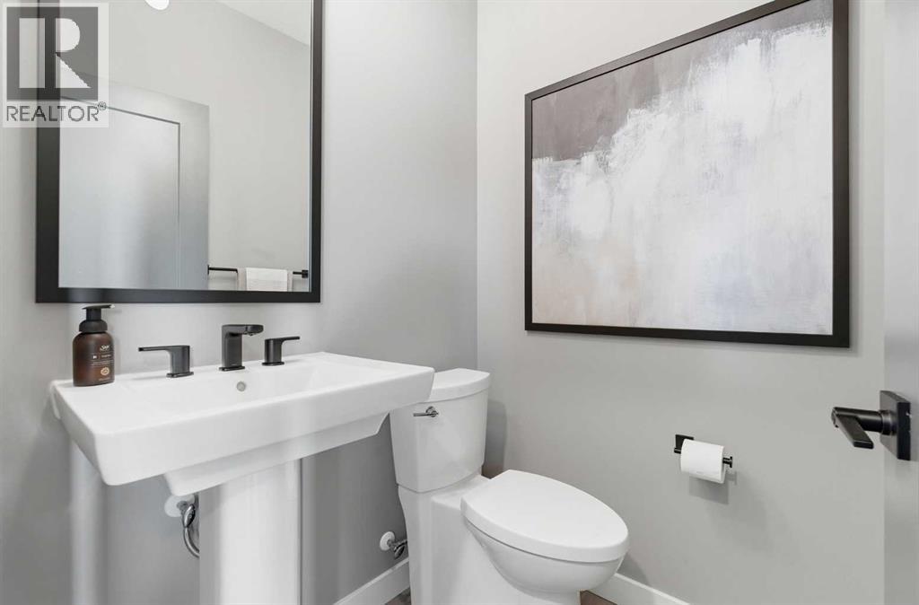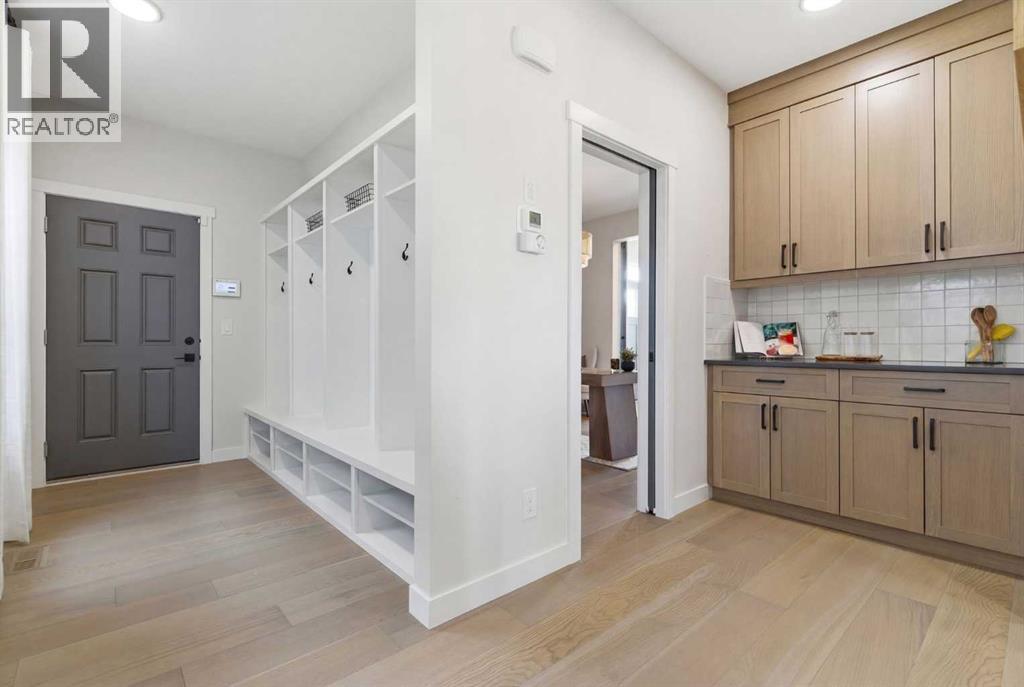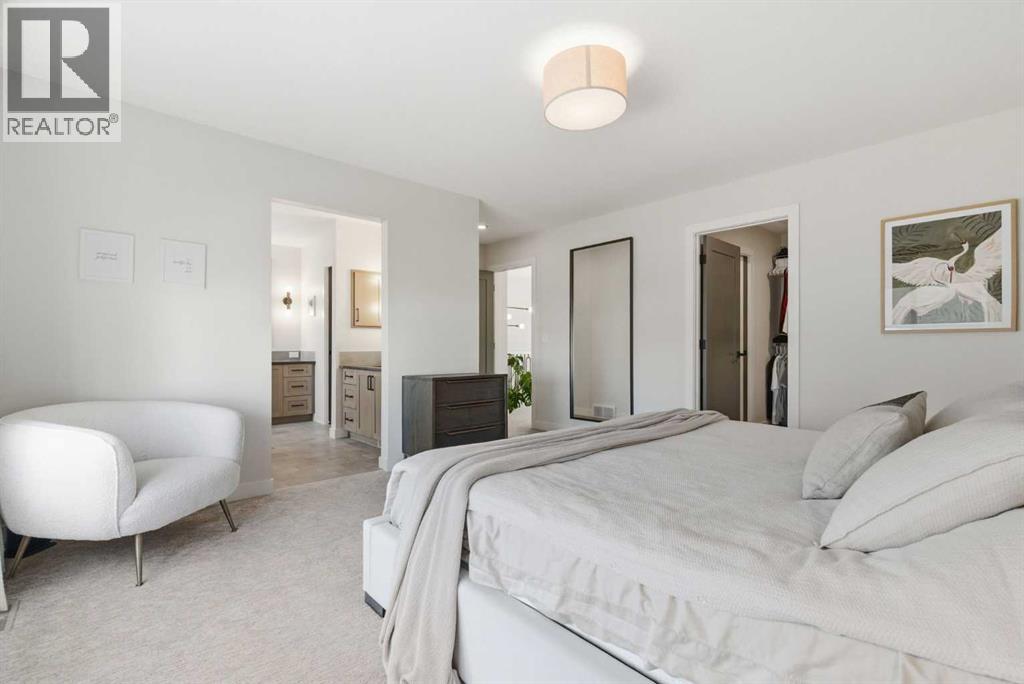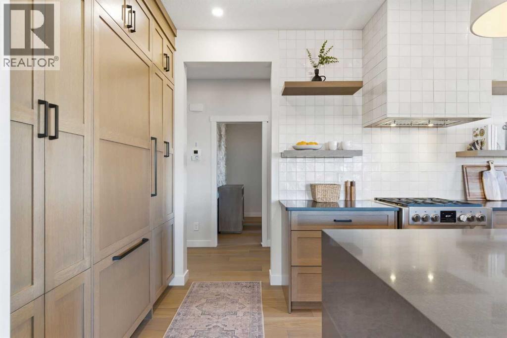 4 BEDROOMS | 3 1/2 BATHROOMS | 2-STOREY | 3,600+ SQFT OF LIVING SPACE | DOUBLE ATTACHED GARAGE | FULLY DEVELOPED BASEMENT | CORNER LOT | Welcome to this stunning Trico-built former showhome located in the sought-after community of Sirocco at Pine Creek, offering over 3,600 sqft of beautifully finished living space with 4 bedrooms and 3.5 bathrooms. Situated on a corner lot, this home is loaded with high-end upgrades and thoughtfully designed for both everyday living and entertaining. As you enter the home, you are greeted by soaring 9-foot ceilings and rich white oak hardwood flooring that flows throughout the main level. The bright and inviting living room features a gas fireplace and elegant decorative wall paneling, creating a warm and refined space to gather. Just off the foyer, a versatile flex room with a glass barn door and striking stone feature wall provides the perfect space for a home office or formal dining room. The heart of the home is the designer kitchen, showcasing white oak cabinetry with integrated appliances, including a hidden fridge and dishwasher, high-end gas range, built-in microwave, and a statement backsplash. Quartz countertops with rounded edges, a large island with waterfall edge and flush eating bar, and full-height cabinetry with crown moulding complete this stunning space. The adjacent dining area opens onto the rear deck and fully fenced landscaped backyard with a stone patio and built-in fire pit - the perfect place for entertaining. A walkthrough butler’s pantry leads to the mudroom with built-in lockers and convenient access to the double attached garage. Upstairs, you’ll find a spacious bonus room with tray ceilings and large windows, along with a convenient study nook. The luxurious primary retreat features a statement stone feature wall, a large walk-in closet with direct access to the laundry room, and a spa-inspired 5-piece ensuite with dual vanities, soaker tub, and a glass shower with bench. Two additional bedrooms, each with their own walk-in closet, and a full 4-piece bathroom complete this level. The fully developed basement with 9-foot ceilings offers even more living space, including a large recreation room with play area, a fourth bedroom, and a full bathroom, making it ideal for guests or a growing family. Additional upgrades include central air conditioning, built-in sound system on the main floor and basement, CAT5 wiring, electronic blinds, and sump pump. Located close to parks, playgrounds, and pathways, this exceptional home offers luxury, space, and functionality in one of Calgary’s newest and most desirable communities. Book your showing today! (id:55690)