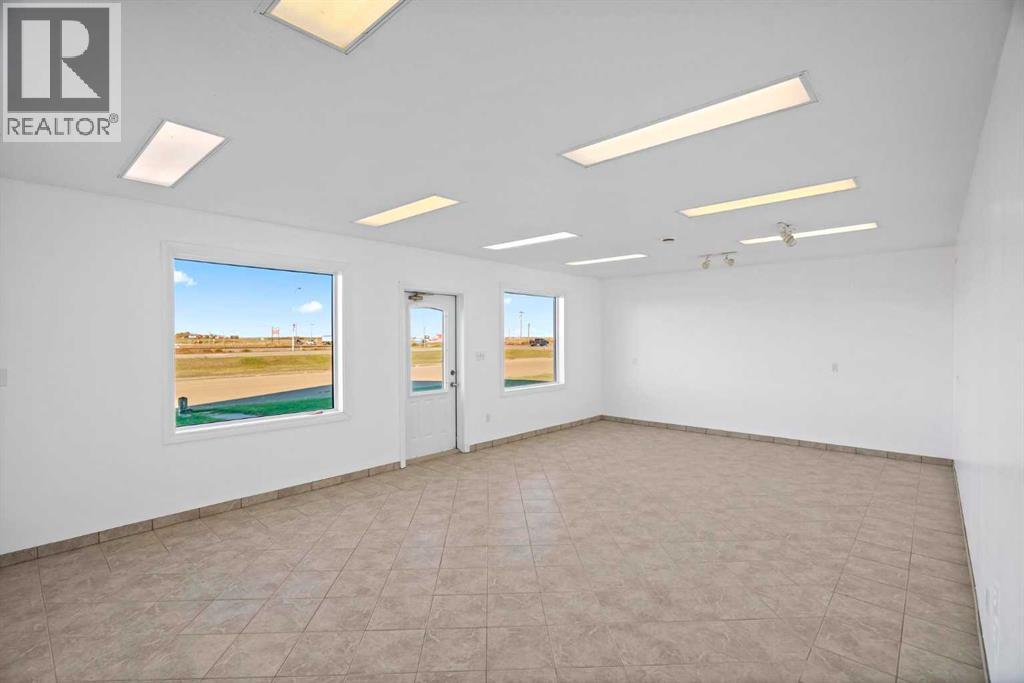Introducing an opportunity to acquire a property in Killam that offers a well appointed shop, show room space, office, storage, and plenty of graveled yard space. The building is wood framed on a concrete foundation with maintenance free steel cladding on the walls and roof. New windows for the showroom are energy efficient and allow plenty of light into the space. The shop interior is fully finished, with in-floor heat, has a 17'-4" ceiling height, a 12'x14' overhead door, and 532 sq.ft. of mezzanine space. There is over 375 sq.ft. of freshly painted show room space, that could also be used for storage or additional offices. There is already a front office, upper office/board room, and a 12'-2 x 23'-5" main floor space off the shop that could be used for storage, a paint booth, or offices. This property is in an excellent location with full access and visibility to both Hi-ways 13 and 36. The building is ready for a new business or for personal use. (id:55690)