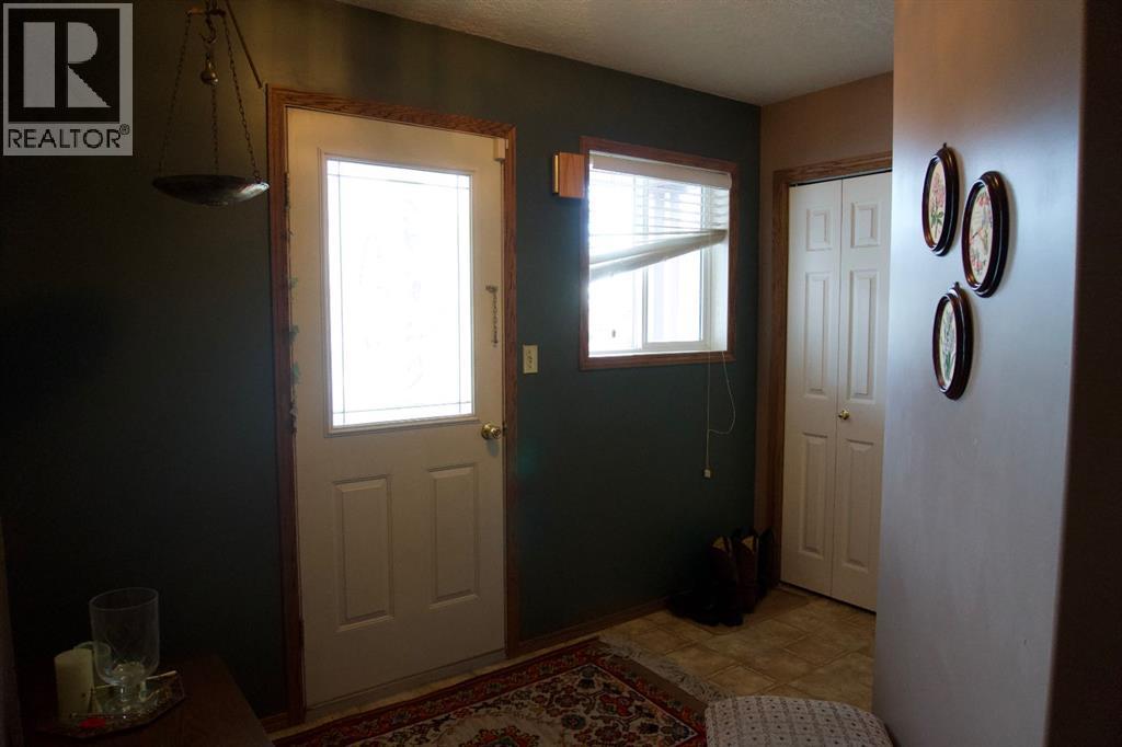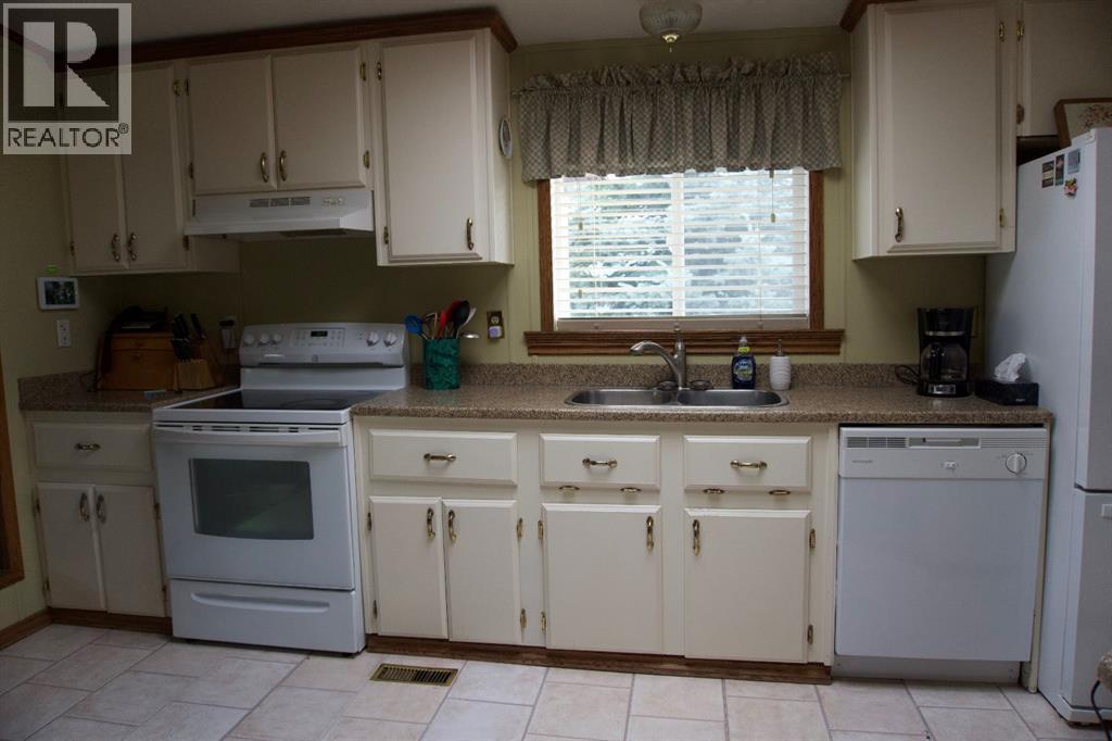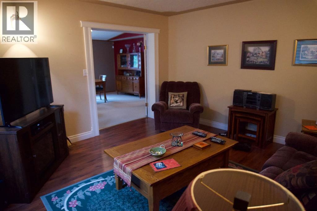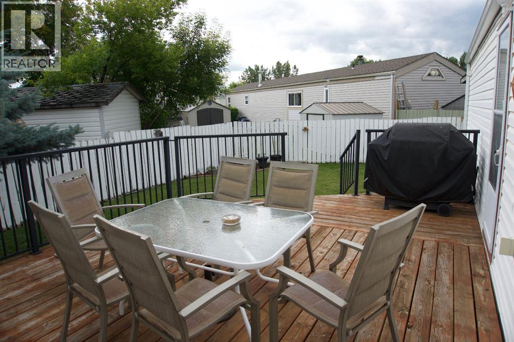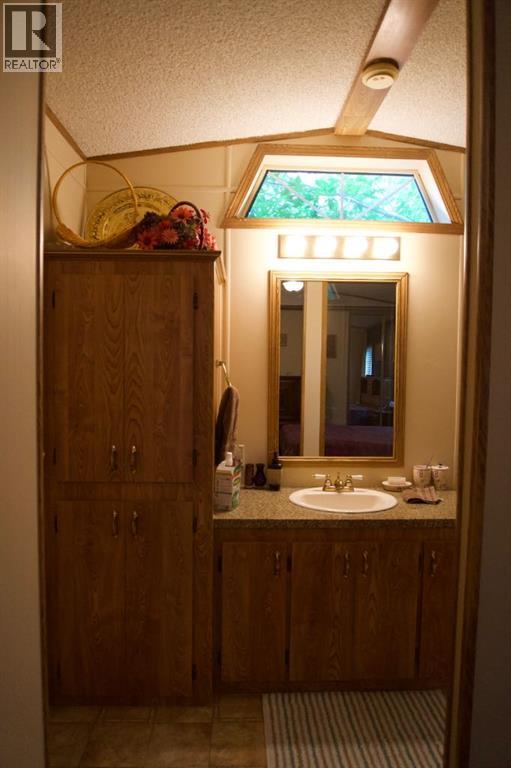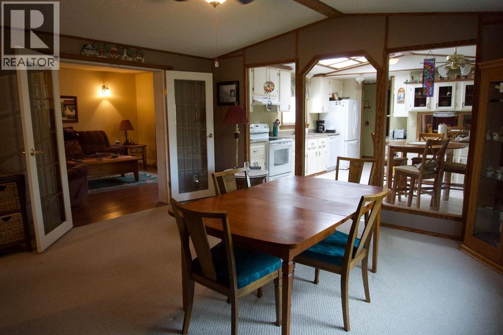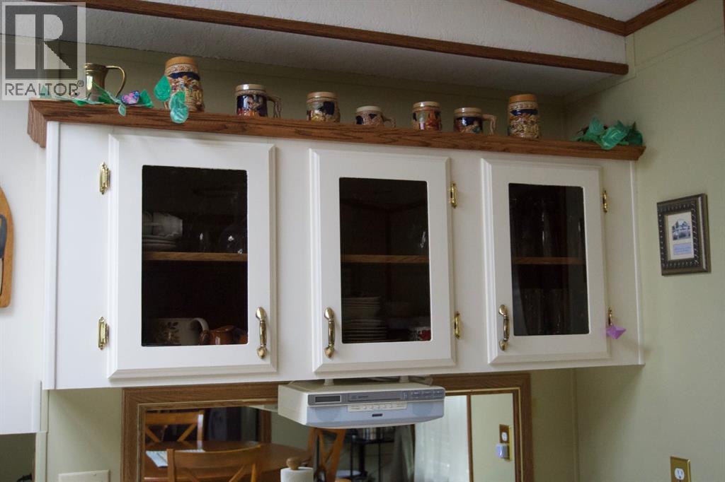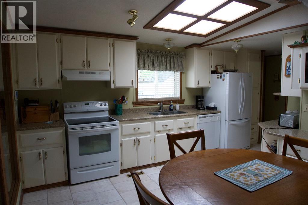Welcome to 50+ living in this adult community designed with seniors in mind. This single wide mobile home with a generous addition creates a unique floor plan boasting a lovely living/ TV room overlooking the deck, a 4th bedroom (currently used as an office), and a generous foyer complete with large coat closet and ample seating to conveniently change footwear. The irregular shape of this front entry accommodates space to welcome several guests at one time. The original living room is now a semi-formal dining room, featuring a west facing large window, carpet flooring, and French doors to the adjacent living room. Glass partition walls either side of the entrance to the bright eat-in kitchen creates an open flow while delineating the space for furniture placement. The kitchen workspace is flooded with natural light from the skylight and window overlooking the deck. Other features include ample cupboard space , a built in China cabinet, and pantry with slide out shelving for convenience. Down the hall a step or two is the laundry/storage/mechanical room opposite the back door which accesses the generous deck. Here is an outdoor space for B-B-Q, summer suppers in a private space sheltered from northerly and westerly breezes, overlooking the fenced back yard. Back inside the entire south end of the home is the primary bedroom featuring a 3 piece ensuite. The walk-in shower there was created by "Bath Fitter" in 2020 replacing the original tub. Two good sized closets with mirrored doors complete this lovely retreat . At the north end of the home you will find 2 more bedrooms, a 4 piece bath with tub, large linen closet and a smaller utility closet for vacuum etc. This very well thought out floor plan clicks all the boxes for many couples. (id:55690)