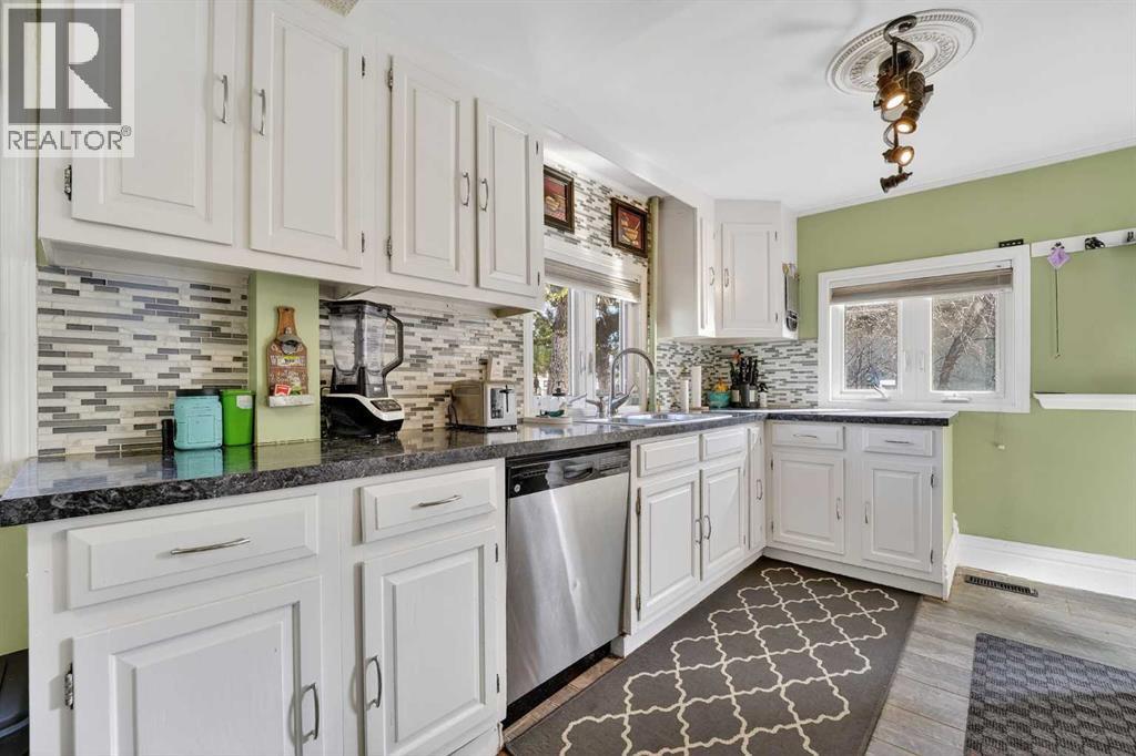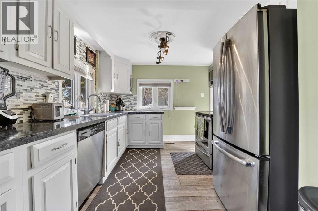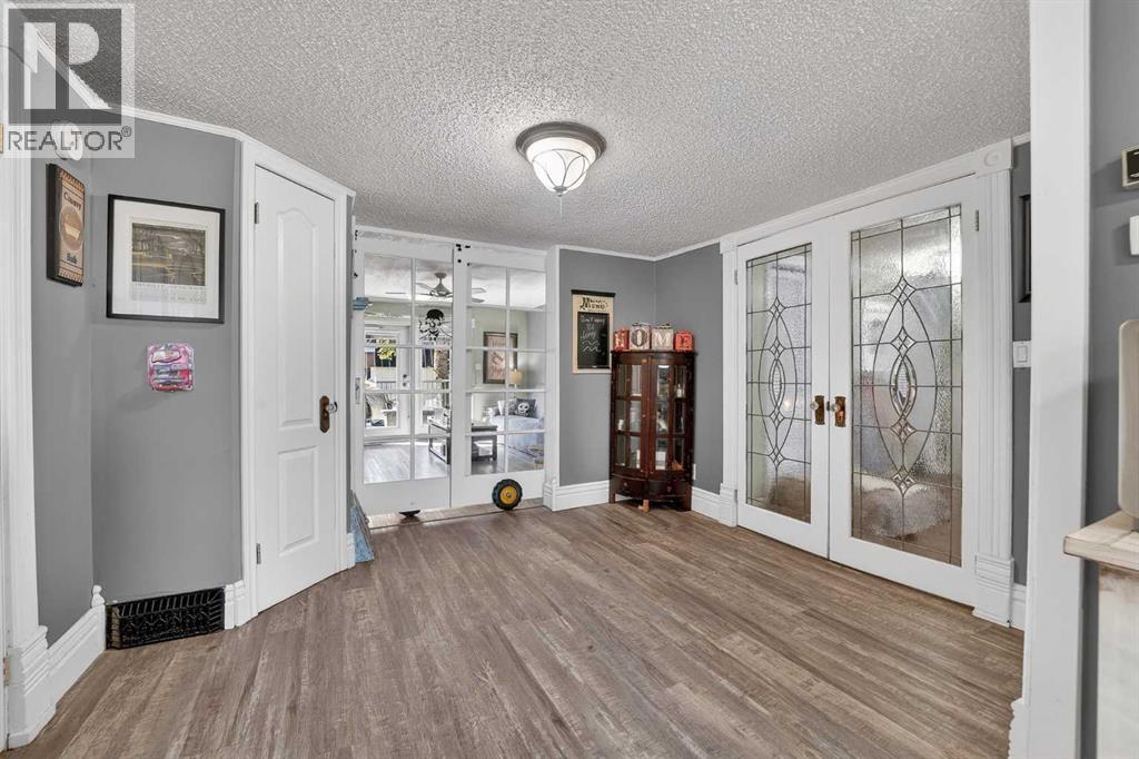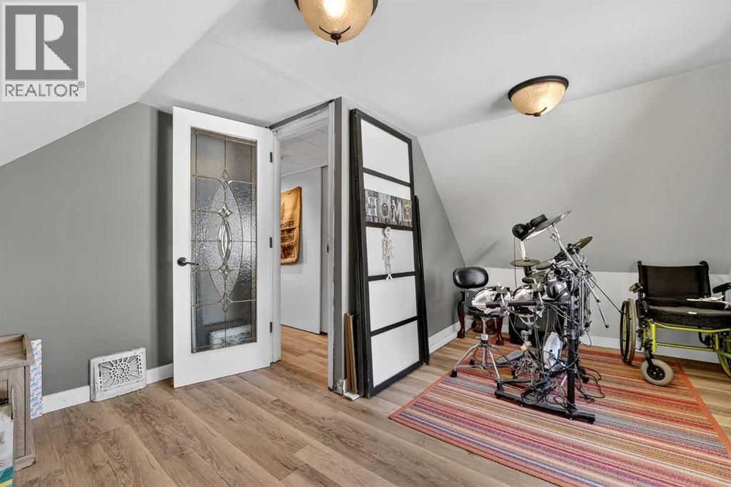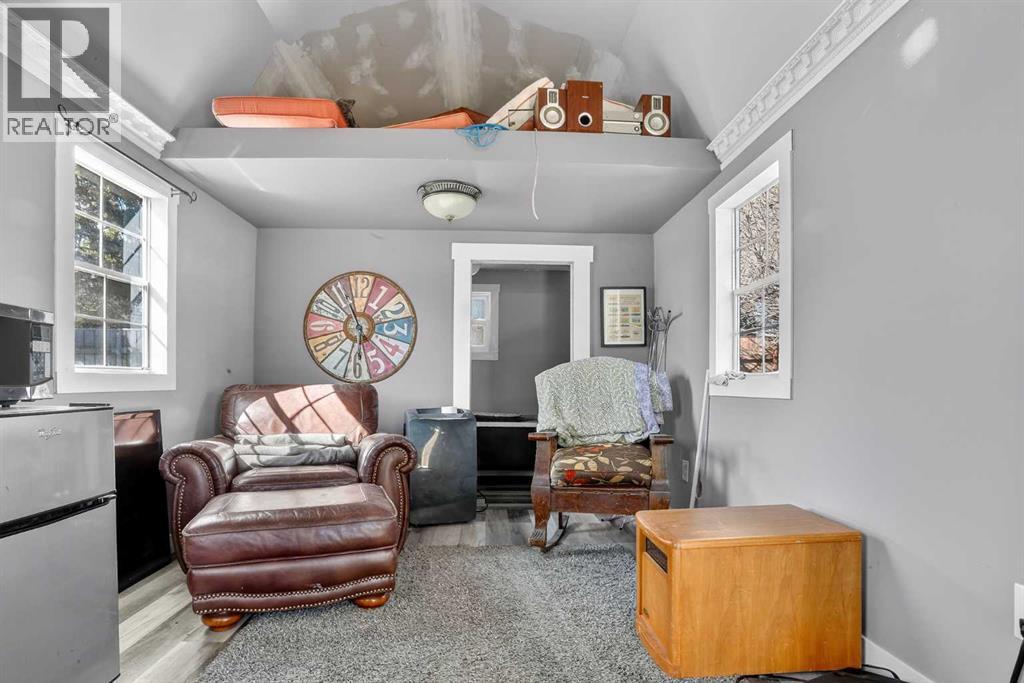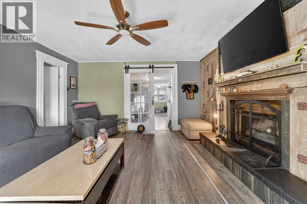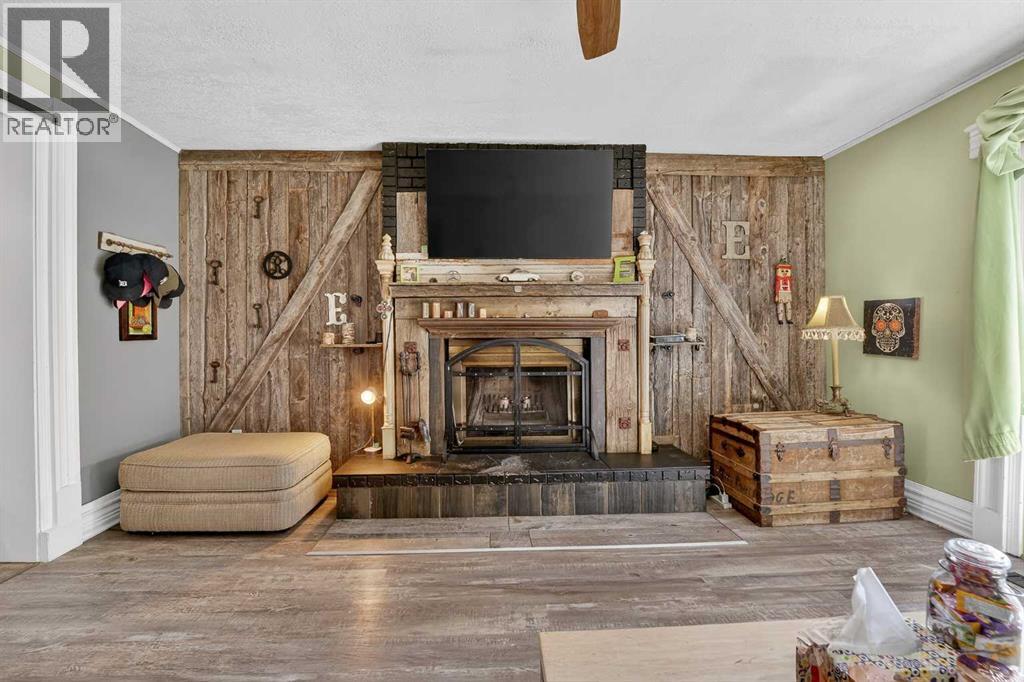 Welcome to a home that offers space to grow, room to gather, and future potential, all set in a quiet community on a massive lot. Inside, this 1½ storey home blends character and comfort with a renovated main floor featuring updated flooring and paint, a cozy wood-burning fireplace, and a charming antique front door that sets the tone from the moment you arrive. The main level includes two bedrooms, including a spacious primary, while the upper level offers two versatile bonus rooms—ideal for a home office, kids’ spaces, or guests. Recent updates include shingles (2016), hot water tank (approx. 9 years), PVC windows on the main floor, and 100 amp electrical service. The home is connected to city water and sewer, offering convenience and peace of mind. Outside, you’ll find a double detached garage, a fenced garden area, and plenty of space to enjoy now—or reimagine later. With the size of the lot, there is potential for future redevelopment, including the possibility of a duplex (buyer to verify with Lethbridge County). Located in the Fairview area, you’ll appreciate the balance of a peaceful setting with the benefit of lower property taxes and access to city amenities. (id:55690)