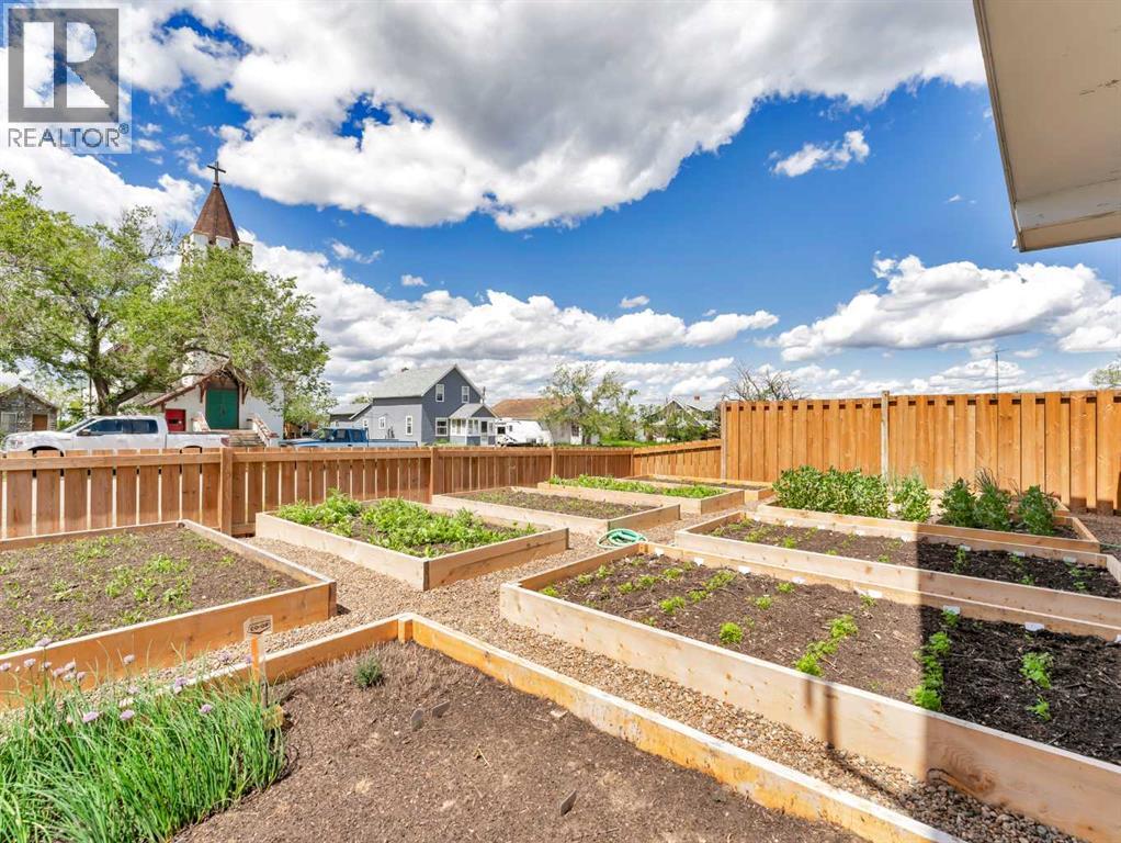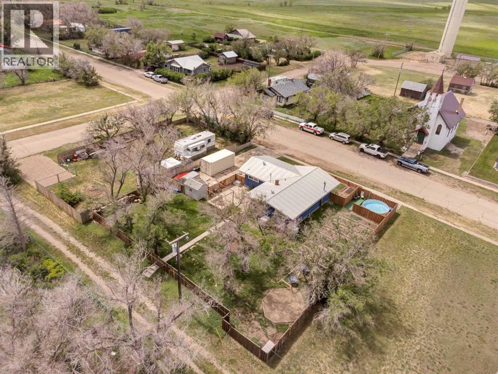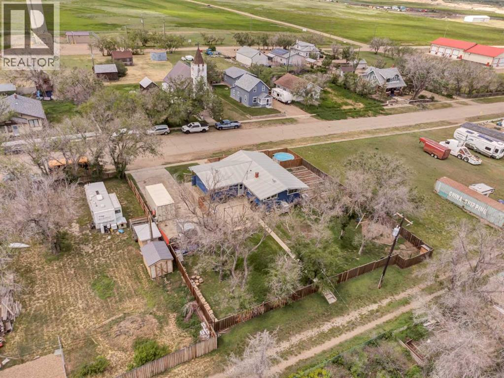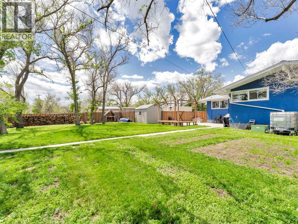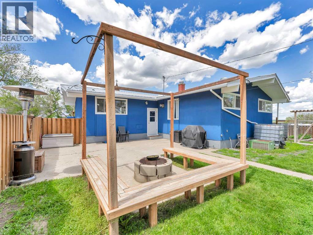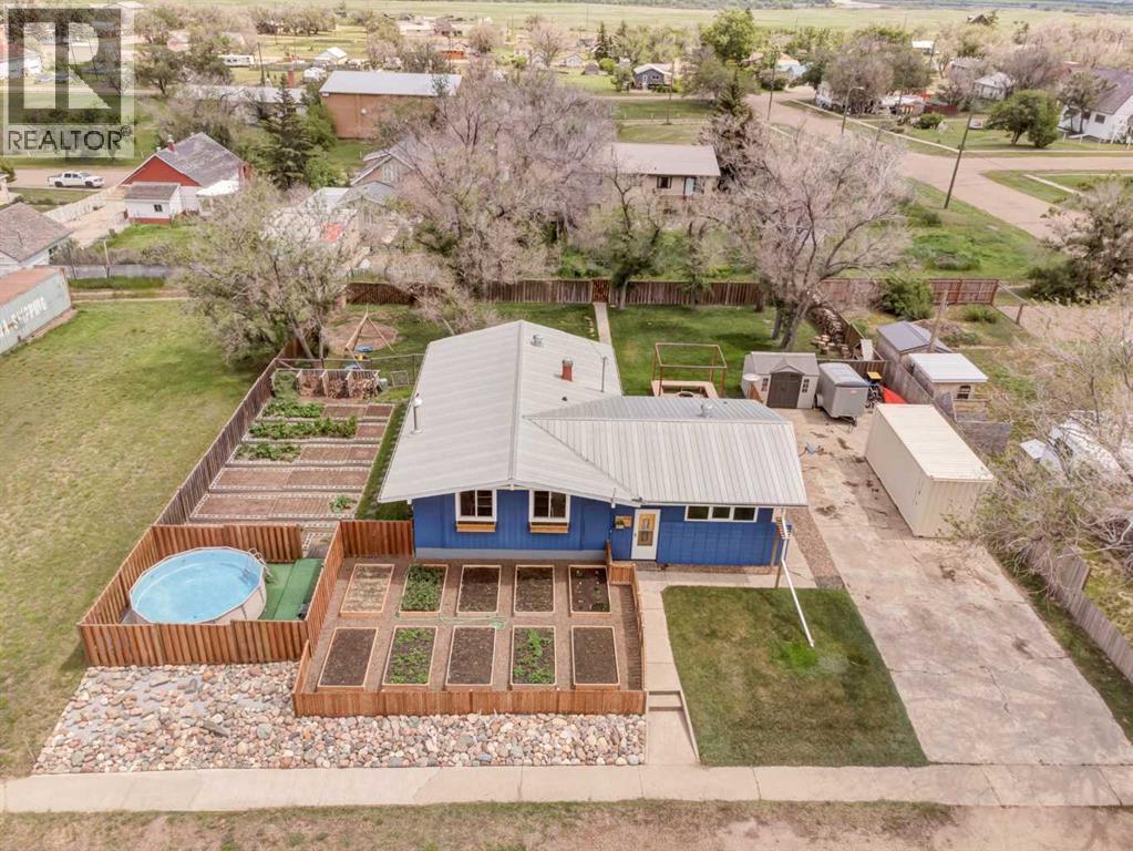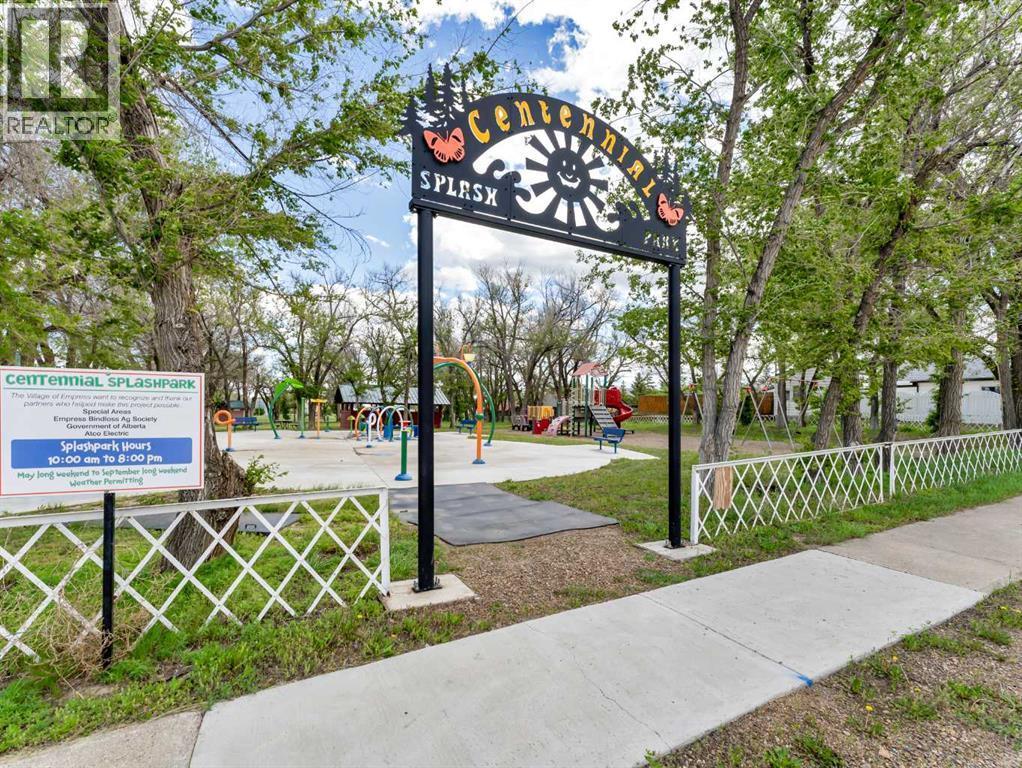 Welcome to 436 3 Street W in the adorable village of Empress, Alberta, situated just 40 minutes from Oyen. This well appointed bungalow, with a total of over 2000 sq ft living space, is situated on a massive lot which is already landscaped/treed and has a large gate accessed from the back alley. The yard is utilized for gardening and entertaining alike, with multi areas including a fire-pit with built in seating, cement pad with gas line for BBQ, play area with swings and protected pool area. You need room for parking? No sweat, the parking pad adjacent to the house can host a family of vehicles, bikes and even an RV. Let's talk about the inside of the house...5 bedrooms (3 on main floor), 3 baths, huge living room on the main floor with vaulted and beamed ceilings lending to that mid century modern feel. Adjacent to the living room is the large kitchen and dining area, both having large windows to keep things bright! Toward the back of the house you will find 2 bedrooms and a 4 pc bathroom and finally the master bedroom with its own 2 pc ensuite. Head downstairs to find a cozy family room with workout/study area that includes a wood stove to keep everyone cozy during the fall and winter. A very large storage room will accommodate all the extras, 2 well sized bedrooms with new vinyl windows, a 2 pc bath and large laundry area. This is a fabulous home for the growing family (with a Splash Park just steps away) or spacious home for the couple who wants a piece of land but desire the amenities of town life. Empress has a cute gift shop/groceteria, hairdresser, a mechanic, gas and towing services, a diner and homecare services as well as a driving range located 1 block from this home. For the days of greater need, Oyen is a 40 min drive and includes a hospital with emergency department, hardware supplies, and a high school. Acadia Valley is a mere 25 minutes away and is where you will send your kiddos K- grade 9. Don't miss this great opportunity to live in a welcom ing community...call your favourite agent to book a showing today! (id:55690)