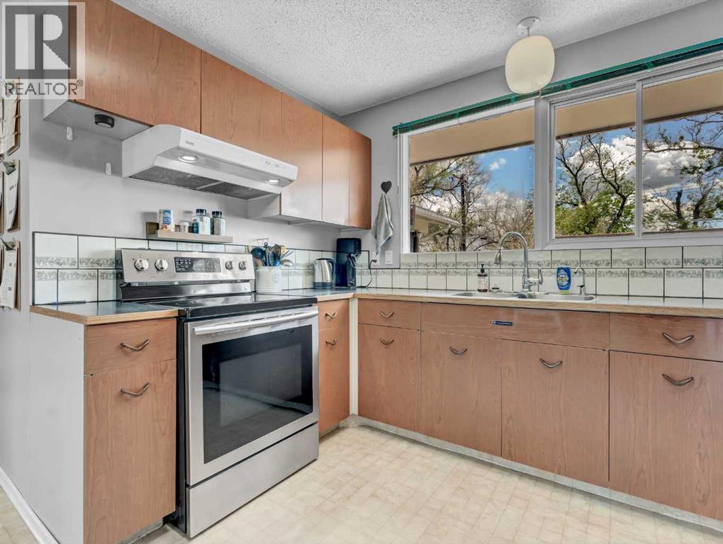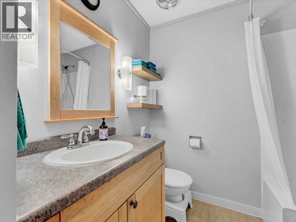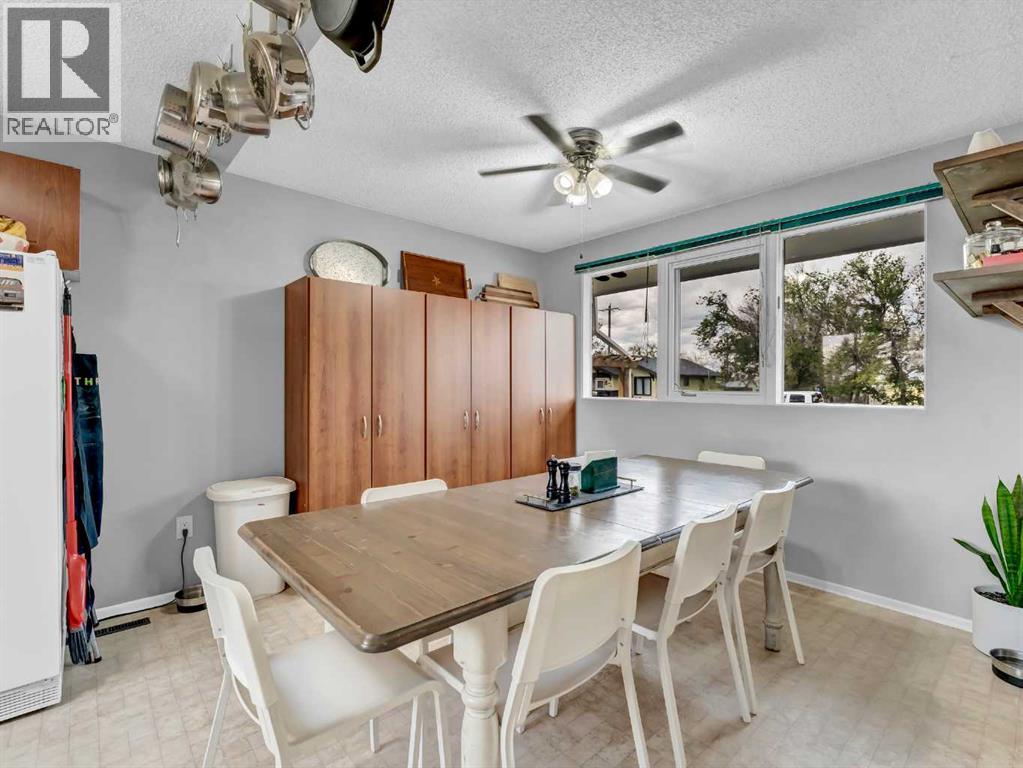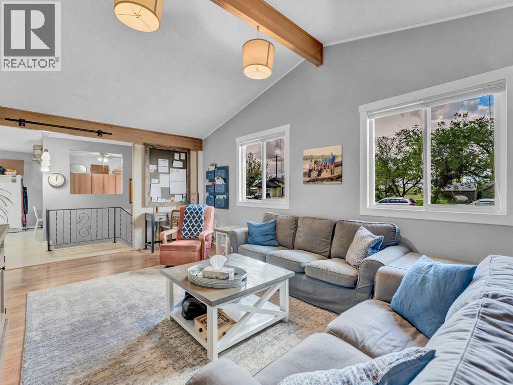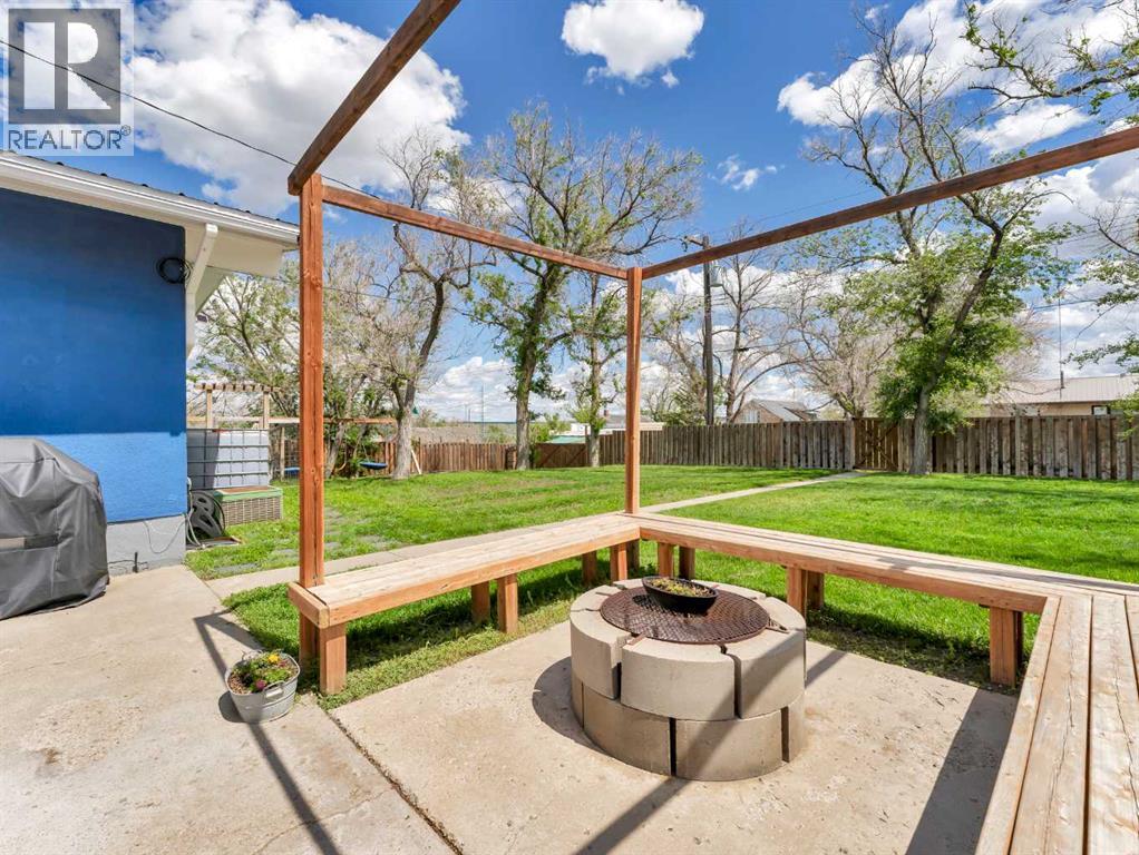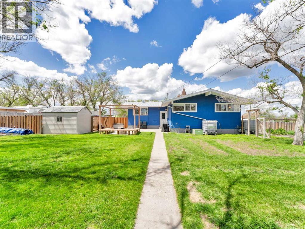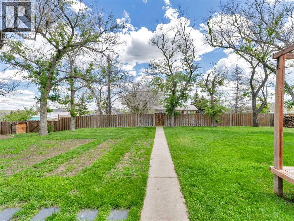 Welcome to 436 3 Street W in the adorable village of Empress, Alberta, situated just 40 minutes from Oyen. This well appointed bungalow, with a total of over 2000 sq ft living space, is situated on a massive lot which is already landscaped/treed and has a large gate accessed from the back alley. The yard is utilized for gardening and entertaining alike, with multi areas including a fire-pit with built in seating, cement pad with gas line for BBQ, play area with swings and protected pool area. You need room for parking? No sweat, the parking pad adjacent to the house can host a family of vehicles, bikes and even an RV. Let's talk about the inside of the house...5 bedrooms (3 on main floor), 3 baths, huge living room on the main floor with vaulted and beamed ceilings lending to that mid century modern feel. Adjacent to the living room is the large kitchen and dining area, both having large windows to keep things bright! Toward the back of the house you will find 2 bedrooms and a 4 pc bathroom and finally the master bedroom with its own 2 pc ensuite. Head downstairs to find a cozy family room with workout/study area that includes a wood stove to keep everyone cozy during the fall and winter. A very large storage room will accommodate all the extras, 2 well sized bedrooms with new vinyl windows, a 2 pc bath and large laundry area. This is a fabulous home for the growing family (with a Splash Park just steps away) or spacious home for the couple who wants a piece of land but desire the amenities of town life. Empress has a cute gift shop/groceteria, hairdresser, a mechanic, gas and towing services, a diner and homecare services as well as a driving range located 1 block from this home. For the days of greater need, Oyen is a 40 min drive and includes a hospital with emergency department, hardware supplies, and a high school. Acadia Valley is a mere 25 minutes away and is where you will send your kiddos K- grade 9. Don't miss this great opportunity to live in a welcom ing community...call your favourite agent to book a showing today! (id:55690)