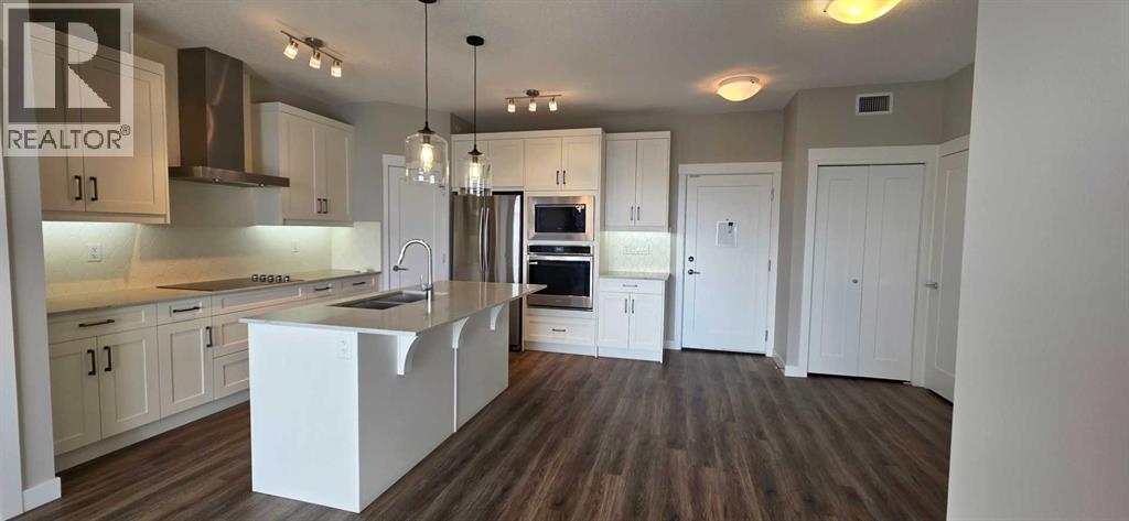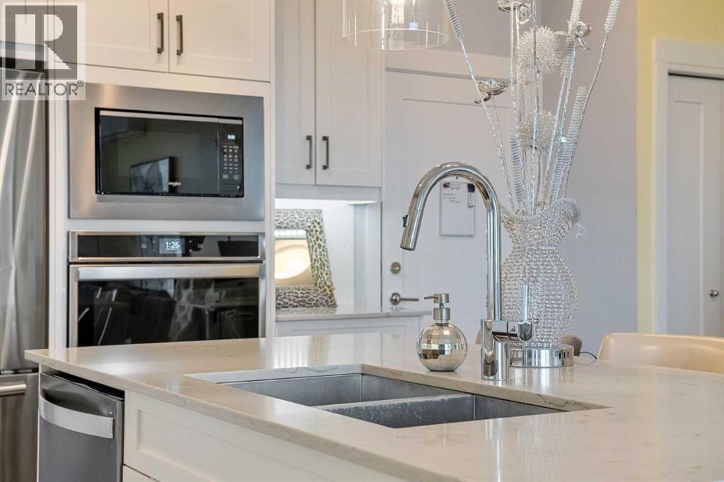 Welcome to your new home in the highly sought-after community of Cranston! This bright and spacious condo offers a thoughtful design and stylish finishes that make it stand out from the rest.Featuring 9-ft ceilings, quartz countertops throughout, and built-in stainless steel appliances including an electric cooktop and pantry, this kitchen blends function and beauty. You’ll love the engineered hardwood flooring that extends through the main living areas, with tile flooring only in the bathrooms for a sleek and cohesive feel.Freshly painted in a soft, neutral palette, this home feels bright and inviting — a refreshing change from the previous yellow and purple tones. The primary suite includes a 4-piece ensuite and a walk-in closet with custom built-in shelving for effortless organization. Both bedrooms feature large windows with coverings, filling the space with natural light while offering privacy.Additional features include front-load washer/dryer, air conditioning for summer comfort, and two parking stalls—one heated underground and one outdoor.Enjoy immediate possession and an unbeatable location just steps from the Bow River and Fish Creek Park. Cranston offers the perfect balance of nature and convenience, with the South Health Campus, Brookfield YMCA, schools, shops, restaurants, and cafes all within minutes. Quick access to Deerfoot Trail and Stoney Trail ensures an easy commute anywhere in the city.Modern, bright, and move-in ready — this is the Cranston condo you’ve been waiting for! (id:55690)