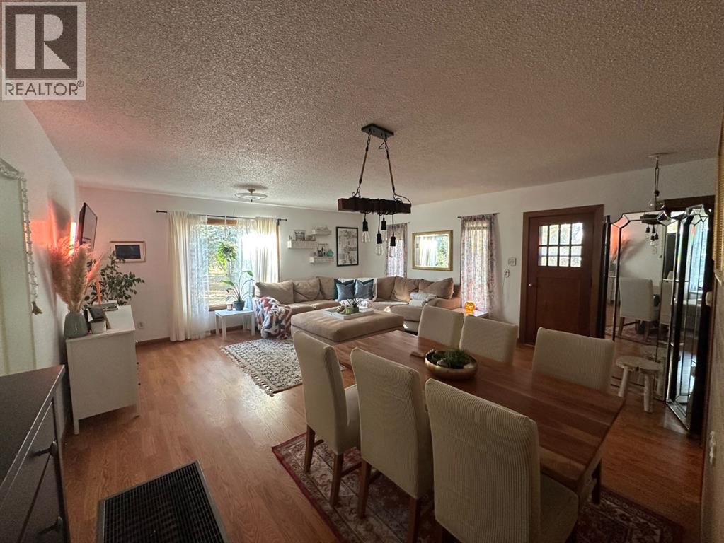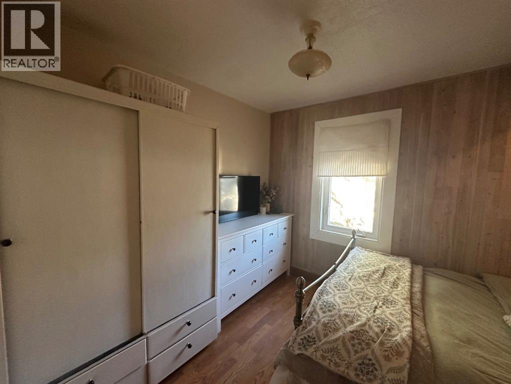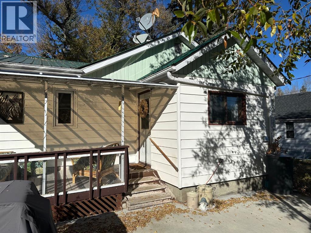 Charming Updated Home on Triple Lot.This well-maintained 934 sq. ft. bungalow offers comfortable living with modern updates throughout. The home features two bedrooms and a fully renovated 3-piece bathroom that was stripped to the studs and completely rebuilt, including new plumbing, fixtures, and finishes.The bright, open-concept living and dining area provides a welcoming space with large windows, Laminate and ceramic tile flooring, and tasteful decor. The kitchen offers ample cabinetry, updated countertops, and stainless steel appliances, creating a functional and inviting cooking space.Situated on three 50x115 ft lots, this property provides extensive outdoor space and is fully fenced. Mature trees and established landscaping enhance the setting, offering both shade and curb appeal. The exterior features durable vinyl siding and a metal roof for long-lasting protection and low maintenance.This home combines character and comfort with modern improvements, making it an excellent option for first-time buyers, small families, or those seeking the small-town lifestyle. (id:55690)
