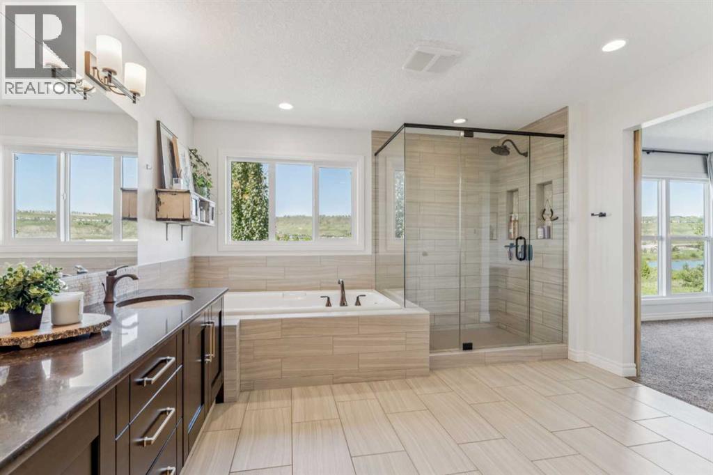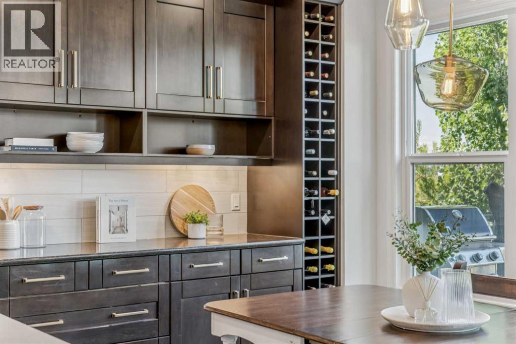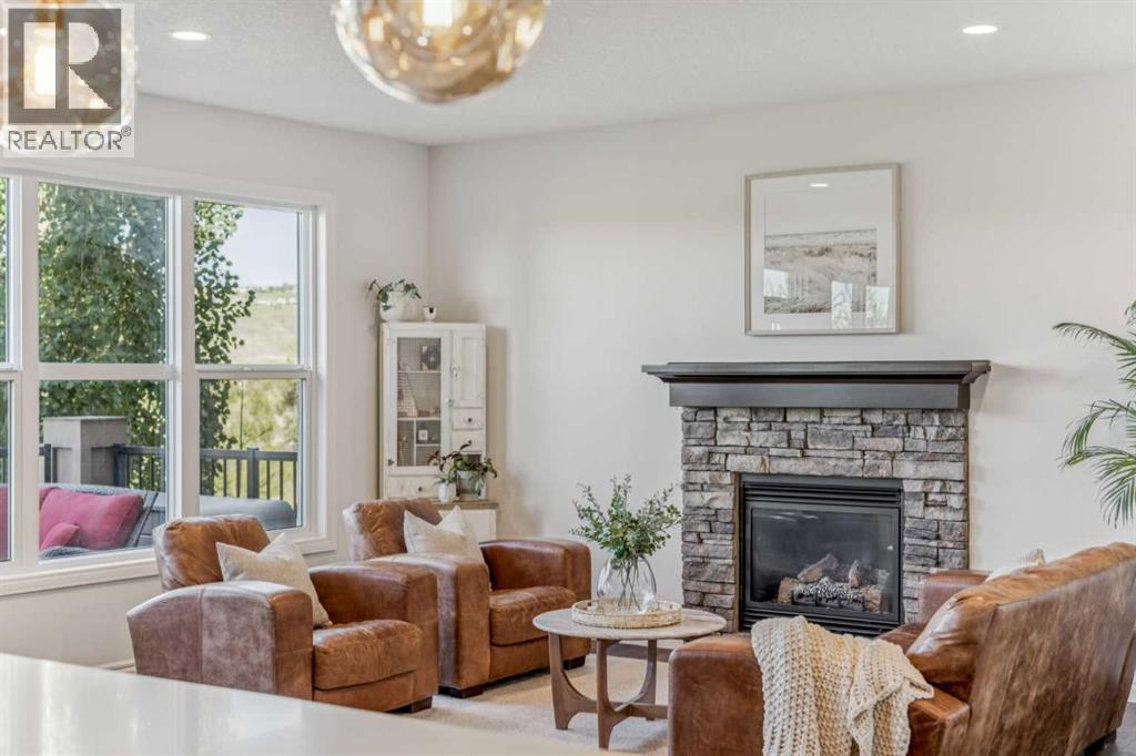 Welcome to your RIVERFRONT RETREAT nestled into the prestigious COMMUNITY of RIVIERA!This former Trico SHOW HOME was designed to maximize its one-of-a-kind location, offering UNOBSTRUCTED VIEWS of the Bow River, Rocky Mountains, and natural reserve—with NO NEIGHBOURS BEHIND, only nature and tranquility at your back door.From the curb, the EXTRA-WIDE CUSTOM PAVING STONE driveway and charming exterior make an immediate impression. Inside, the grand foyer with OPEN-TO-BELOW ceilings, 7 ½” oil-rubbed HARDWOOD floors, and floor-to-ceiling windows creates a bright, welcoming space where every sightline captures those breathtaking river valley views.The chef-inspired kitchen is both stylish and functional, featuring an OVERSIZED ISLAND, QUARTZ COUNTERTOPS, MAPLE CABINETRY with a BUILT-IN WINE RACK, stainless steel appliances, and a GAS COOKTOP. The open living room, anchored by a STONE-SURROUND GAS FIREPLACE, is perfect for gathering, while the FULL-WIDTH rear DECK invites you to relax and take in the stunning scenery.Upstairs, a central BONUS ROOM separates the kids’ bedrooms from the private primary bedroom. Wake up to endless views in your retreat, complete with a spa-like ENSUITE offering a SOAKER TUB, 10mm TILE & GLASS SHOWER, DUAL VANITIES, and a WALK-THROUGH CLOSET that connects directly to the laundry room with sink and storage.The FULLY FINISHED WALK OUT BASEMENT with RIVER VIEWS extends your living space, featuring its own KITCHENETTE with an island, 9’ CEILINGS, full-height windows, GAS FIREPLACE, bedroom, bathroom, and laundry—perfect for extended family, guests, or multi-generational living.Additional highlights include:* Quartz countertops throughout* Custom drapery & upgraded carpets* 8’ main floor doors & built-in speakers* DUAL FURNACES & two A/C UNITS for year-round comfort* Double attached garage with 8’ doors, EXTRA HIGH CEILING, LED lighting & 220V wiringLiving in Riviera means access to the natural reserve, walking paths, the Bow Riv er, golf, a local farmers market, and a pedestrian bridge leading to the off-leash dog park.This is a rare opportunity to own a luxury riverside home that perfectly combines style, comfort, and location. Don’t miss your chance to make this dream home yours! (id:55690)
