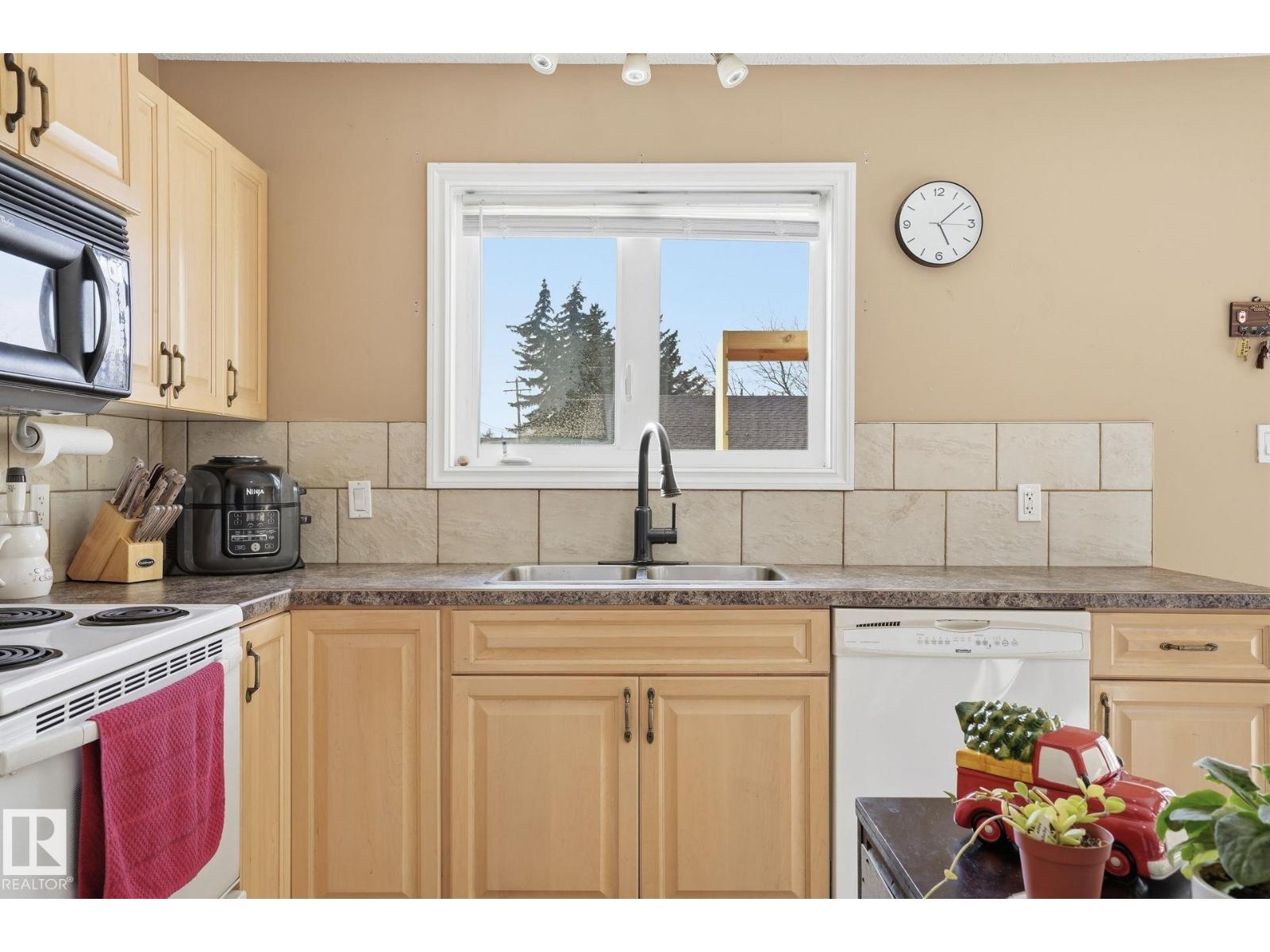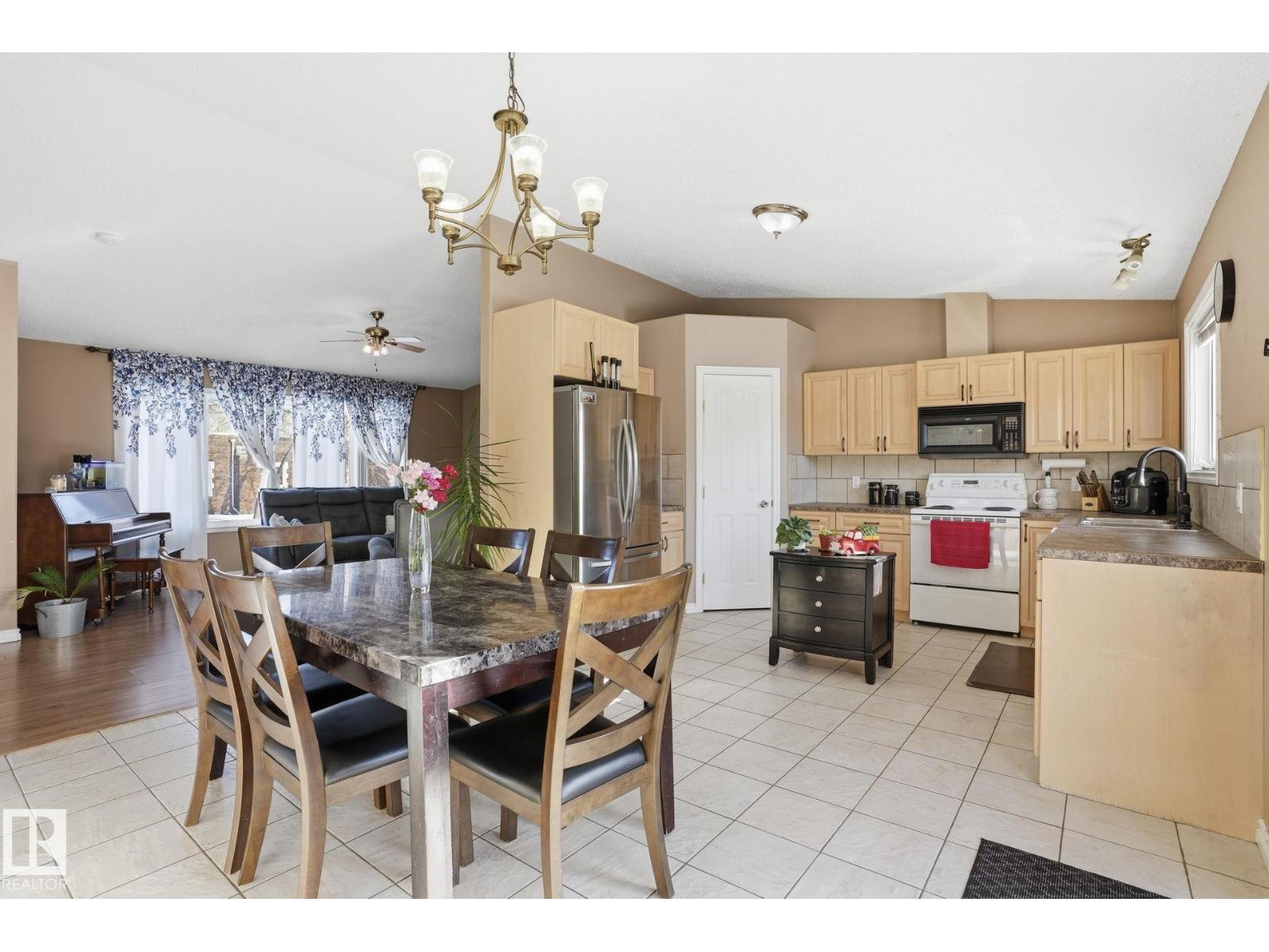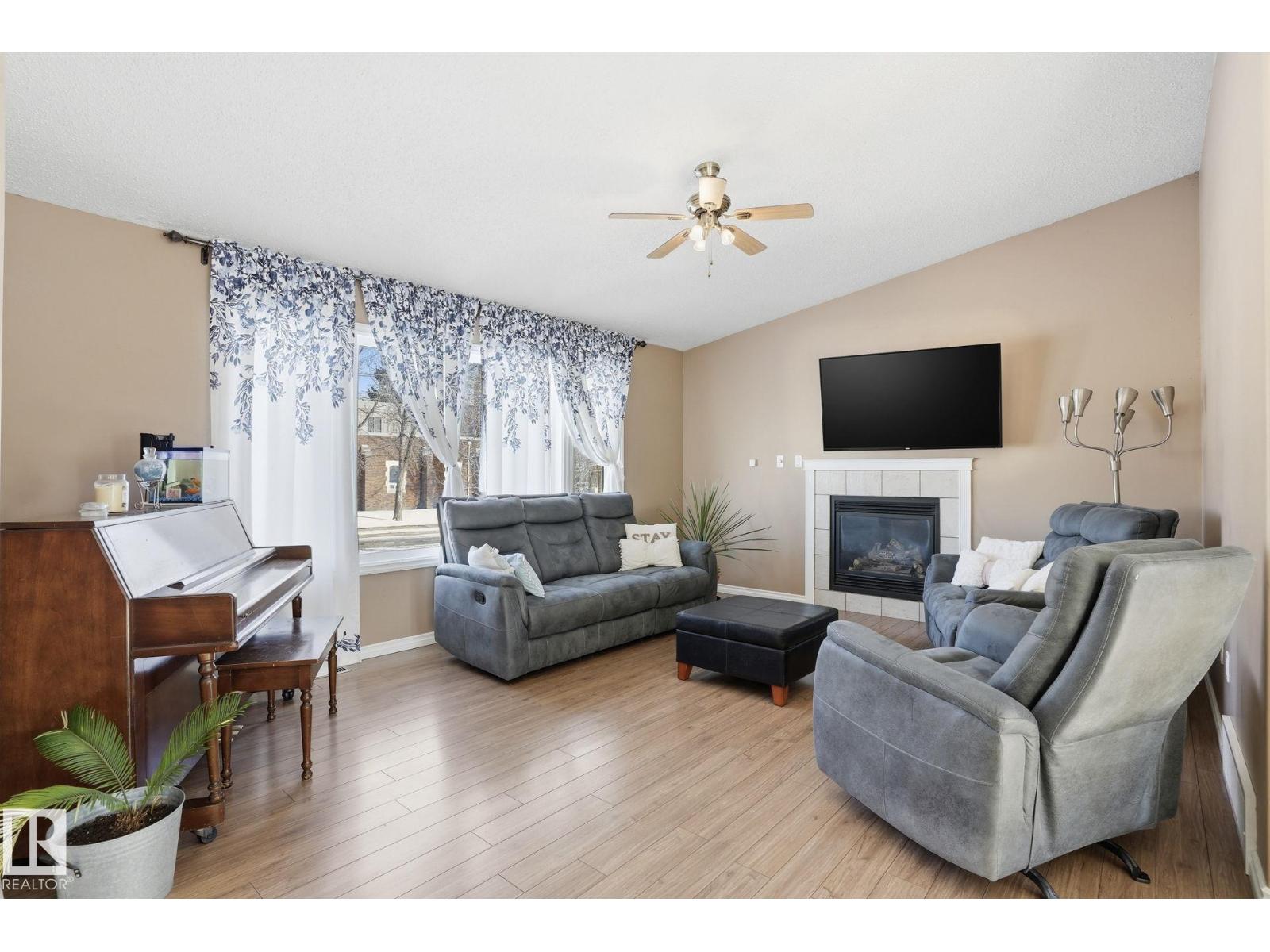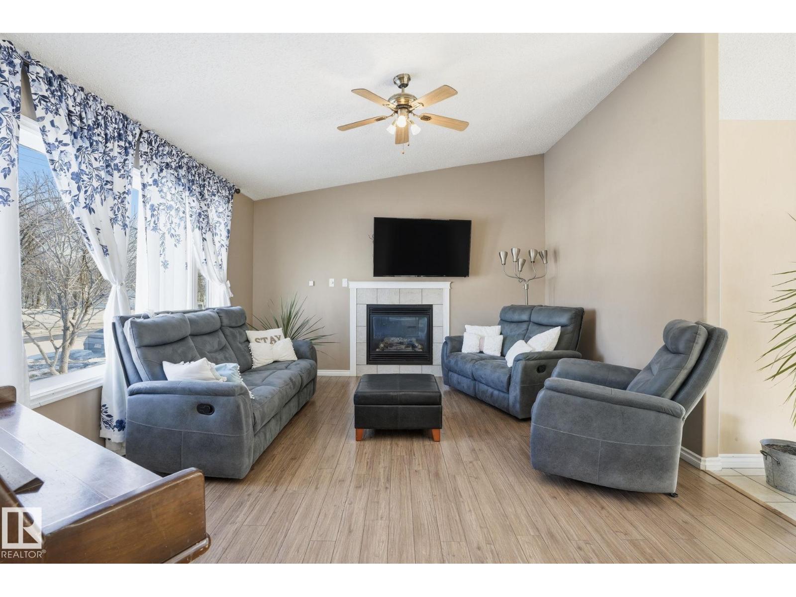GREAT LOCATION, CURB APPEAL & VALUE! Welcome to this attractive raised bungalow on a massive corner lot! This home features 3 bedrooms and 2 bathrooms on the main level, plus 2 bedrooms and 1 bathroom below grade. The primary bedroom includes a private ensuite. Enjoy a bright, open feel with vaulted ceilings in the kitchen, living, and dining areas, plus durable tile and laminate throughout. The living room features a cozy fireplace with tile surround. The kitchen includes an upgraded stainless-steel fridge, tile backsplash, ample counters, abundant cabinetry, and a corner pantry. Step outside to a spacious two-tiered deck overlooking the expansive yard and oversized double garage. The garage offers a shop-like feel, complete with a rough-in for heater, upgraded electrical panel, extensive storage shelving, and an extra-high door. Located just steps from Legal School and close to all essential amenities, this home combines convenience with a quiet, peaceful lifestyle in a welcoming, friendly community. (id:55690)