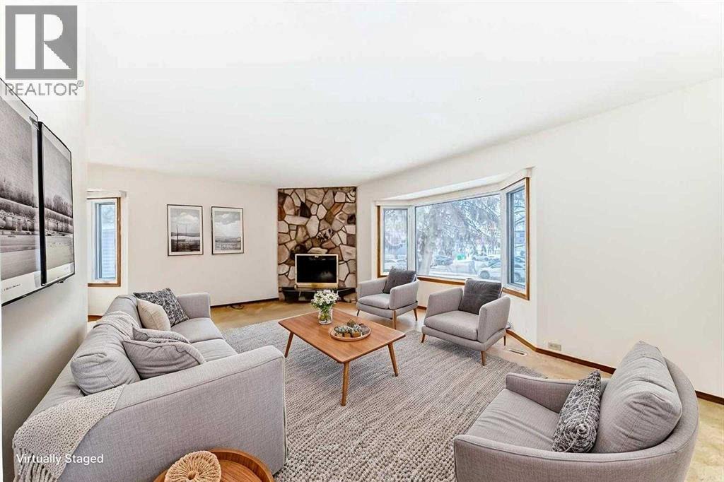 WELCOME to this charming 4 bed/1.5 bath bungalow ideally located across from the community center, community garden, outdoor rink & playground, perfect for a family starter home or investor, n the mature sought after community of Brentwood! Situated on a quiet tree lined street, this well loved bungalow has charm to spare. The main level features a generous living room featuring a large bay window and corner fireplace, with stone facing facade. This flows into the separate dining room with another large bow window & plenty of room for a 6-8 person dining table, ideal for hosting family gatherings. The large kitchen has lots of counter space and an additional eat in area. The good sized primary features bright wide windows and a 2 pc ensuite for privacy. Two additional bedrooms & 4 pc bath complete the main floor. Downstairs you'll find a cozy 4th bedroom or den (non-egress), and a large recreation room for family movie nights & space for kids to play. Finishing the lower level is a cold room and large utility/laundry room with plenty of storage shelving & workbench area for tinkering. In the backyard you'll find a good sized deck and green space for kids & fur babies alike to play. As well, there is an oversized double detached garage for parking on cold winter days. The property is ideally located within a quick walk to 4 schools for kids of all ages, as well as an easy walk to shops, restaurants, services and fitness & aquatic center. Close to University of Calgary, Crowchild Trail, the University C Train, this perfect location makes commuting in any way simple & easy. Don't miss out! (id:55690)