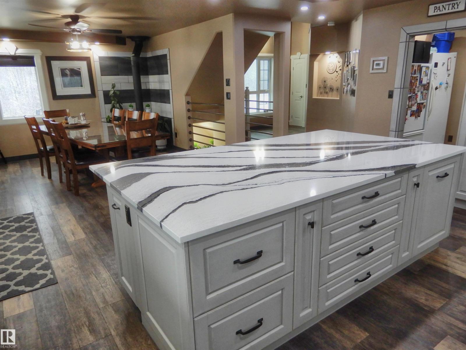 WOW! 147 Acres of rolling hills with amazing views!! This incredibly beautiful property features a fully renovated 1 1/2 storey, 4 bedroom, 4 bath, hilltop home with a walkout basement. The chef in the family is going to love the magazine worthy kitchen featuring a massive eat-up island, ss appliances, quartz everywhere, huge pantry and the open dining area with cozy wood stove. Spend your morning drinking coffee on the covered deck while enjoying the spectacular view. Main floor includes a luxurious primary suite with fireplace, massive custom walk-in closet, and spa-like 5-piece ensuite. Top floor features 2 large bedrooms, 5 piece bath, and flex area. The fully finished, walk-out, basement features a family room, bedroom, 3 piece bath and laundry. Property includes a heated 40' x 33' shop, horse shelter, corrals, tons of quad trails and so much more. 40 minutes to Stony and 1 hour to Edmonton. Come see your new home! (id:55690)