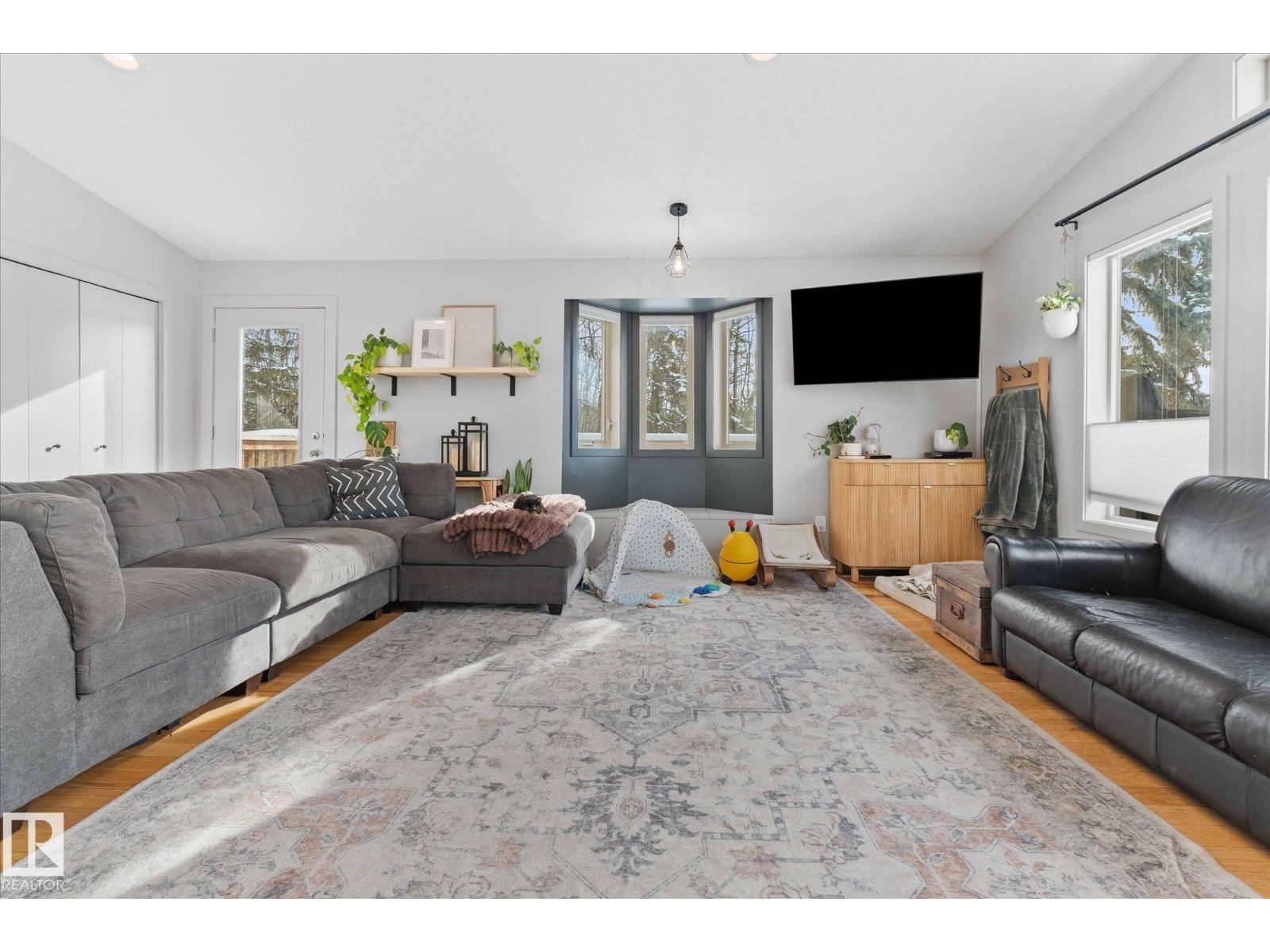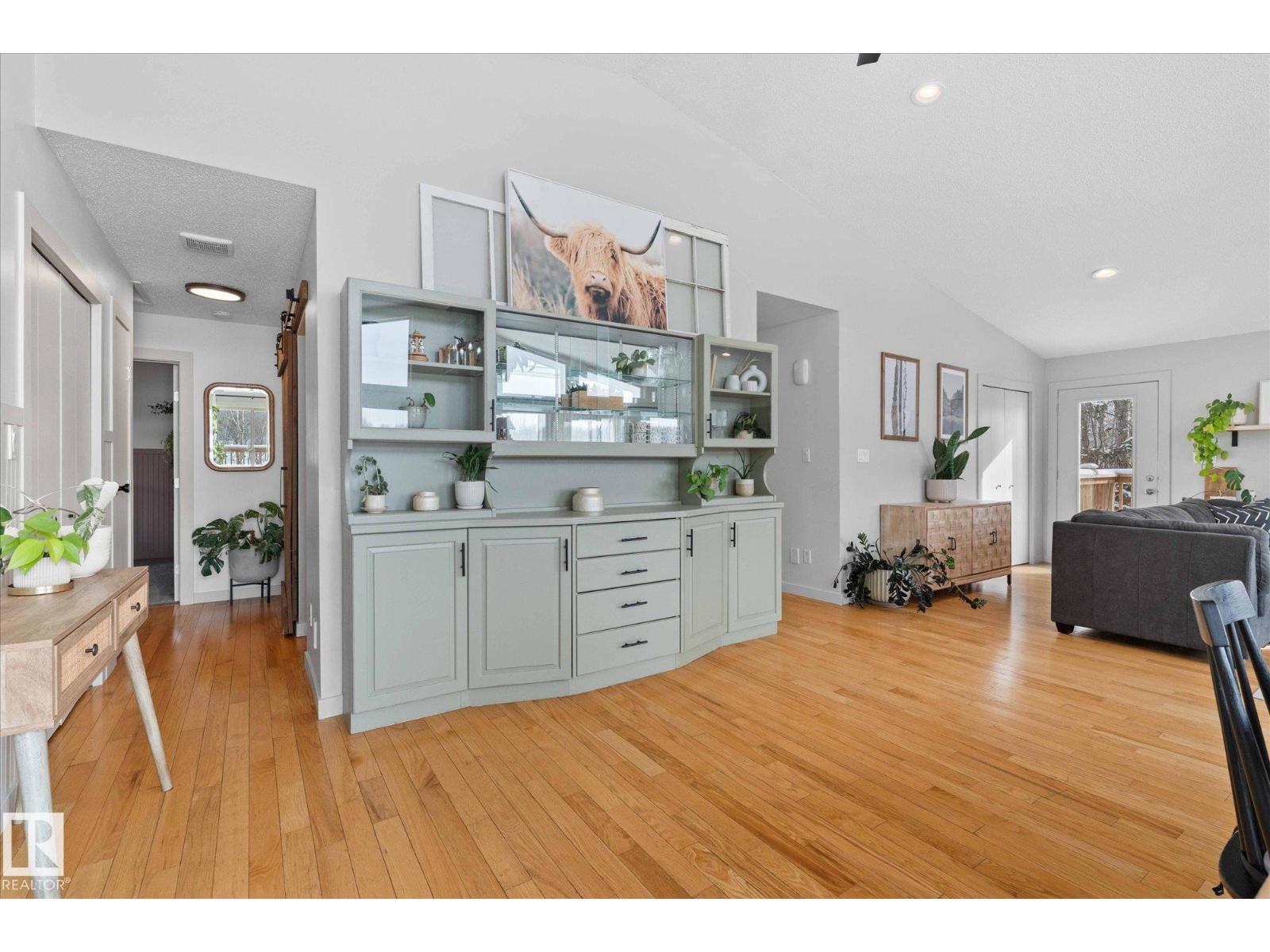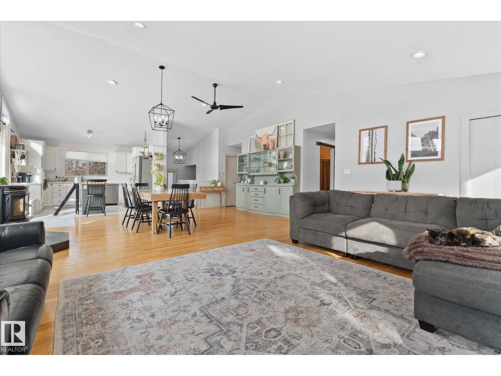 It's time for your hobby farm dreams to come TRUE! Nearly 20 acres OUTSIDE of subdivision with ROLLING hills, mature trees, large quonset shop (~4400 sq/ft), fencing, 15x200 pole barn, insulated 6-stall barn, 2 waterers, outbuildings and BEAUTIFUL 4 bdrm, 3 bathroom home! This incredible property is ready for you to enjoy peace and quiet with NO neighbours only 35 minutes west of Edmonton! The bright walkout bungalow has 3 bedrooms upstairs, including a large 4-pc bath jack & jill style with a 2-pc ensuite on the primary bedroom and walk-in closet. Main floor laundry and large spacious living room, dining room and kitchen with wood burning FP gives plenty of space for the whole family. Walk straight out onto your large, south facing deck! The lower level has a large rec room, additional bedroom (just add a closet!), 3 pc bathroom and main cave/double HEATED garage with floor drain. 2009 HWT + Furnace. PLUS AC and Starling internet! Outside are plum and apple trees, and room for gardens. A real gem! (id:55690)