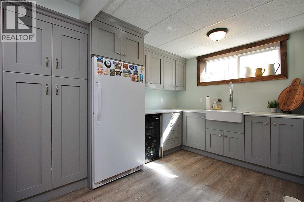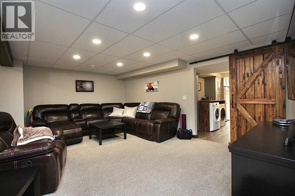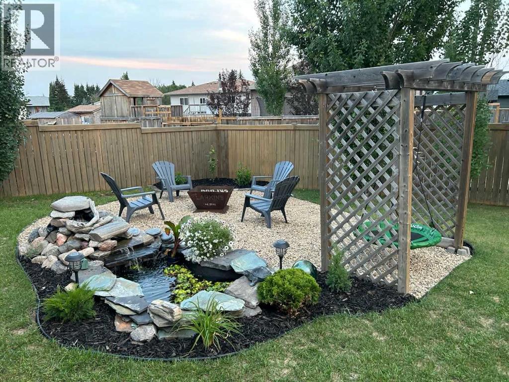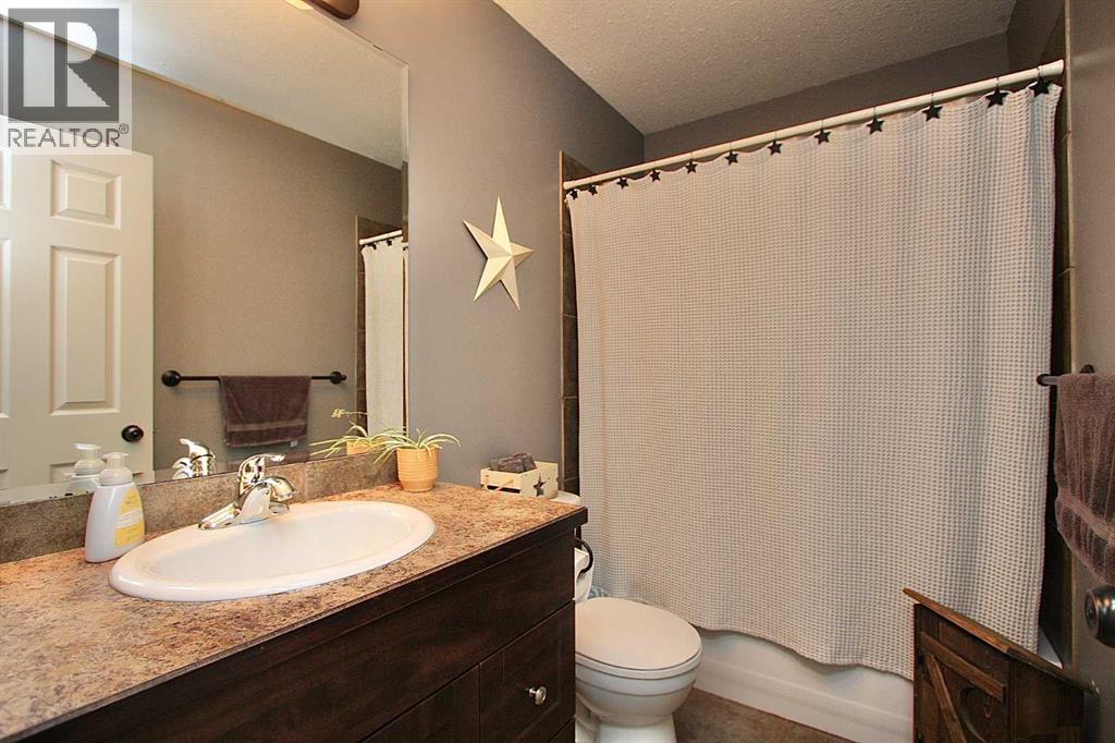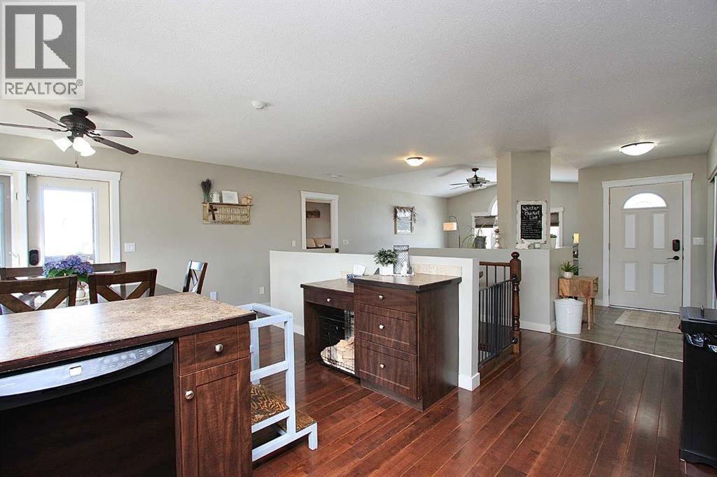 Escape the hustle and bustle of the city and discover the charm of small-town living in Bashaw. This well-maintained 1,376 sq ft bungalow, built in 2006, offers 4 spacious bedrooms and 3 full bathrooms, including a private ensuite. The bright main floor features vaulted ceilings, hardwood floors, and a cozy gas fireplace, with large windows that fill the kitchen, dining, and living spaces with natural light.Step outside to enjoy a beautifully landscaped, gated yard on a generous 9,266 sq m lot, complete with a water feature and fountain, firepit area, and plenty of room for kids and pets to run and play while enjoying the country air. Start your mornings with coffee on the covered front porch watching the sunrise, and end the day with BBQs on the covered rear deck overlooking sunset views.The double detached garage is insulated, and the rear alley access provides exceptional RV parking—so convenient you won’t even have to unhook from your truck. This property has room for your RV, your boat, your full-size truck, and all of your toys...The massive yet cozy lower-level rec room is the perfect place for movie nights, games, and family gatherings. This level also features a stylish laundry and bar area with new cabinetry, a farm sink, and a charming barn door separating it from the family space. Just off this area is a versatile room that works beautifully as a home office or craft room. You’ll also appreciate the large storage and utility room with built-in shelving, offering plenty of space to keep everything organized.Located in a quiet, family-oriented neighbourhood with a strong sense of community, this home offers space, comfort, and the relaxed lifestyle Bashaw is known for. (id:55690)
