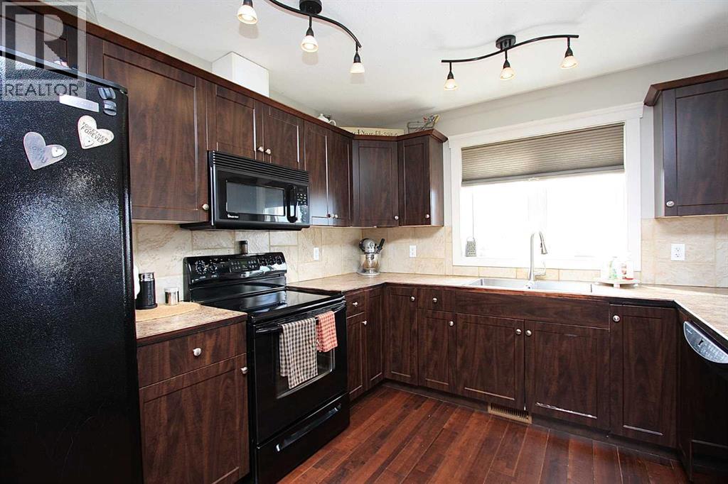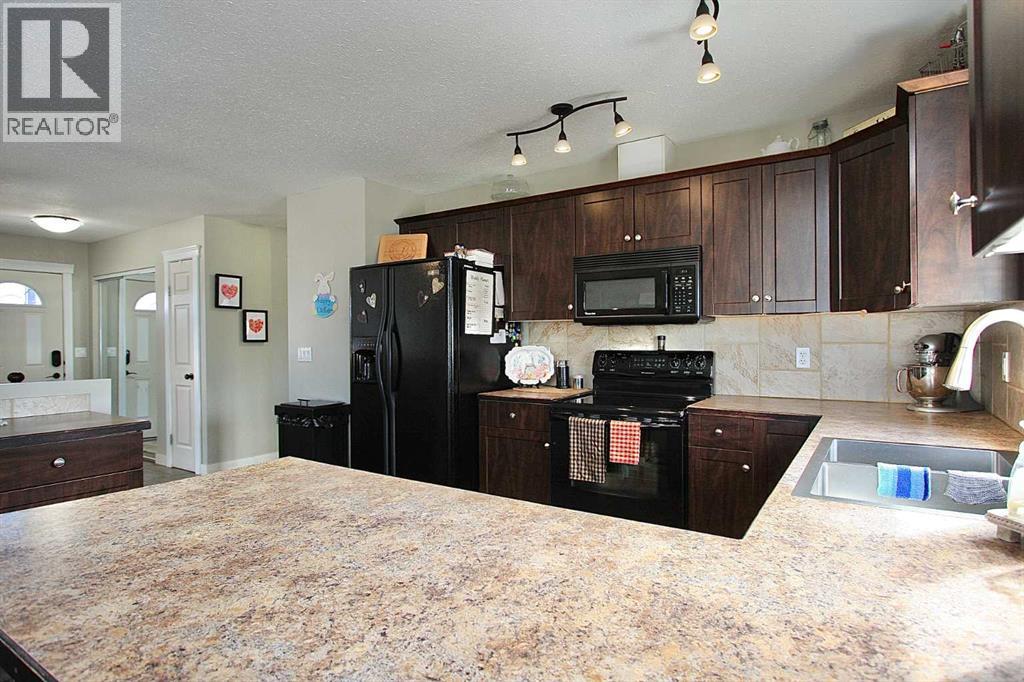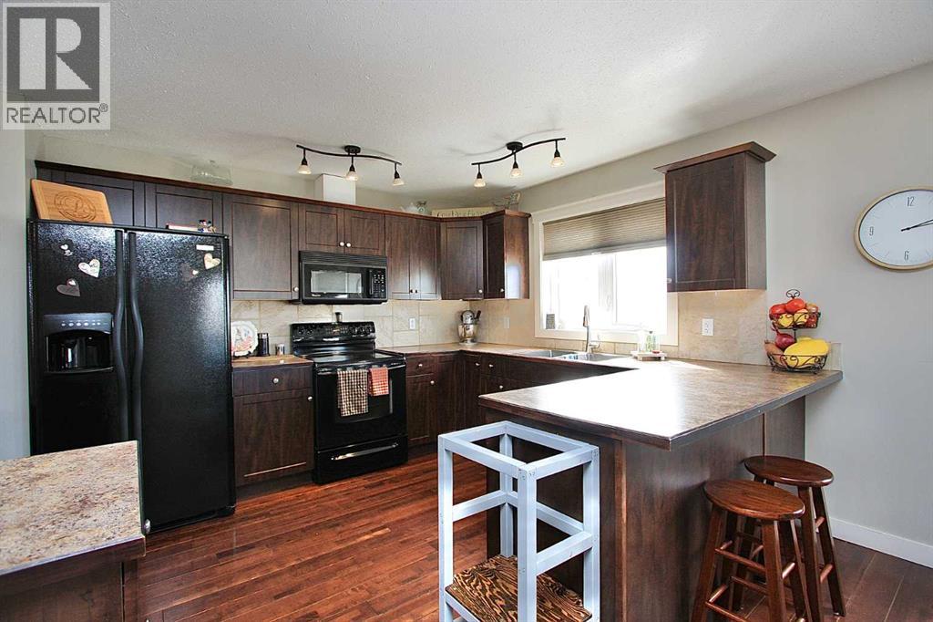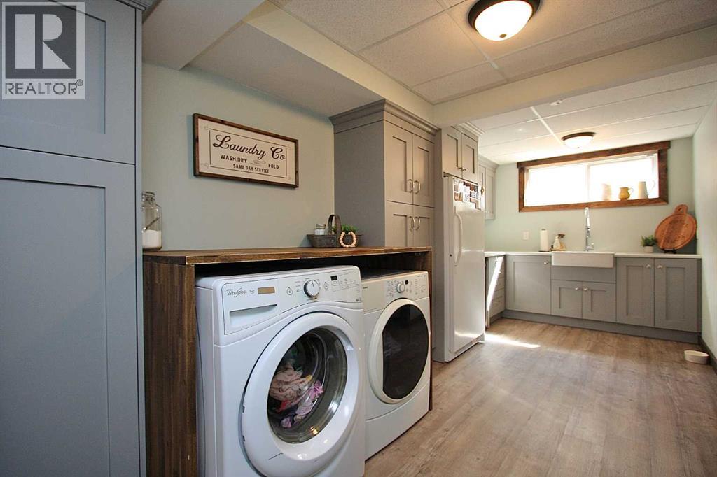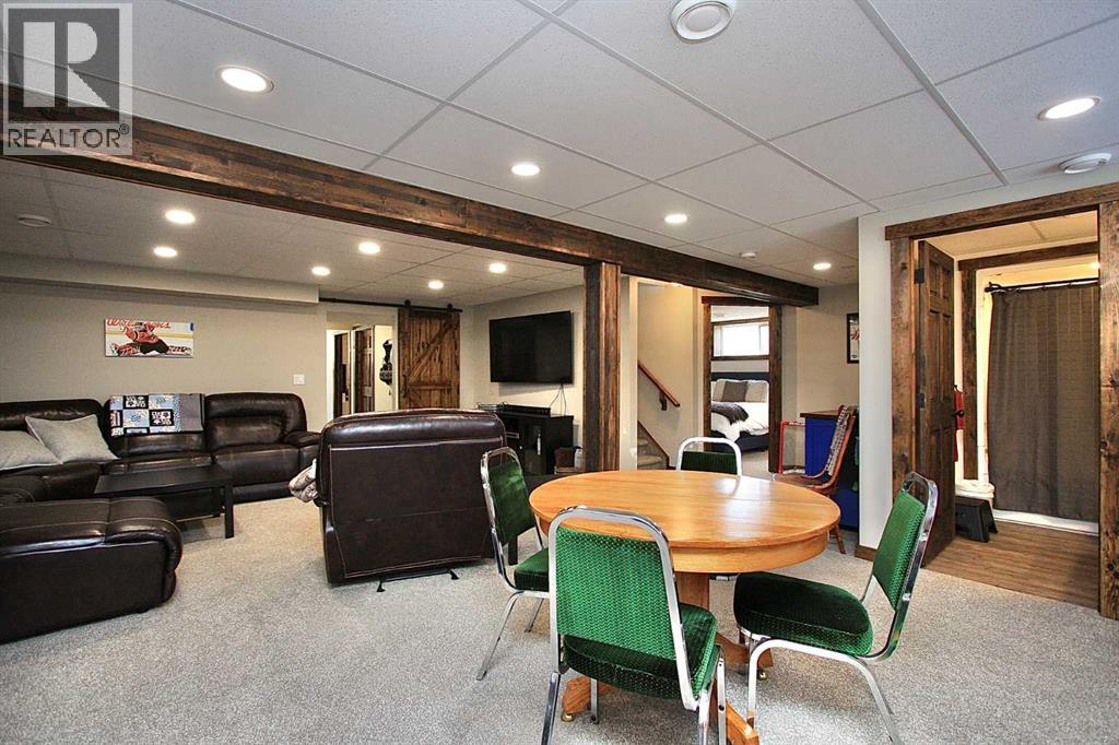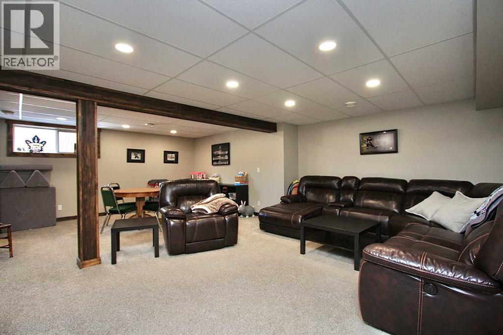 Escape the hustle and bustle of the city and discover the charm of small-town living in Bashaw. This well-maintained 1,376 sq ft bungalow, built in 2006, offers 4 spacious bedrooms and 3 full bathrooms, including a private ensuite. The bright main floor features vaulted ceilings, hardwood floors, and a cozy gas fireplace, with large windows that fill the kitchen, dining, and living spaces with natural light.Step outside to enjoy a beautifully landscaped, gated yard on a generous 9,266 sq m lot, complete with a water feature and fountain, firepit area, and plenty of room for kids and pets to run and play while enjoying the country air. Start your mornings with coffee on the covered front porch watching the sunrise, and end the day with BBQs on the covered rear deck overlooking sunset views.The double detached garage is insulated, and the rear alley access provides exceptional RV parking—so convenient you won’t even have to unhook from your truck. This property has room for your RV, your boat, your full-size truck, and all of your toys...The massive yet cozy lower-level rec room is the perfect place for movie nights, games, and family gatherings. This level also features a stylish laundry and bar area with new cabinetry, a farm sink, and a charming barn door separating it from the family space. Just off this area is a versatile room that works beautifully as a home office or craft room. You’ll also appreciate the large storage and utility room with built-in shelving, offering plenty of space to keep everything organized.Located in a quiet, family-oriented neighbourhood with a strong sense of community, this home offers space, comfort, and the relaxed lifestyle Bashaw is known for. (id:55690)