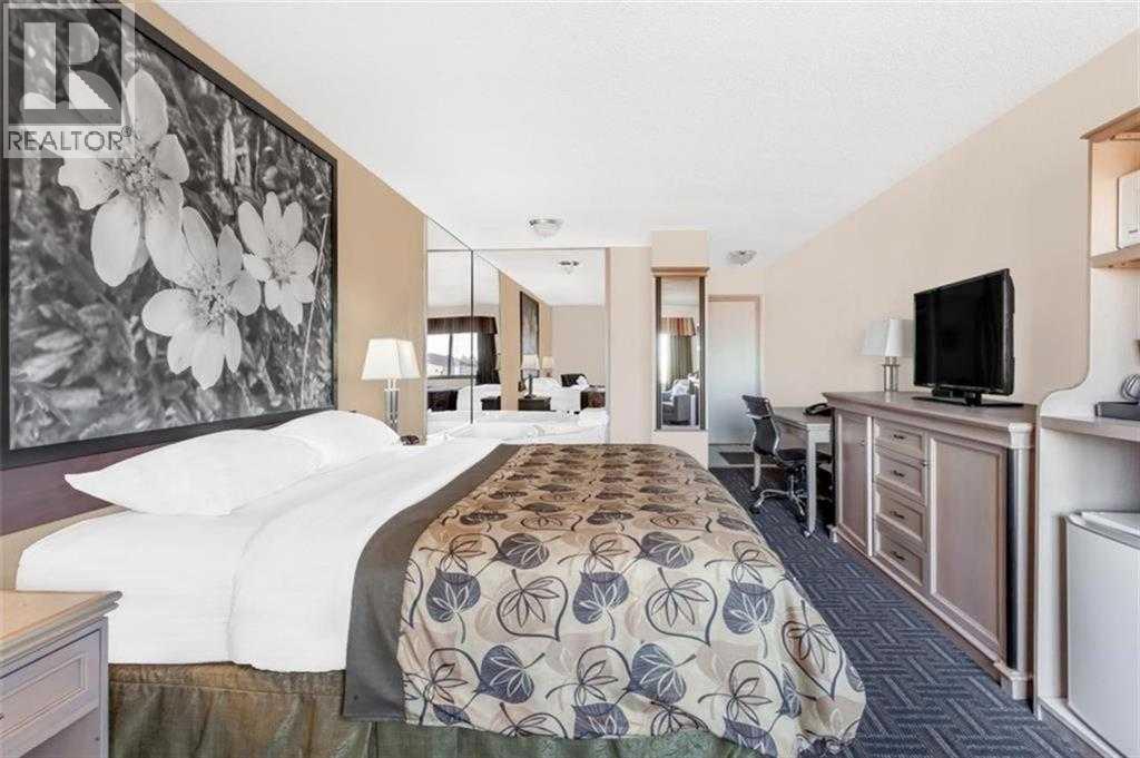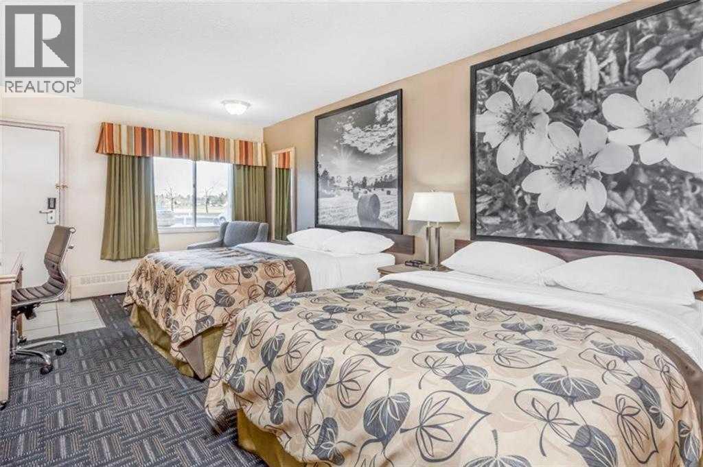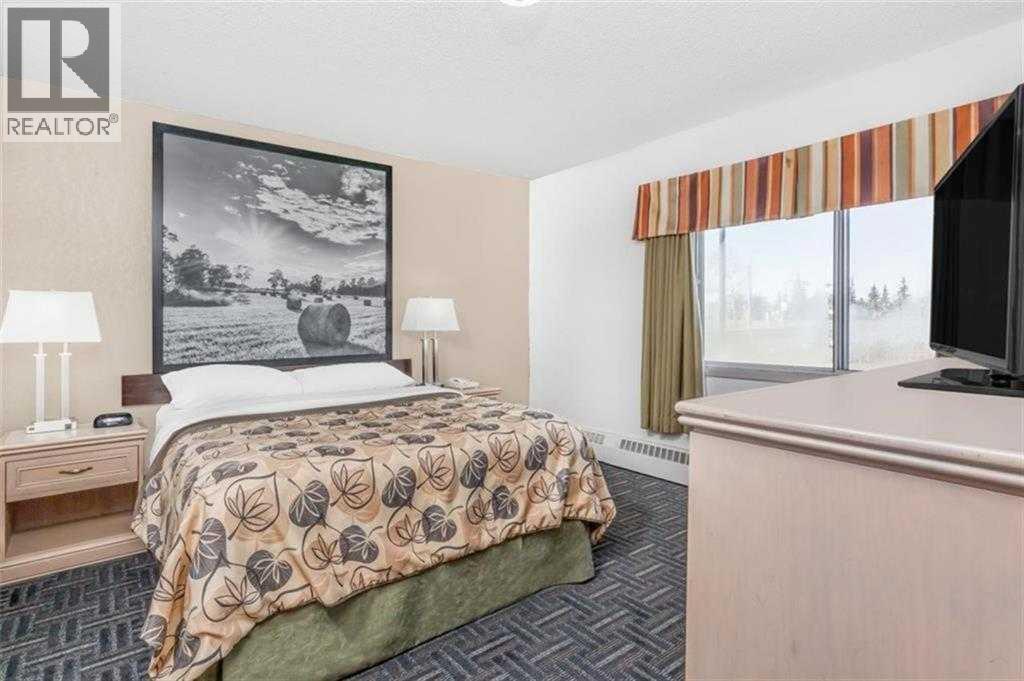 Strategically located limited-service Super 8 Hotel in Stettler, AB - The "Heart of Alberta" - This 49-key, two-storey property offers comfortable guest accommodations with a mix of Single Queen, Double Queen, King, and suite rooms featuring kitchenettes. Amenities include a complimentary breakfast room, business centre, and pet-friendly policy. Situated on 1.18 acres along Highway 56 at the south entrance to Stettler, the hotel provides excellent visibility and easy access to major routes serving Central Alberta. The stable Central Alberta market, supported by agriculture, energy, tourism, and regional events, delivers consistent demand from corporate, leisure, and drive-through travellers. Well-maintained and internationally branded, this fee-simple asset presents a compelling opportunity for investors seeking a turn-key hospitality property with strong upside potential through targeted capital improvements and management enhancements. A new metal roof was installed on both the hotel and restaurant approximately 5 years ago (valued at over $150,000)There is a free-standing leased restaurant/lounge located on the same lot. For all inquiries and to arrange a private tour, please contact the exclusive advisor. (id:55690)