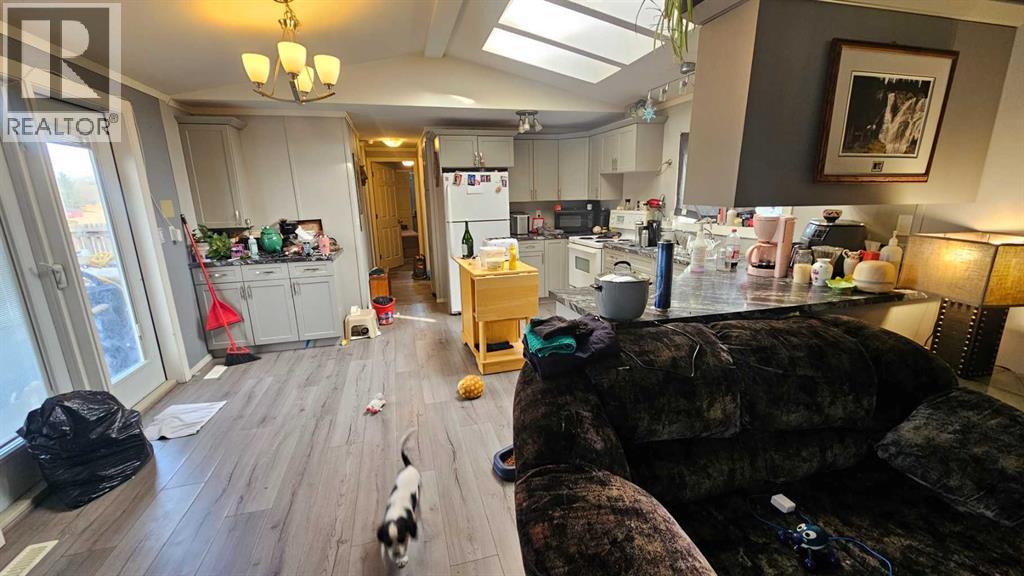 Enjoy comfort and convenience in this open concept home with three bedrooms two and a half bathrooms. Featuring vaulted ceilings and a spacious, fenced backyard in a quiet end of town on its own lot. The deck gives lots of room for morning coffees or meeting with friends. The home has vinyl siding, windows, and skirting, giving it a finished look. There are new water pipes, furnace and hot water tank 3 years ago. This might be the future home you are looking for. (id:55690)