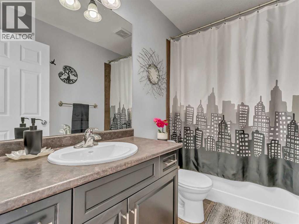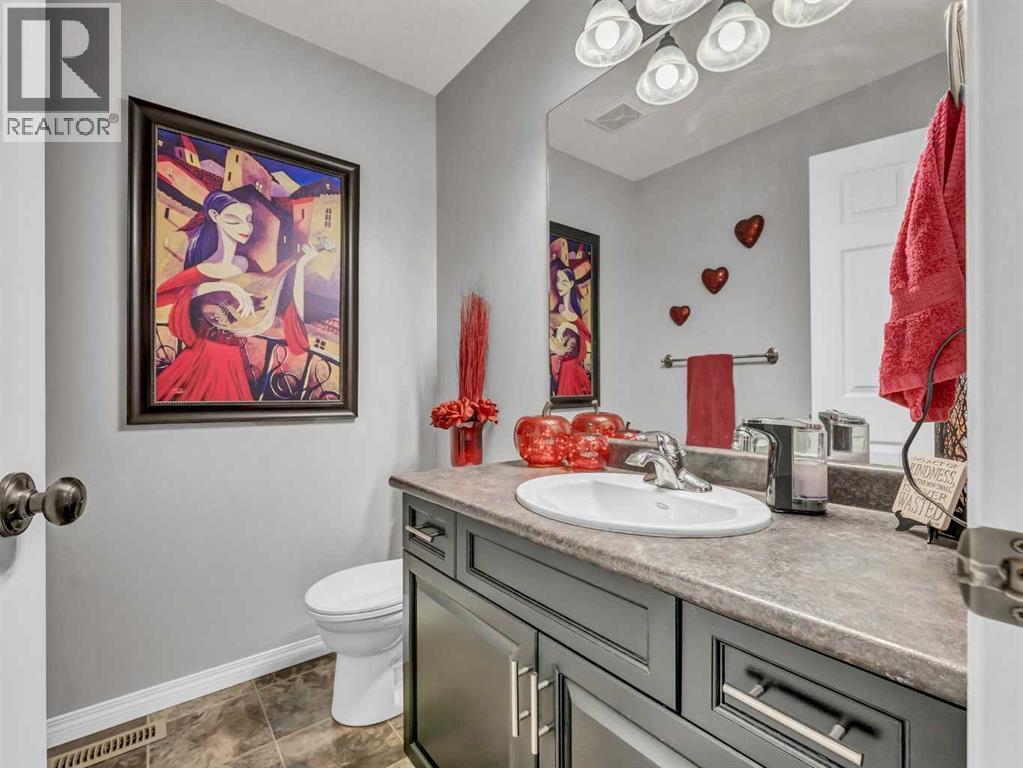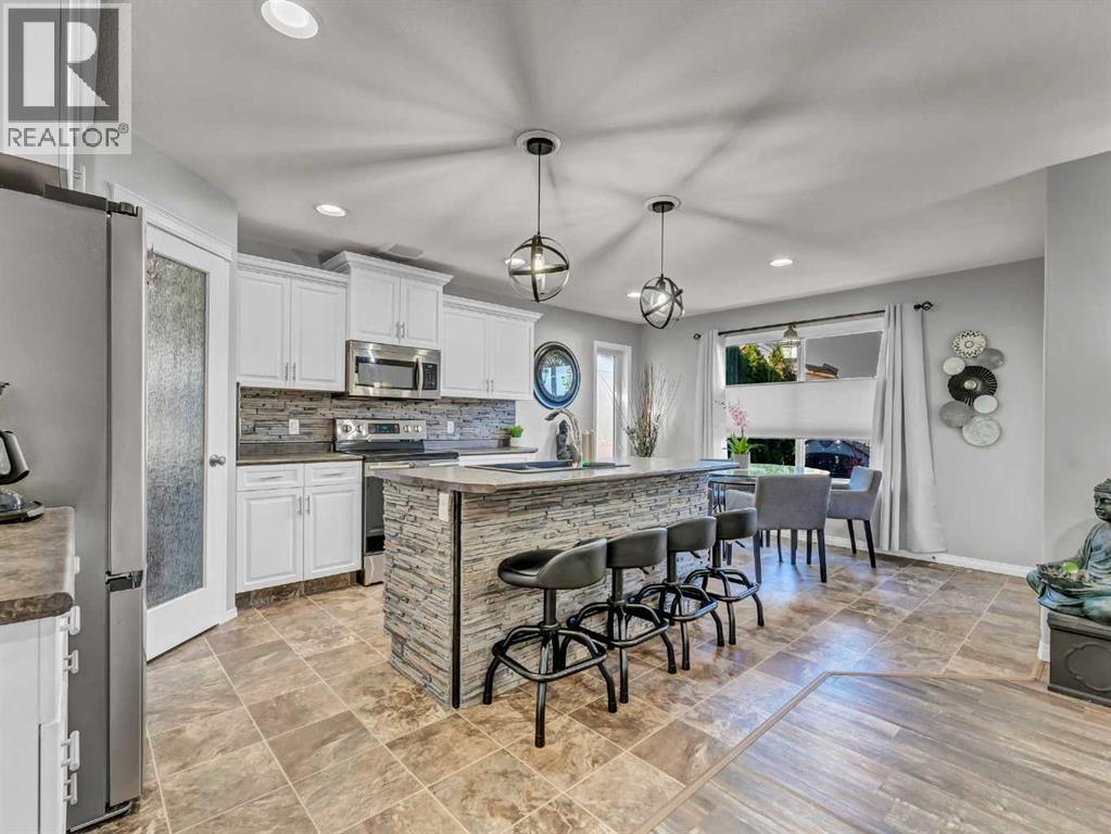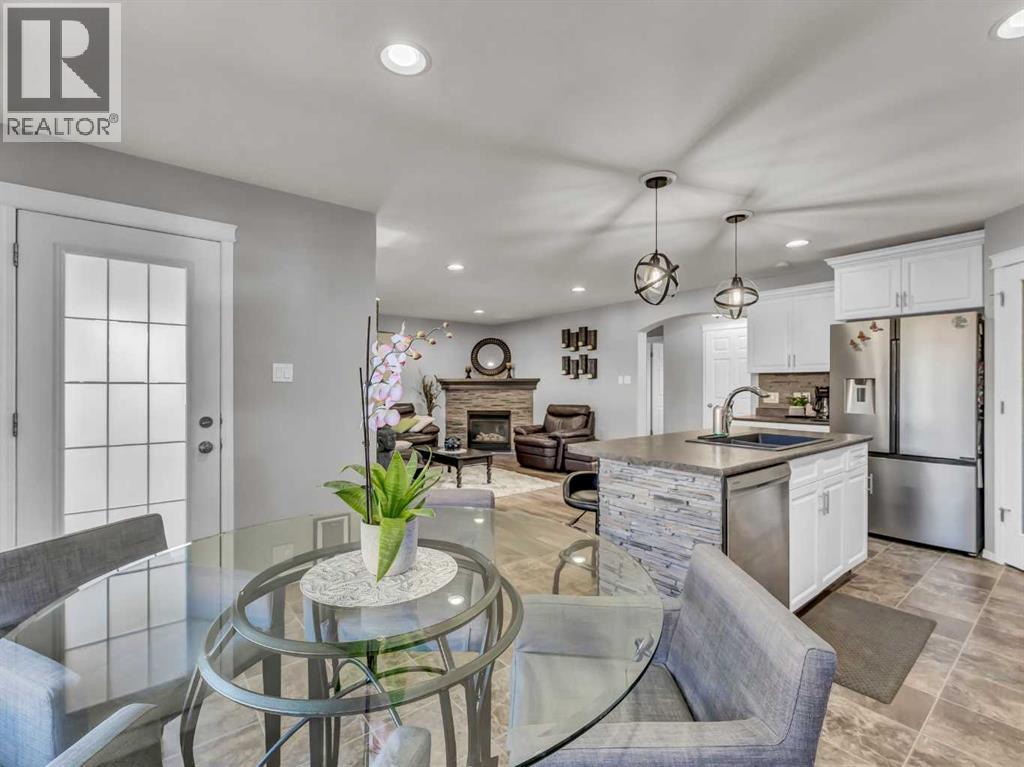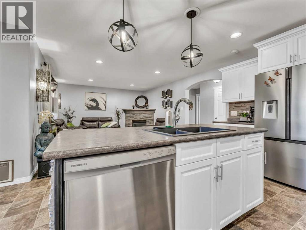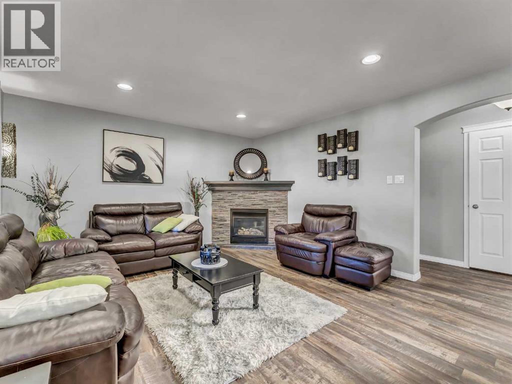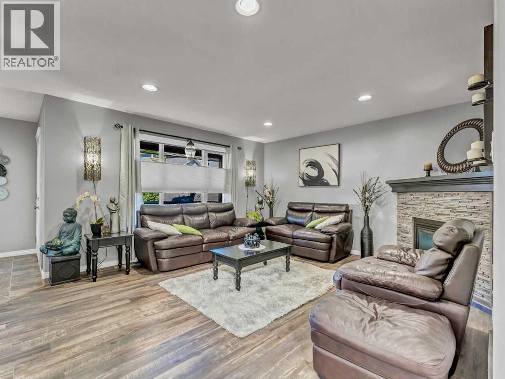 Welcome to this stunning 2-storey home located in one of the most family-friendly neighbourhoods in the city. You’ll love being surrounded by parks, playgrounds, schools, daycares, and scenic walking paths — everything a growing family needs just steps away.Step inside to a spacious front entry with a convenient coat closet, setting the tone for the thoughtful design throughout. The heart of the home is the gorgeous kitchen, featuring a stainless steel appliance package, corner pantry, and a stylish backsplash that ties beautifully into the tile detail on the island. The island offers extra seating, perfect for breakfast on busy mornings or gathering friends and family for special occasions.The kitchen flows seamlessly into the bright dining area and inviting living room, complete with a cozy corner gas fireplace accented with matching tile. From the dining room, step out onto the north-facing covered deck — an ideal place to unwind with a coffee while enjoying the view of the beautifully landscaped backyard, even on the warmest summer days.The main floor also features a handy laundry room, 2-piece bathroom, and stylish up-down window coverings.Upstairs, you’ll find three generously sized bedrooms, including a spacious primary suite with a walk-in closet and a 4-piece ensuite — your personal retreat at the end of the day. The second floor also includes another full bathroom for the family.The fully finished basement adds even more living space with two additional bedrooms, a comfortable family room, a 3-piece bathroom, and a utility room with a high-efficiency furnace. The basement is also wired for surround sound.Throughout the home, you’ll notice eye-catching light fixtures, neutral paint tones, and a warm, welcoming atmosphere.Outside, the backyard is a private oasis — beautifully designed with a curved yin-yang stone patio surrounded by lush green lawn and mature trees for extra privacy. Whether you’re hosting a barbecue, watching the kids play, or simply relaxing in the evening, this yard is made for making memories. Shingles were redone in 2023.The heated and finished double garage (22x26) provides plenty of room for vehicles, tools, and toys.With 5 bedrooms, 3.5 bathrooms, and 1,664 sq. ft. of comfortable living space, this home truly offers everything a growing family could want. Come see it for yourself — your forever home awaits! (id:55690)