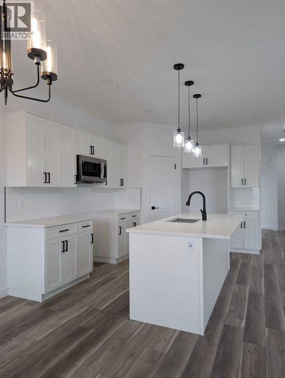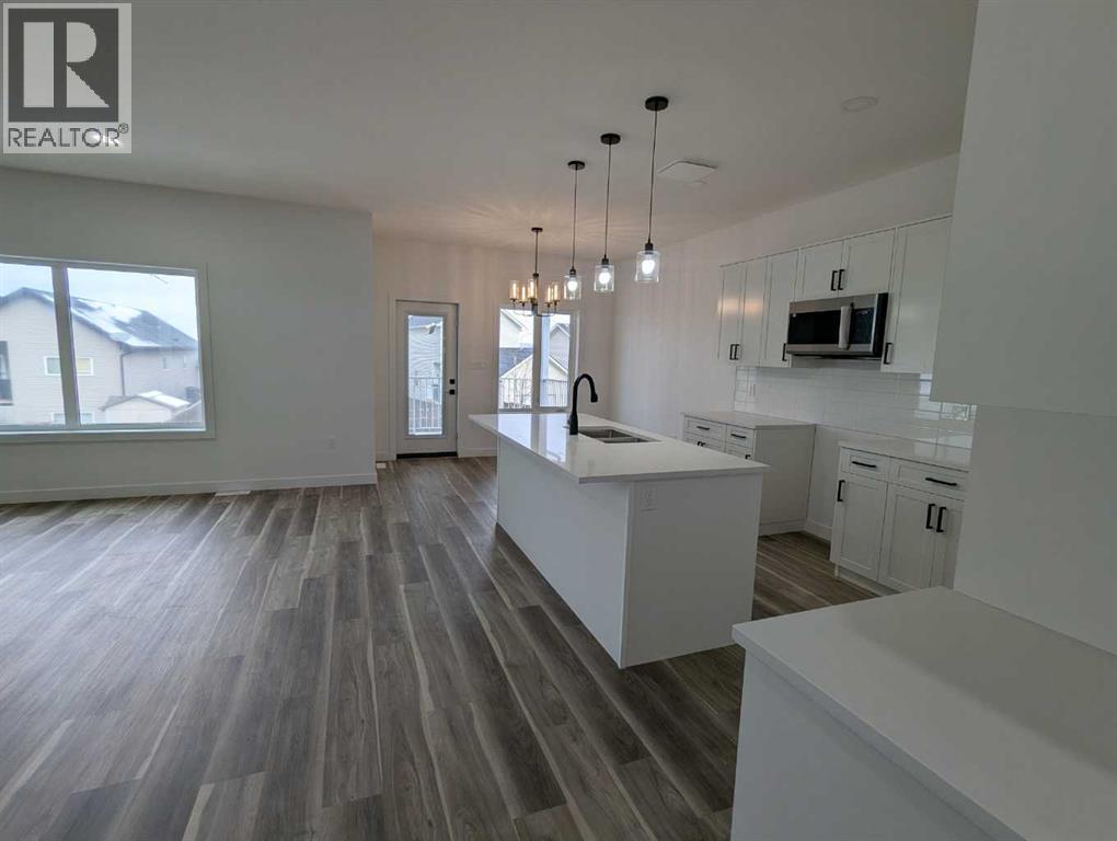 Don’t let this chance pass; be the first to make this lovely new walkout bungalow your home. Built by New Tab Homes Ltd. and DP76 Construction, this thoughtfully designed property blends modern style with practical functionality. Offering 1,099 square feet of beautifully planned living space, the open concept layout creates a bright and welcoming atmosphere. The kitchen, dining, and livingroom areas are seamlessly connected, perfect for both everyday living and entertaining. The kitchen is equipped with a large center island, abundant counter space, and a convenient corner pantry. Patio door off the dinning room lead you to the covered balcony that overlooks the yard. The main floor also includes a laundry room, a 2 piece guest bathroom, and a well appointed primary bedroom featuring a walk-in closet and a luxurious 4 piece ensuite. Downstairs, the fully developed walkout basement will offer a large family room with direct access to a covered patio, 2 additional bedrooms, and a full 4 piece bathroom. A double attached garage and a spacious driveway ensure plenty of parking for your family and guests. ** RMS square footage is based on builder plans. (id:55690)