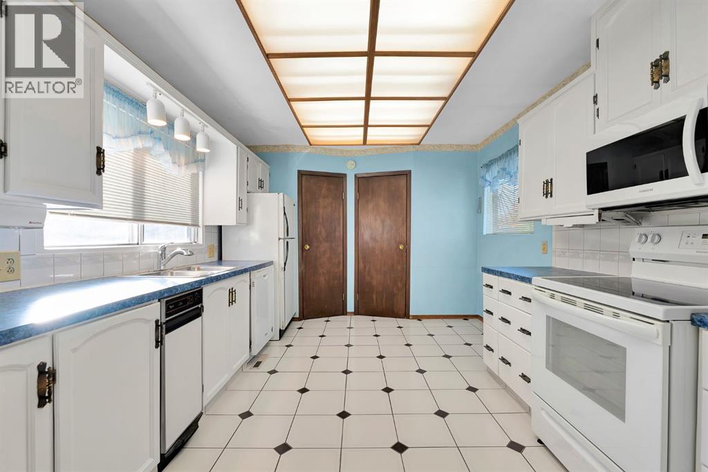 Welcome to this well-cared-for bi-level home, ideally located on a generous 50' x 120' lot in a quiet cul-de-sac in the heart of Ogden. Enjoy exceptional privacy with no neighbours in front or to one side—just peaceful green space and open views. Plus, the future Green Line LRT will conveniently pass through Ogden, adding even more accessibility and value to this fantastic location. The main floor features a bright and spacious family room complete with a cozy fireplace, perfect for relaxing evenings. Adjacent is a large dining room featuring a beautiful built-in china cabinet, offering plenty of additional cabinet and display space, along with a charming built-in phone desk ideal for added storage or a compact workspace. The kitchen is functional and well laid out, with the laundry area conveniently located just off the kitchen for everyday ease. Two bedrooms on the main floor include a comfortable primary suite with a 2-piece ensuite, along with a full 4-piece main bathroom. The fully developed lower level offers even more living space, including a third bedroom, a 3-piece bathroom, a spacious recreation room with a second fireplace, and a bright sunroom. This level also provides direct access to the double attached garage, offering plenty of room for vehicles, storage, or workshop needs.Step outside to enjoy the expansive deck, perfect for entertaining or relaxing. Below the deck, you’ll find an extensive enclosed storage area—ideal for tools, seasonal items, or outdoor equipment. The backyard also features a dedicated fire pit area, perfect for cozy evenings under the stars. The property includes a detached single garage currently set up as a workshop, plus rear lane access with ample fenced RV parking and a gate for easy access. Available for immediate possession and proudly offered for the first time, this unique and spacious home truly has so much to offer. Book your private showing today and experience it for yourself! (id:55690)