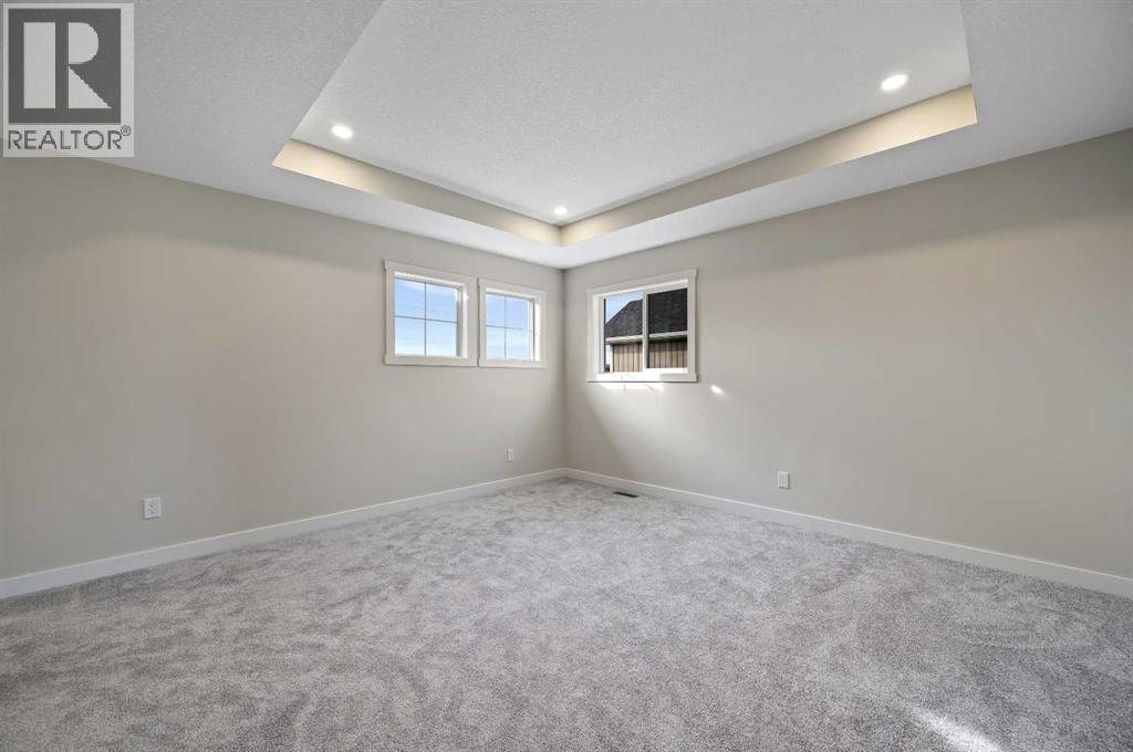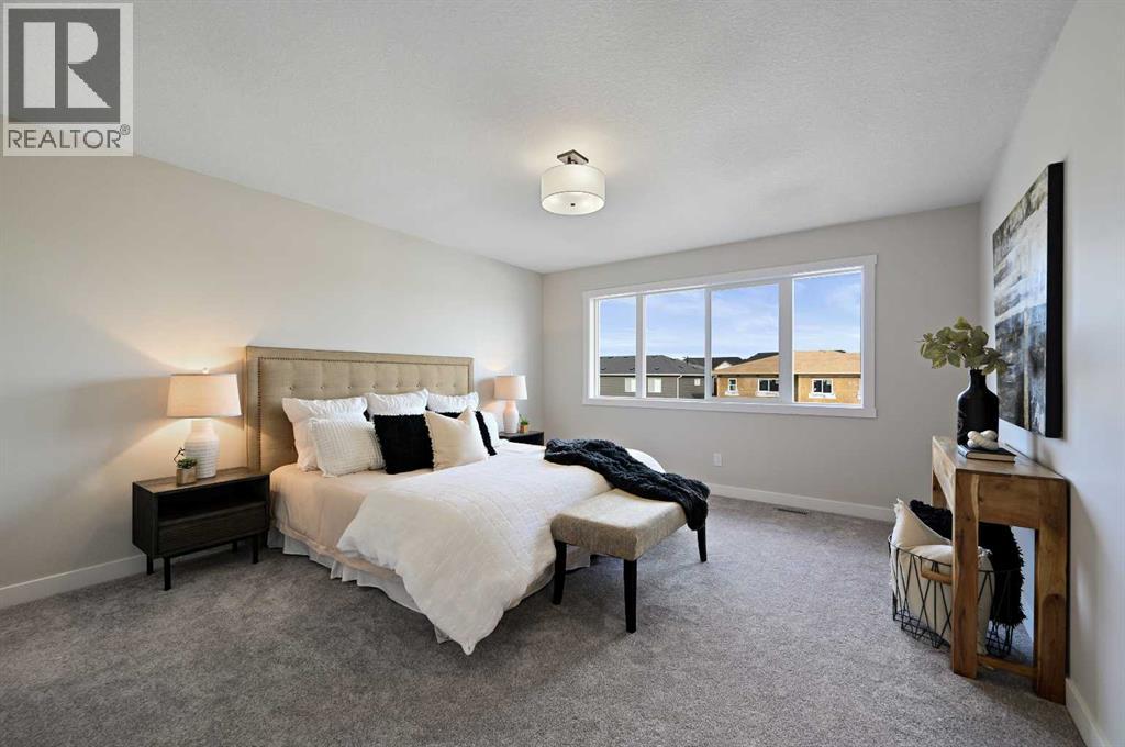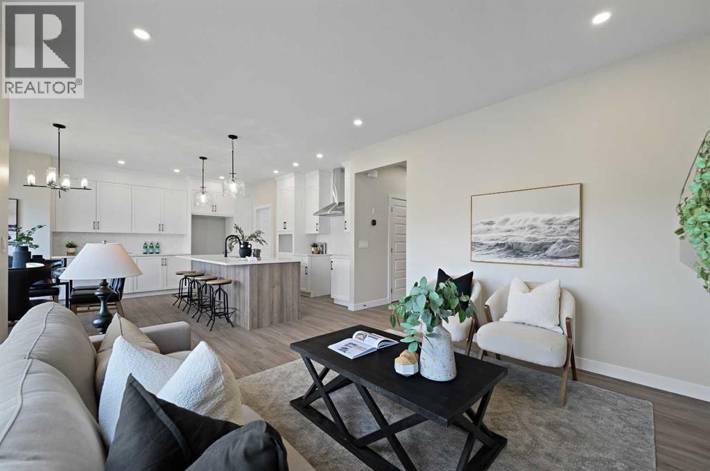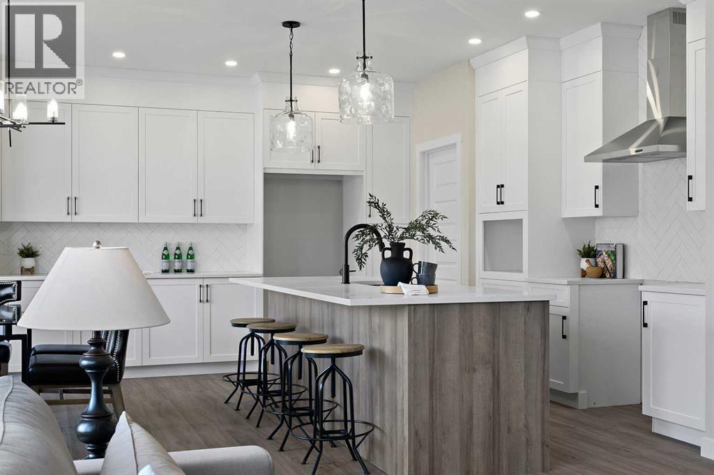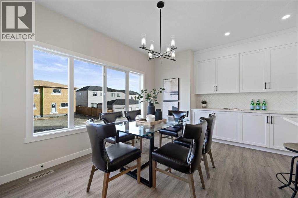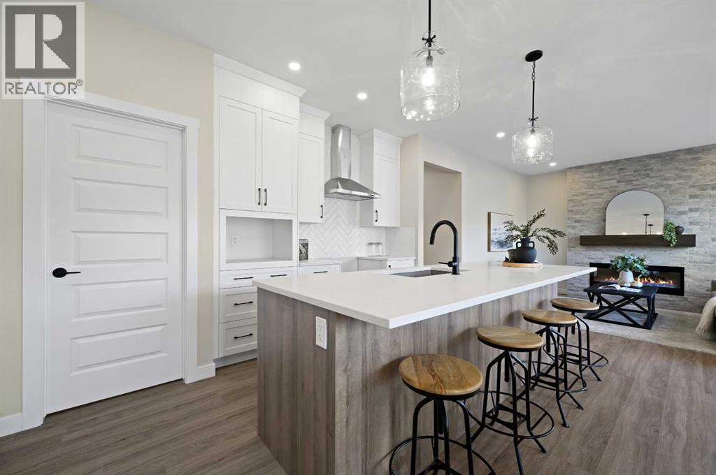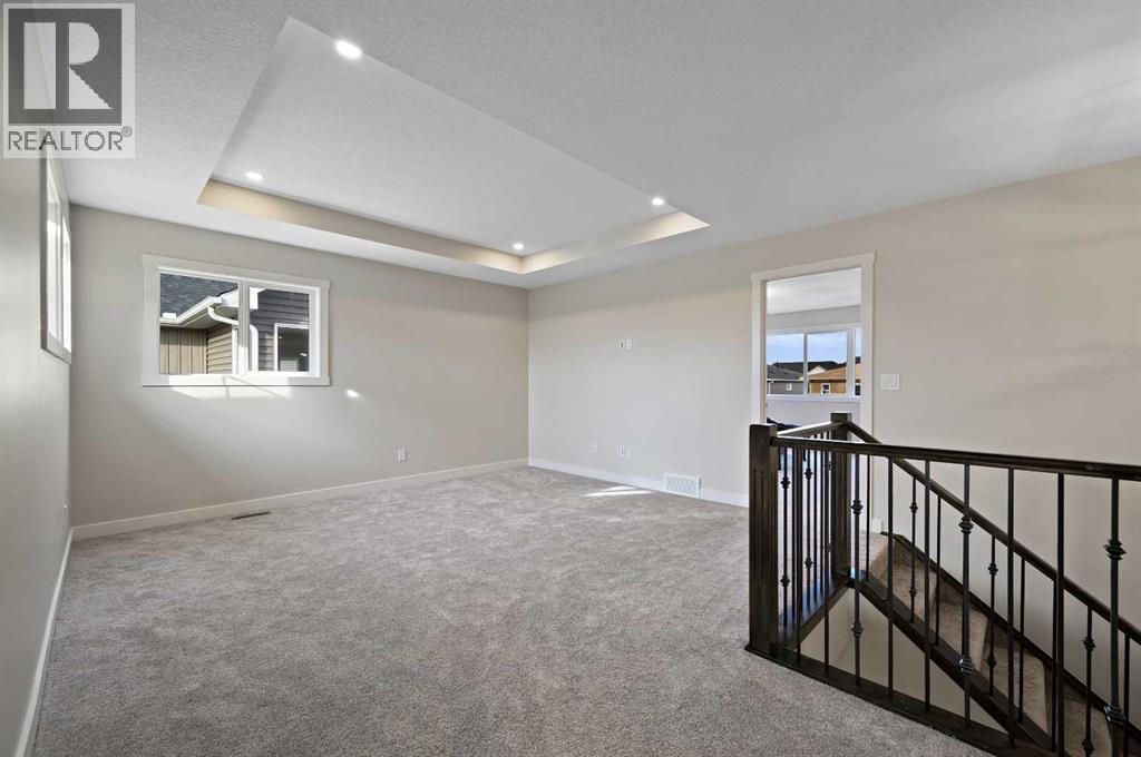 Genesis Builders presents the Ashdale, a thoughtfully designed 3 bedroom 2.5 bathroom home offering more than 2200 square feet along with a main floor office. Stepping inside, you are greeted by the warm ambiance of neutral tones and airy 9' ceilings. The luxury vinyl plank flooring guides you through the open concept main floor living space. The heart of the home is the chef’s kitchen with cabinetry finished in chantilly lace, accented by black and gold hardware, a wood grain island, a glossy white herringbone tile backsplash, and bright quartz countertops paired with a stainless steel appliance package. The open concept living area offers a generous dining room that flows into the living room and provides access to the north backyard where you will enjoy sunny evenings and beautiful sunsets. A stone faced feature fireplace anchors the living room and adds warmth and style. Complimenting the main floor is a private office, a powder room, and a convenient walk through pantry from the mudroom that connects to the double attached garage. Upstairs, a central bonus room with a tray ceiling greets you and separates the primary bedroom from the second and third bedrooms. The primary bedroom is a spacious retreat with an ensuite bathroom that includes double sinks, an oversized tiled shower, and a large walk in closet. The additional bedrooms are generous in size and function perfectly for kids or guests. A beautifully finished full bathroom and a laundry room complete this floor. The basement is a blank canvas with upgraded 9' ceilings and awaits your design ideas. Situated in the desirable bayview community, this family friendly neighborhood offers endless ways to get outside. You are steps from Nose Creek Elementary School, the pathways that wind along the scenic canals, a new playground, and so much more. *Area size was calculated by applying the RMS to the blueprints provided by the builder. (id:55690)