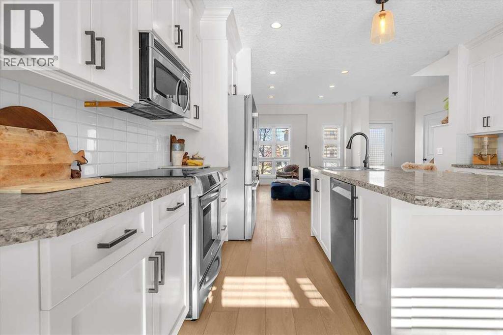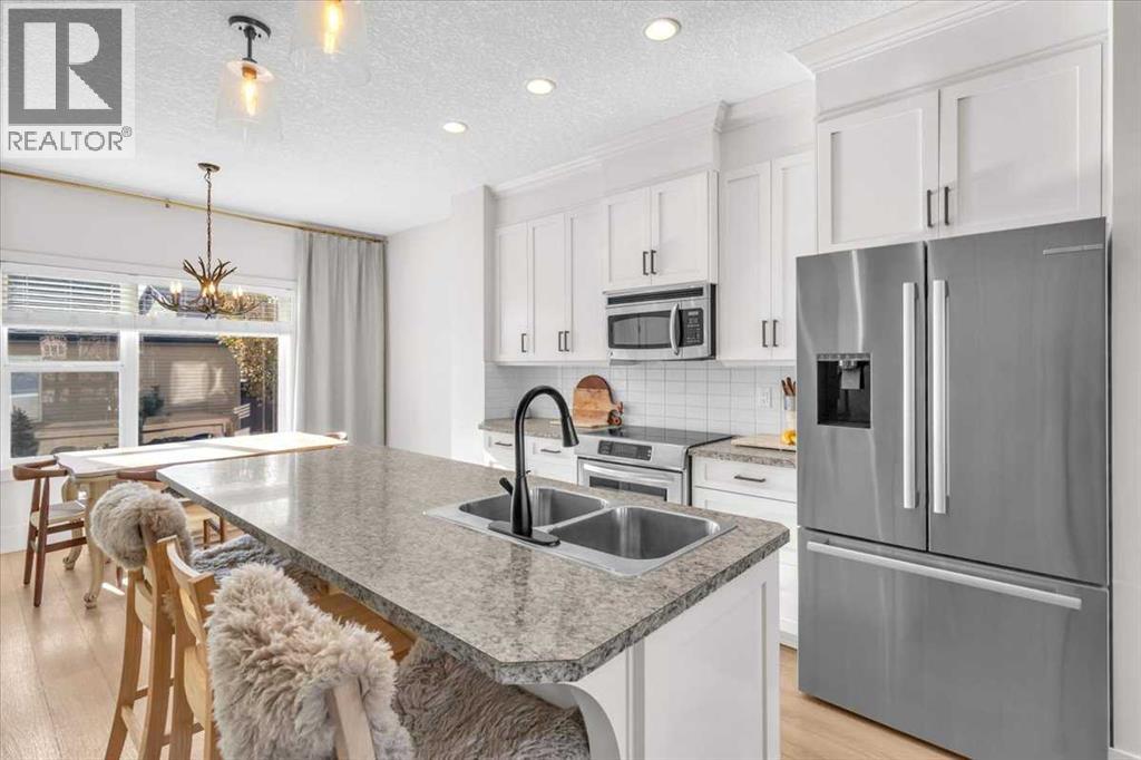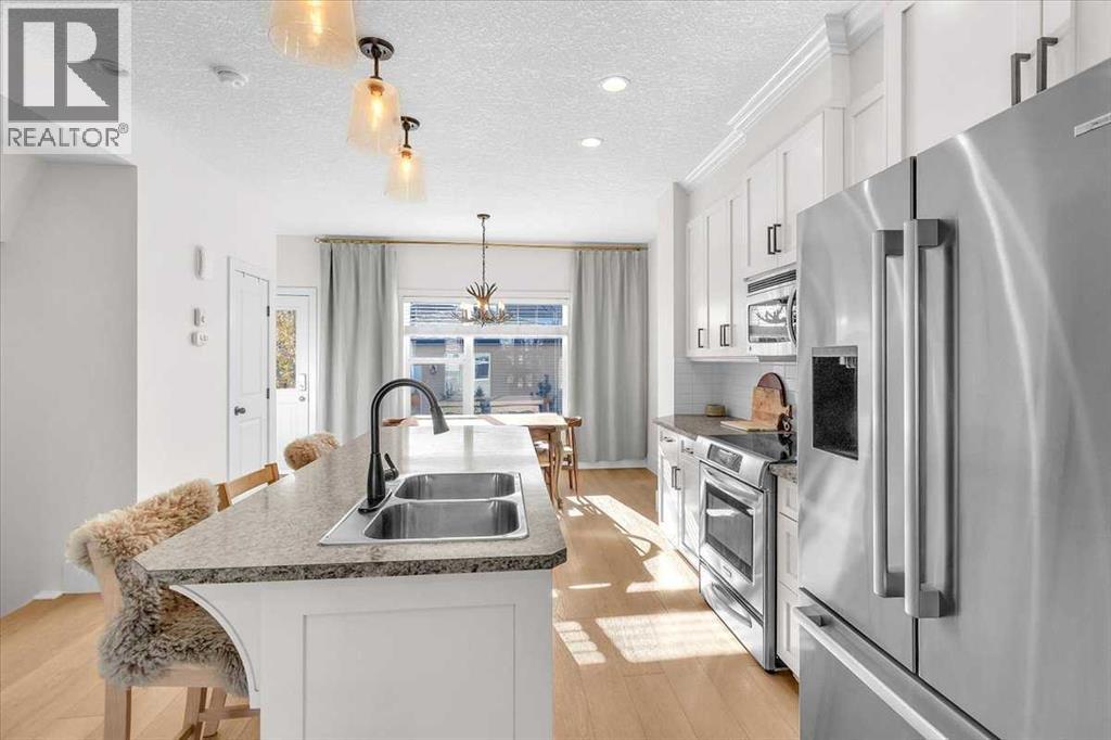 Style, Sophistication, and Location – This Home Has It All!Welcome to this stunning two-storey in the heart of Walden, offering over 1,700 sq. ft. of beautifully developed living space. From the moment you step inside, you’ll appreciate the renovated kitchen with full-height cabinetry, newer appliances and modern finishes—a perfect blend of function and style. The main floor features 9-foot ceilings, stylish flooring, and an open-concept layout that’s bright, inviting, and ideal for entertaining.Upstairs, you’ll find comfortable bedrooms and a fresh, modern feel throughout. The fully finished basement—also with 9-foot ceilings—adds even more living space for family, hobbies, or guests.Outside, enjoy your low maintenance private backyard oasis with a massive 24x24 garage that offers incredible storage and creates a cozy, sheltered setting for summer BBQs. This home is truly move-in ready, with a newer roof, and central air conditioning. Located close to parks, pathways, schools, transit, and shopping, this home delivers on style, comfort, and convenience. Welcome home. Welcome to Walden! (id:55690)
