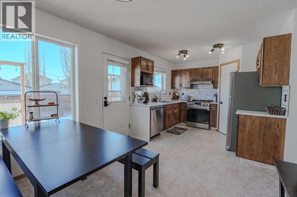 Welcome to this well maintained, fully developed two storey home in the sought after community of Bridlewood. Freshly painted throughout, this inviting property delivers comfort, functionality, and value with over 1,700 sq ft of thoughtfully designed living space, plus added peace of mind with a new roof and siding completed in 2023.Inside, you will find a practical layout featuring four bedrooms, 1.5 bathrooms, and convenient main floor laundry. The refreshed kitchen shines with new quartz countertops and stainless-steel appliances installed in 2024, along with a spacious separate dining area that is ideal for family meals or entertaining. Additional upgrades include updated door hardware throughout the main and upper levels in 2025.The west facing living room is bright and welcoming, filled with natural light. Upstairs, the generous primary bedroom includes a walk-in closet and is complemented by two additional large bedrooms and a 4-piece bath. The fully finished basement expands your living space with a versatile bedroom/office, a large family room, and excellent storage.Step outside to enjoy the spacious east facing backyard, featuring an extended deck, a large parking pad, and two storage sheds, including a new shed added in 2024.Located in Bridlewood, this home sits in a well-established neighborhood close to major roadways, public, private, and Catholic schools, shopping with Costco just a short drive away, dining, everyday amenities, and Spruce Meadows. This move-in-ready home is a fantastic opportunity in a family-friendly neighborhood. Don’t miss your chance—book your showing today and come see all that this wonderful home has to offer! (id:55690)