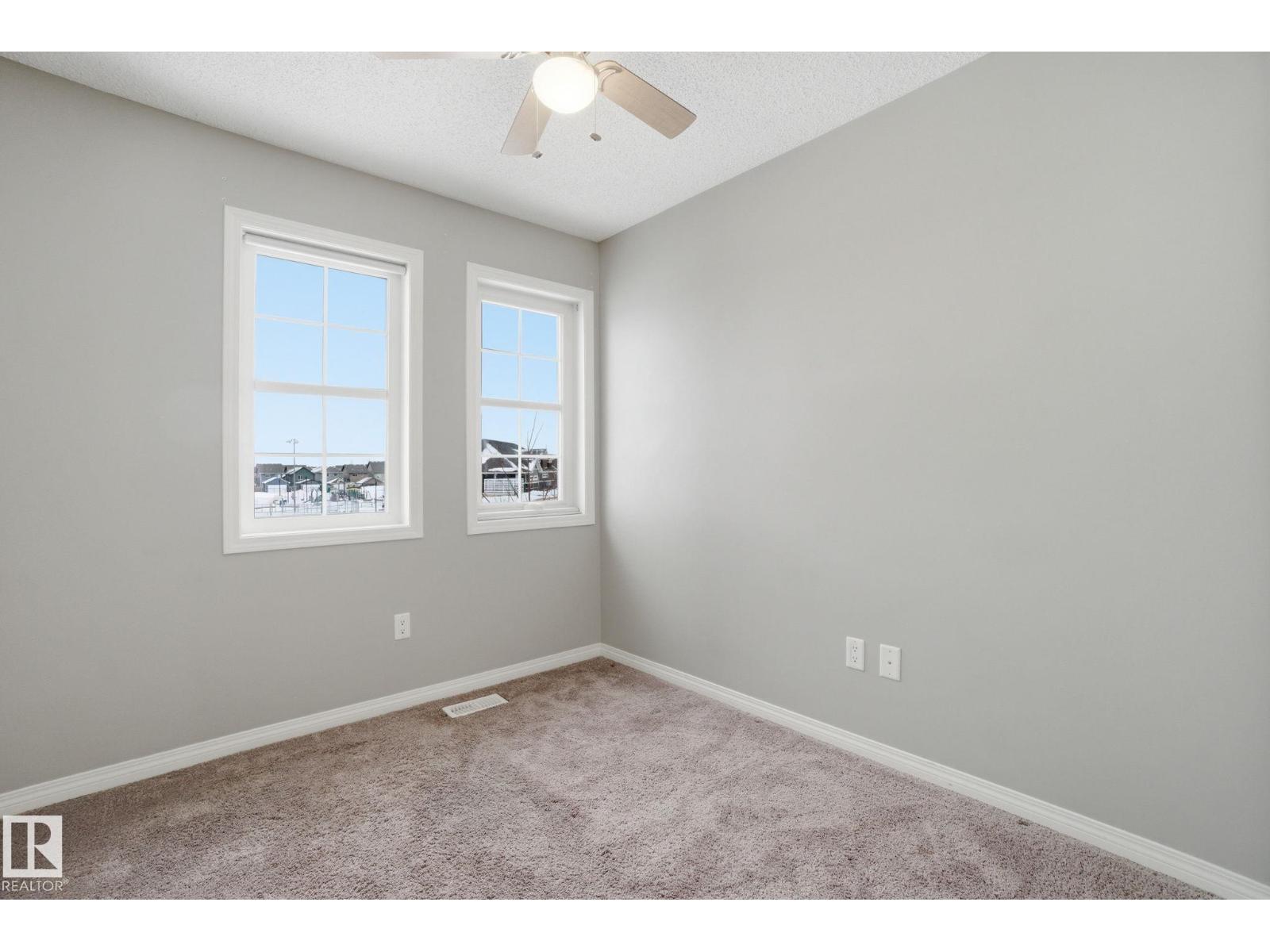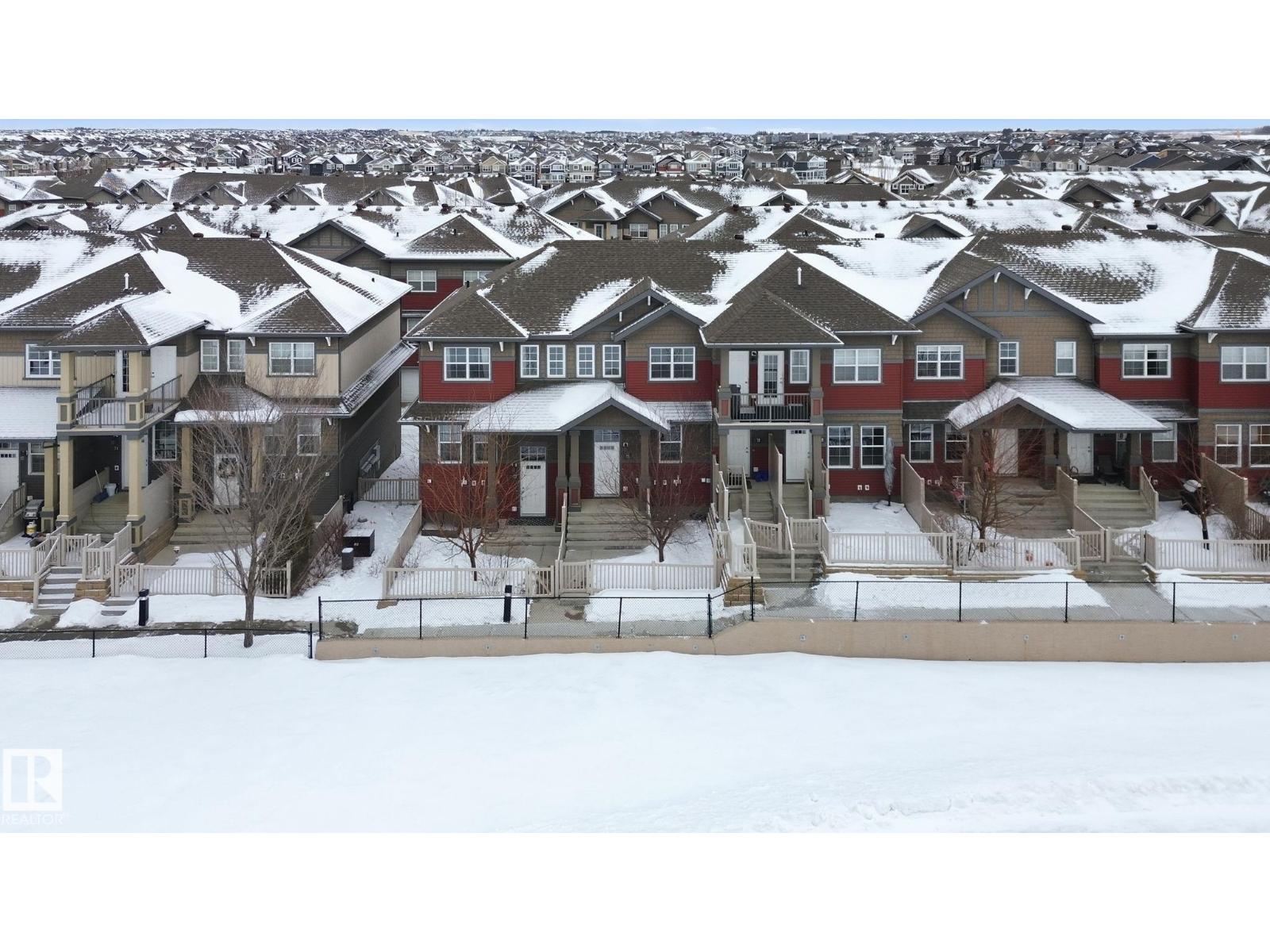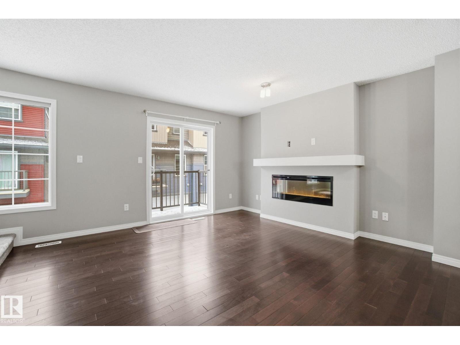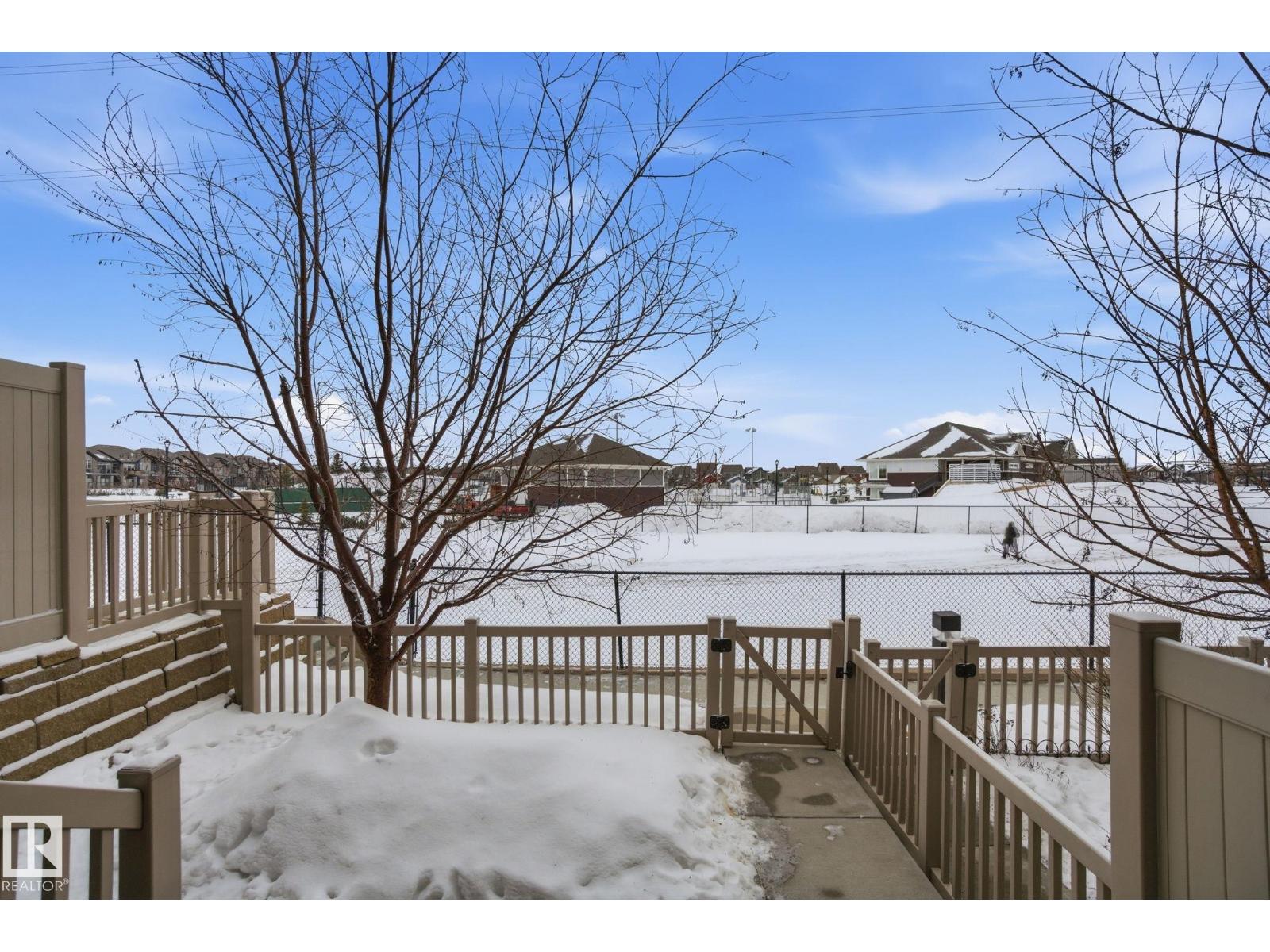 Welcome to the Orchards at Ellerslie! This beautiful home faces the community park with walking trails and is steps from the Clubhouse with tennis courts, skating rink, and splash park / playground. Easy access to the Anthony Henday makes commuting a breeze. Inside, enjoy a spacious entry leading to an open-concept living area with abundant natural light, hardwood floors, and a electric fireplace. The kitchen features maple cabinets, granite counters, stainless steel appliances, a full pantry, and ceramic tile flooring. Upstairs offers a primary bedroom with 3pc ensuite, 2 additional bedrooms, and a 4pc bath. Other highlights include an attached double garage, fenced front yard, and visitor parking, perfect for families seeking comfort, style, and convenience. Some of the photos have been virtually staged. (id:55690)