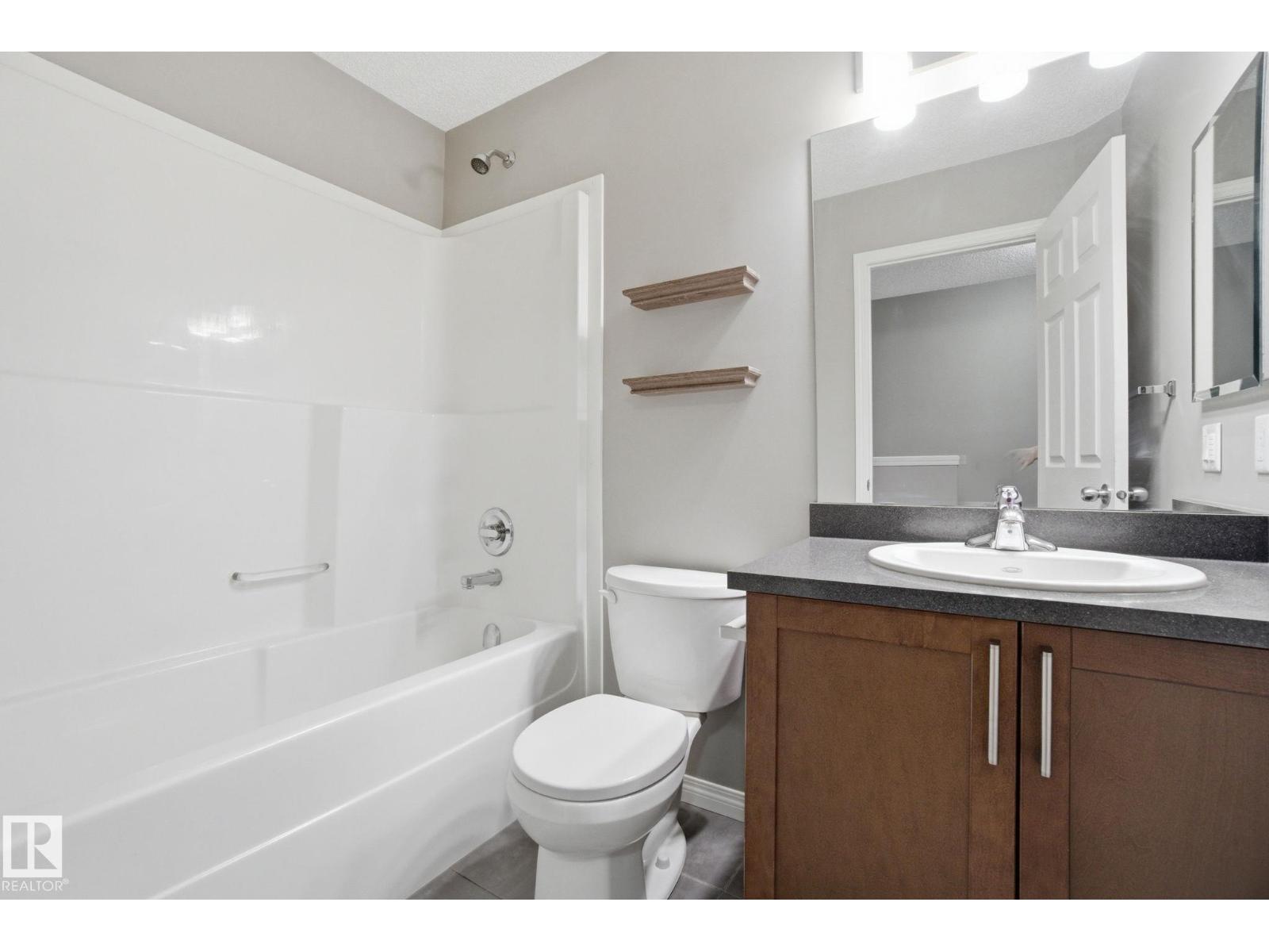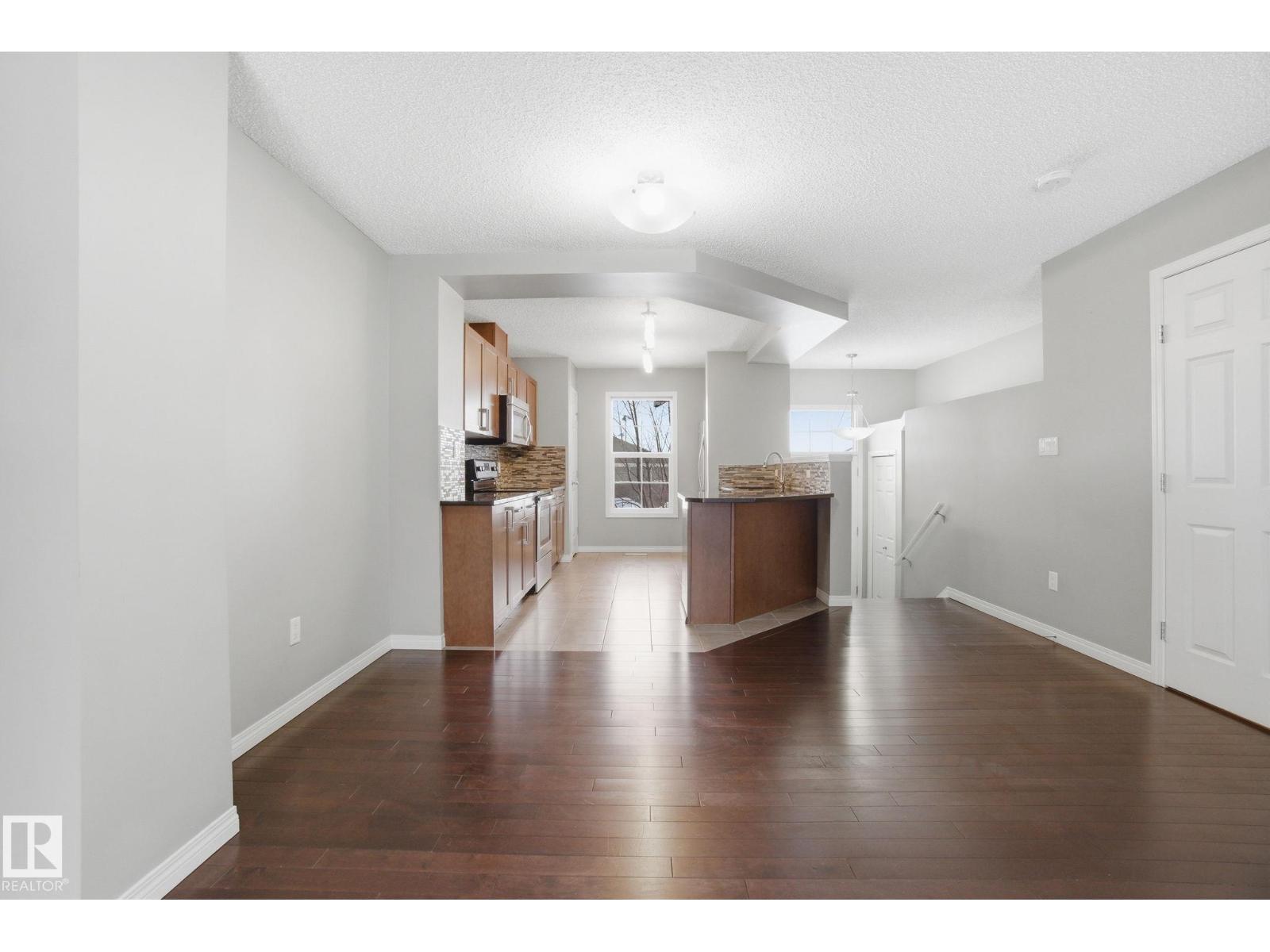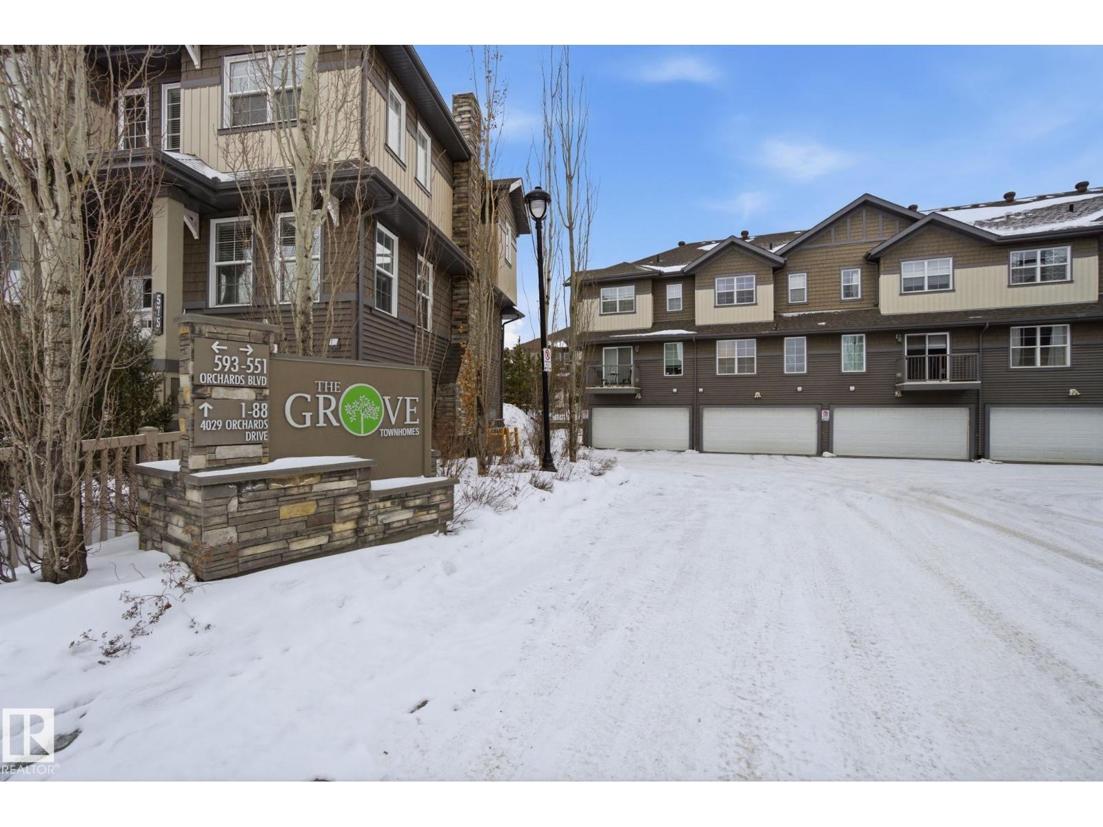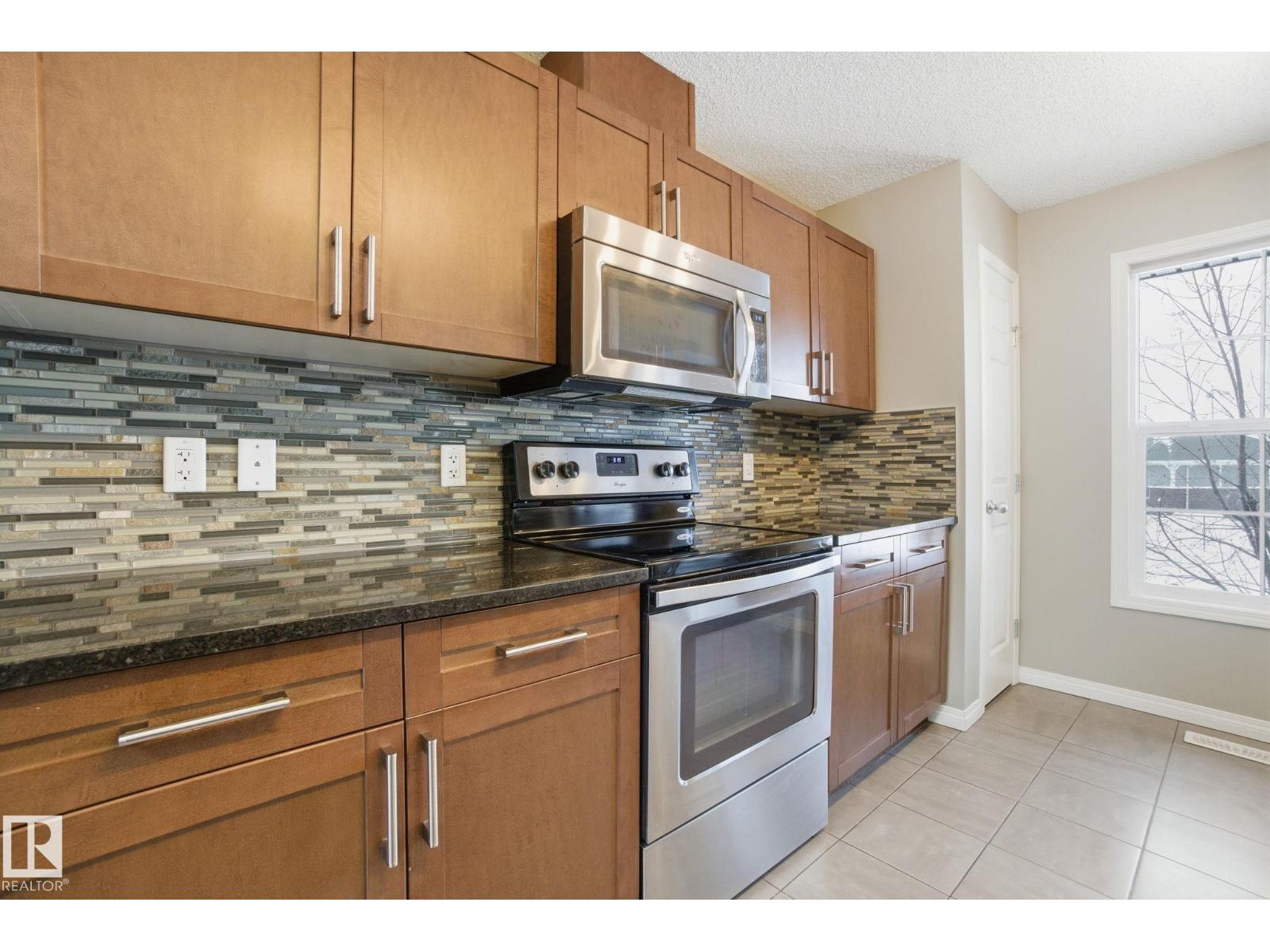 Welcome to the Orchards at Ellerslie! This beautiful home faces the community park with walking trails and is steps from the Clubhouse with tennis courts, skating rink, and splash park / playground. Easy access to the Anthony Henday makes commuting a breeze. Inside, enjoy a spacious entry leading to an open-concept living area with abundant natural light, hardwood floors, and a electric fireplace. The kitchen features maple cabinets, granite counters, stainless steel appliances, a full pantry, and ceramic tile flooring. Upstairs offers a primary bedroom with 3pc ensuite, 2 additional bedrooms, and a 4pc bath. Other highlights include an attached double garage, fenced front yard, and visitor parking, perfect for families seeking comfort, style, and convenience. Some of the photos have been virtually staged. (id:55690)
