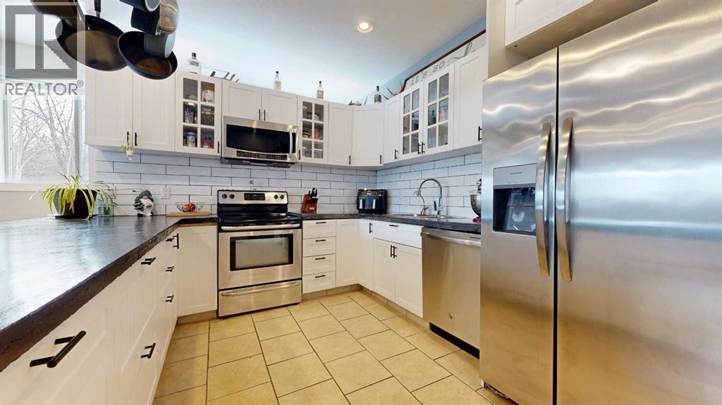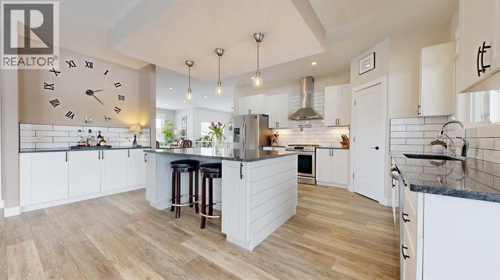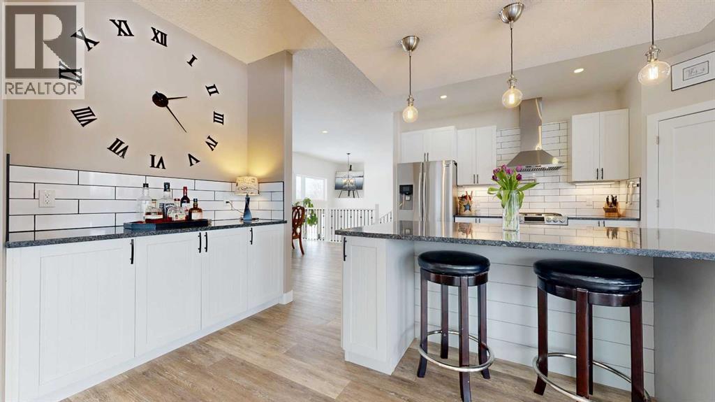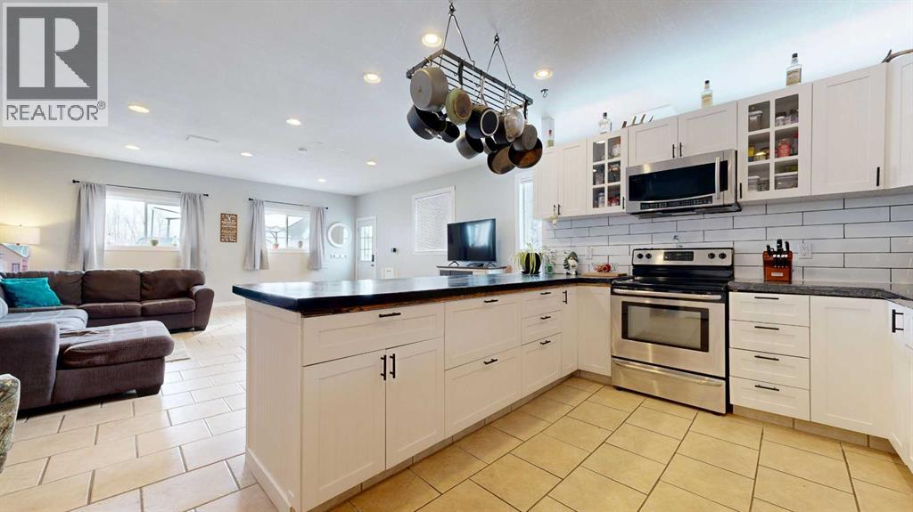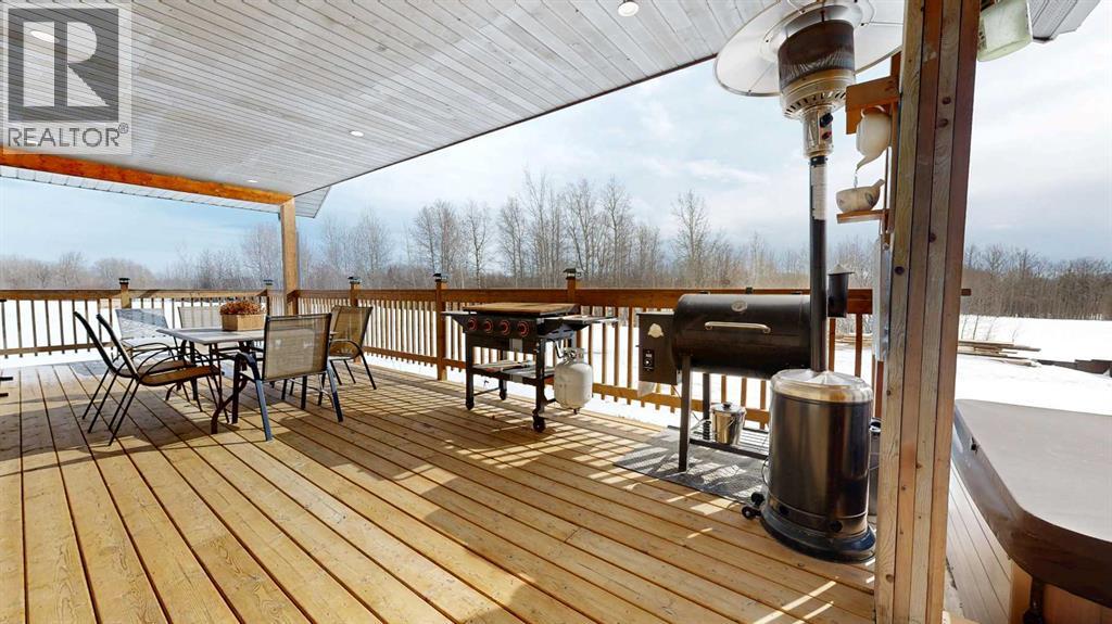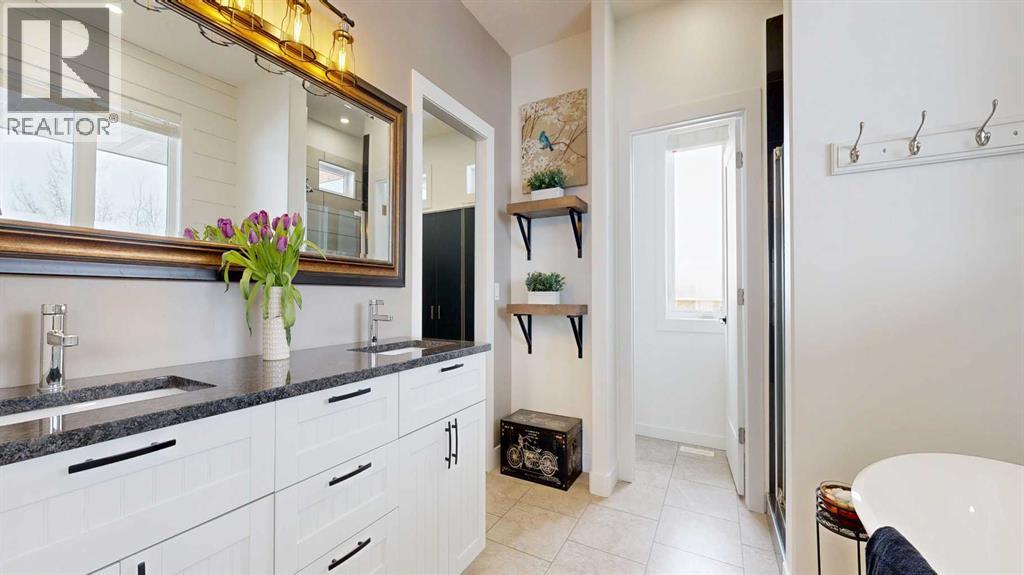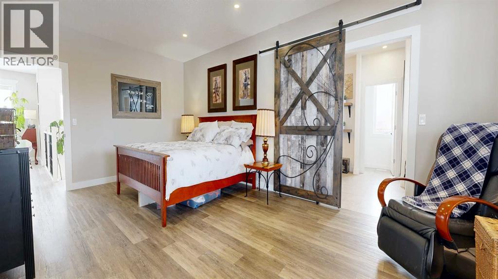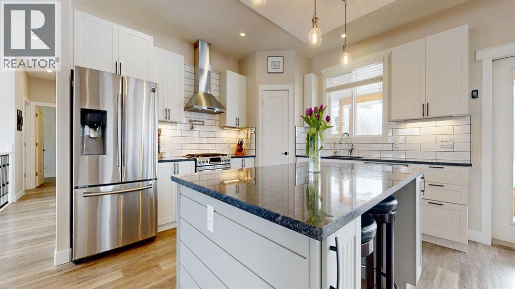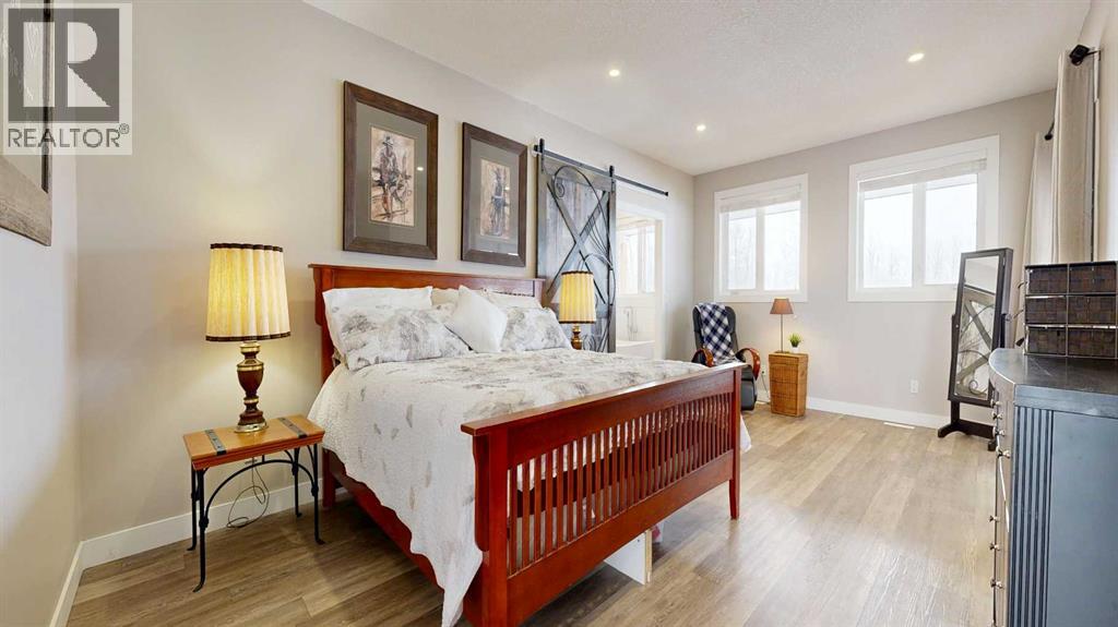 Luxury meets practicality in this one-owner, custom built 2018 home, designed with intention, flow, and everyday comfort in mind. Pulling into your oversized 27x30’ attached garage, you’re welcomed into a spacious entryway, your main floor laundry, and a convenient 3-piece bathroom, keeping everything functional and within reach.Down the hall, you’ll find your primary retreat. The attention to detail stands out immediately with a custom sliding barn door that ties seamlessly into the design of the adjoining rooms. The bedroom itself offers direct access to your covered, south-facing deck (also accessible from the main living area), creating a perfect indoor-outdoor connection. Your 5-piece ensuite features dual sinks, a soaker tub, and a walk-in shower, leading into a thoughtfully designed walk-through closet that loops back to the garage entry.Beyond the primary suite, the home opens into a formal dining space and a beautifully finished kitchen. Granite countertops, carried throughout the entire home, highlight the space, along with a massive island with sit-up seating, a dedicated coffee bar, dual-tone cabinetry, and a corner pantry offering plenty of storage. The kitchen flows effortlessly into the main living room, where a gas fireplace and large south-facing windows fill the space with natural light.Also on the main level are two additional bedrooms and a 4-piece bathroom, offering space for family or guests.Heading toward the front entry, the stairwell leads you to the fully developed lower level. Downstairs, you’ll find three more spacious bedrooms, in-floor heating for year-round comfort, two large living areas that can be utilized to your liking, and another 4-piece bathroom. There’s also plumbing in place for a future wet bar, adding even more potential to the space.Additional features in the home include tankless hot water, reverse osmosis servicing both the kitchen sink and fridge, and central A/C.Step outside to enjoy your private yard, complete w ith a graveled fire pit area, perfect for relaxing or entertaining. Another amazing feature is the impressive 40x60’ detached shop with a 16x60’ covered lean-to and a fully self-contained 1580 sq.ft. two-storey suite.The shop is built to perform, featuring 200 amp service with a welding plug, in-floor heat, a sump pit, and an overhead door leading directly into the covered lean-to. The mezzanine level is equally well-equipped with both in-floor and radiant heat.For the suite, you’ll find a functional layout starting with a laundry and storage area that leads into a comfortable living space. The main level includes a 3-piece bathroom and a living room that offers plenty of space to unwind, while upstairs you’ll find a large primary bedroom complete with a gas fireplace and a private balcony. The suite also features in-floor heat and its own reverse osmosis. A rare combination of high-end finishings, thoughtful design, and fantastic versatility make for an incredible home. Book your showing today! (id:55690)
