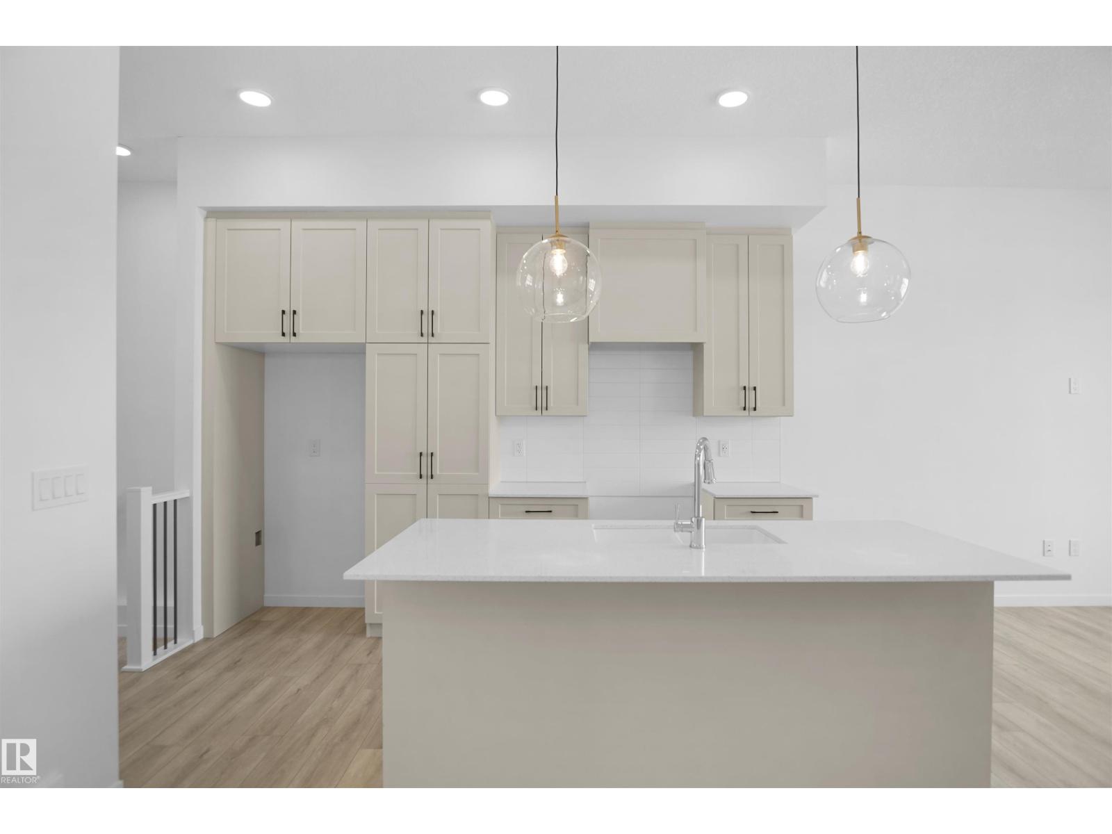 Welcome to the Bungalows at Blatchford. This brand new townhouse unit the “Fernie” Built by StreetSide Developments and is located in one of Edmonton's best and upcoming areas of Blatchford!!! With just over 900 square Feet, front and back yard is landscaped, fully fenced and a double detached garage, this opportunity is perfect for a retired couple. This bungalow comes complete with upgraded Vinyl plank flooring throughout the great room and the kitchen. Highlighted in your new kitchen are upgraded cabinets, upgraded counter tops and a tile back splash. This home has a large primary suite with a 4 piece ensuite and a den perfect for a home office or a spare bedroom. This home has an unspoiled basement ready for future development or extra storage. These bungalows have NO CONDO FEES and also front onto the pond. This home is now move in ready ! (id:55690)