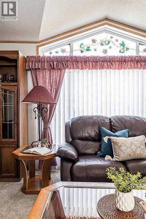 Welcome to this well maintained move-in ready bungalow in the adult living community of Meadowlark Village. With large windows and vaulted ceilings, this home feels bright and spacious. Nicely laid out with a good sized living room that leads into the well equipped kitchen with plenty of cabinetry & counterspace including an island, corner pantry, and dining area that's flooded with sunlight. The large primary suite is host to a walk-in closet and full four piece bathroom with ample storage. The guest bedroom enjoys access to the second full bathroom. A handy laundry room/mudroom is located just off the back entrance and flows into the second bathroom. This well maintained home features new carpet and newer shingles. A private fenced in patio area is the perfect spot for your flower pots, raised garden beds, and patio furniture to enjoy morning coffee and outdoor entertaining. Complete with a 22' x 20' garage and paved driveway, this home truly has everything you need! Meadowlark Village is a 35+ Adult Living Community that allows pets (with some restrictions), and residents have access to the wonderful community clubhouse. Located near walking paths, major shopping centers, restaurants, and medical offices. Lot rent is $746.55/month and includes snow removal, grounds keeping, water, sewer, garbage pick-up, and clubhouse access. (id:55690)