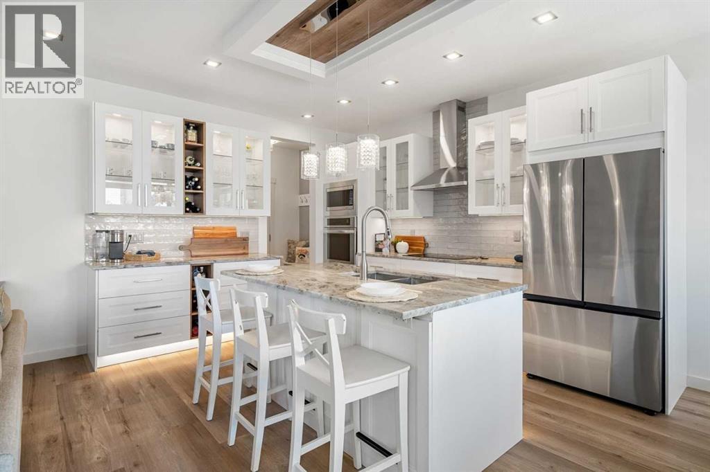 *OPEN HOUSE SAT NOVEMBER 8th 1-3PM* What a fantastic family home!! Nestled on one of the most sought-after streets in award-winning Cooper’s Crossing, this stunning home is designed to impress. Step inside and be greeted by a gorgeous, open foyer with soaring ceilings and a grand staircase as well as a main floor bedroom that easily fits a queen-sized bed and could be used as a home office or homeschool space. Before you enter the main living area you find a fabulous and well situated guest bath perfectly tucked away. The living space dramatically opens with 9FT ceilings, wide vinyl plank flooring, adjustable LED pot lights and chandeiler, and oversized windows with custom blinds, all allowing for plenty of light.The heart of the home is the fully renovated chef’s kitchen, featuring a built-in oven, microwave, and stovetop with a chimney hood fan, and elegant white cabinetry with glass panels and custom lighting – even inside the cabinets and along the toe-kicks for a dramatic evening glow. A fantastic walk-in pantry and functional mudroom with a deep freezer off the heated garage keeps everything organized and out of sight. The dining area comfortably seats eight, framed by picture windows with beautiful views of the backyard, while the living room invites you to gather around the striking floor-to-ceiling stone fireplace. Built-in shelving with power outlets flanks the fireplace, ready for your favorite décor or media setup.Upstairs has an air of sophistication with a lovely family room that overlooks the foyer – the perfect place for cozy movie nights. Architectural detail and arched doorways add a level of sophistication. The king-sized primary suite is a true retreat with its large windows, spa-like ensuite with maple cabinets, a soaker tub, walk-in glass shower, private water closet, and a sun-filled walk-in closet with its own window. Two additional well-sized bedrooms share a conveniently located main bath, and the laundry room – also with a window – is up stairs where you need it most.The unfinished basement is a blank canvas with plenty of space for two large bedrooms. Outside, the deck overlooks a large backyard – ideal for entertaining, gardening, or watching the kids play. The oversized heated garage boasts excellent storage, a new extra-tall garage door for trucks or vans, and there is LED exterior lighting for curb appeal and security.Living in Cooper’s Crossing means you’re part of Airdrie’s most celebrated community – voted Best Neighbourhood year after year – with its abundance of parks, playgrounds, pathways, and nearby schools. Add in the safe, welcoming atmosphere and this home truly has it all. (id:55690)