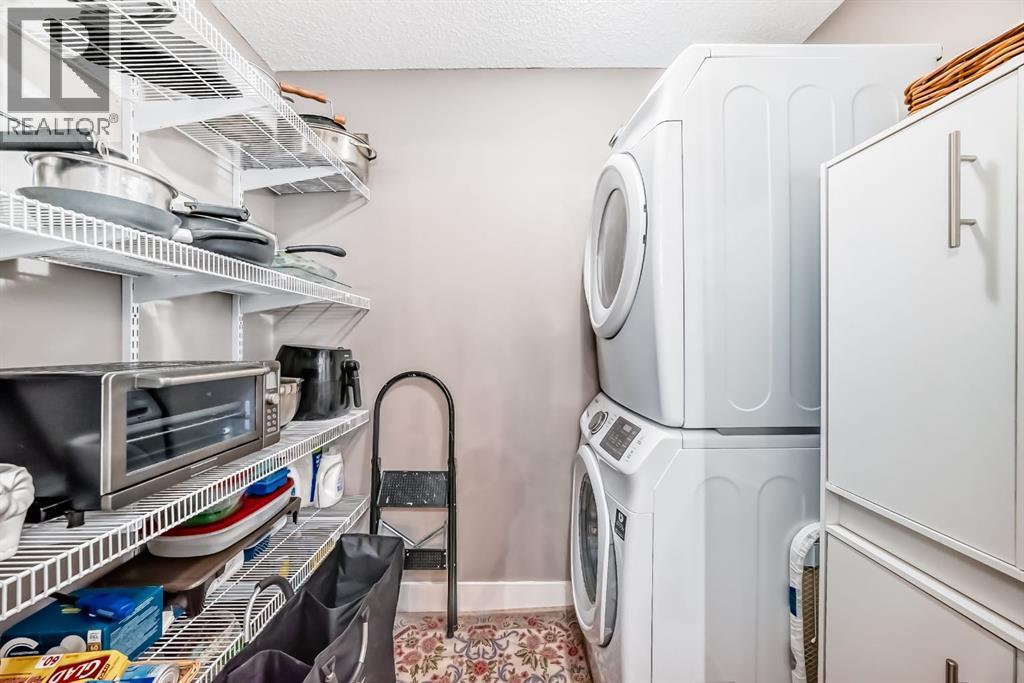 ONE OF THE BEST LOCATIONS IN THE VILLAGE OF WESTHILLS WITH DOWNTOWN VIEWS. Updated kitchen which includes Granite countertops throughout, Stainless Steel appliance package which includes a newer fridge, stove, dishwasher and microwave oven. Updated kitchen cabinets, sink and faucet. Large walk-in pantry. Engineered hardwood floor throughout. Most of the lighting has also been updated. Large master bedroom with plenty of room for a king size bed, double closets. Spacious living room with a fireplace. The sliding doors off the living room lead to a private balcony with a large separate storage room. This property is located close to downtown, parks, off lease areas, Edworthy Park and easy access to Stoney Trail. This home shows "Pride of Ownership" and has been very well maintained. (id:55690)