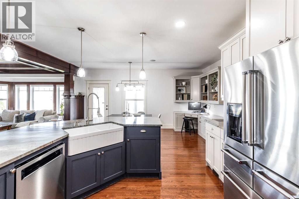 Welcome to this incredible masterpiece in Terrace: 85 Terrace Close NE. Built by Kenco, this is the first time this home has been on the market, and it could very well be the last. A residence where classic architecture and elegance meet the warmth of a family home. Tucked away in one of Medicine Hat’s most prestigious cul-de-sacs, this stunning 2,546 square foot home is far more than just a house; it is a backdrop for a life well-lived. 85 Terrace Close seamlessly blends grand finishing with intimate comfort. From the moment you open the door and see gleaming hardwood floors, arched doorways and classic staircase you will feel a sense of calm. The kitchen is a culinary dream featuring a massive social island, high-end appliances, and a dedicated pantry complete with an extra fridge for the ultimate hosted parties. The main floor flows naturally into a sun filled living room anchored by one of three gas fireplaces, where you'll look out on the private, park-like backyard. The overside double heated garage is smartly attached at the rear of the home to maintain the beauty and charm of the front, and keep the yard feeling private. Retreat to the upper level to find a primary suite that redefines luxury, boasting square footage and its very own oversized bathroom, walk in closet, gas fireplace and reading space for slow mornings and cozy evenings. A private deck will allow you to enjoy sunrise and sunset views. Two additional generously sized bedrooms (with a secret passage way!) and a bathroom complete the top floor. The entertainment continues in the fully finished basement, home to a massive living space, and a sunken media room with a theatre screen that promises unforgettable family movie nights. Exceptional storage and two additional bedrooms - perfect for guests - finish the lower level. Beyond the aesthetics, this home features modern efficiency with its solar panel system. Whether you’re soaking in the hot tub under the stars, exploring the adjacent walking p aths, or simply enjoying the convenience of a well designed home, every detail here has been curated for ease and joy. This is a forever home - meticulously designed and cared for, and ready for you to simply turn the key and start your next chapter. (id:55690)