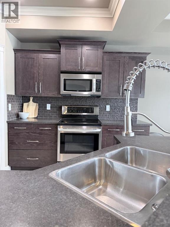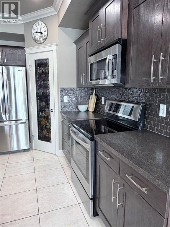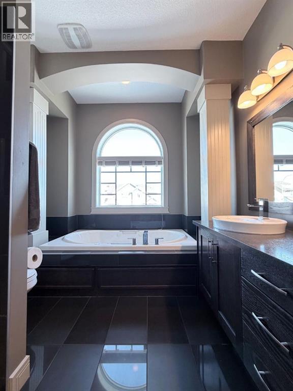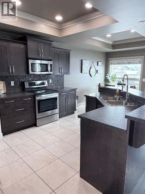 Welcome to this stunning bi-level home located on a CORNER LOT in the sought after community of Signature Falls! Step inside to an inviting OPEN-CONCEPT layout featuring vaulted ceilings, recessed lighting, and an abundance of NATURAL LIGHT flowing throughout . The kitchen is both stylish and functional, featuring stainless steel appliances, a corner pantry, tile flooring, dark oak cabinets, tile backsplash, and a centre dining nook , perfect for everyday living and entertaining. A rear door leads to the deck, perfect for summer BBQs and outdoor relaxation. The living room is warm and welcoming with a cozy gas fireplace, while a large den just off the kitchen features a bay window and glass wall, creating the ideal space for a home office or sitting area. The master bedroom is thoughtfully set on its own level, offering a LUXURIOUS ENSUITE with DOUBLE SINKS, JACUZZI TUB, separate shower, and WALK-IN CLOSET. The DEVELOPED BASEMENT adds more living space, complete with a large family room, 2 additional bedrooms, and a 3 piece bath with a beautiful tiled shower, perfect for guests or a growing family. With CENTRAL AIR CONDITIONING, you’ll stay comfortable all summer long. The HEATED 22x24 ATTACHED GARAGE adds convenience and functionality year round. Outside, enjoy a fenced and landscaped backyard, with easy access to the park behind. NO REAR NEIGHBORS! Call today for a viewing! (id:55690)