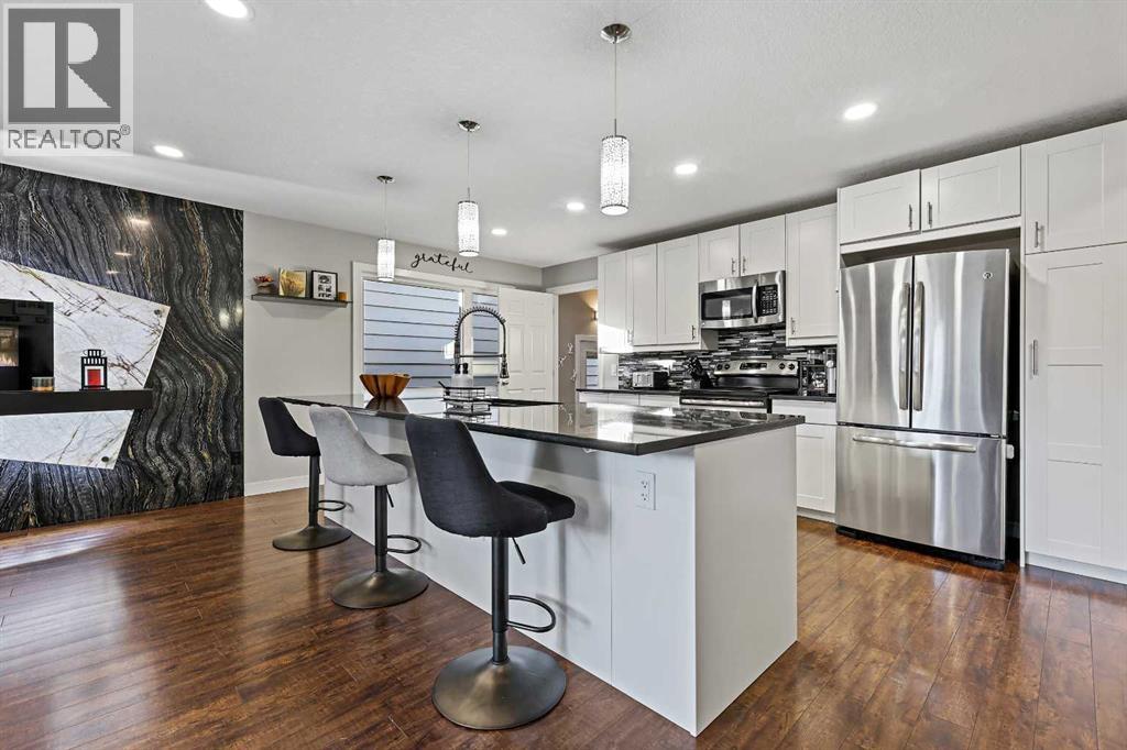 3+1 Bedrooms | 3 Bathrooms | 1,143 Sq. Ft. | Air-Conditioned | Steps from Fish Creek Park Welcome to this beautifully updated bungalow in the highly desirable lake community of Midnapore — just one block from Fish Creek Provincial Park and walking distance to schools, the lake, and year-round recreation. Step inside to an open-concept layout that blends comfort and style. The spacious kitchen features a large island, granite countertops, stainless steel appliances, and plenty of prep space — perfect for gatherings and family meals. The front living room showcases a stunning stone fireplace with backlighting, creating a cozy and elegant focal point. The primary bedroom offers a walk-in closet and convenient two-piece ensuite, while two additional bedrooms and an updated family bath complete the main floor. Downstairs, the fully developed basement provides incredible additional living space — including a massive recreation room with a unique stone water feature, a large fourth bedroom, and a luxurious bathroom with a steam shower and heated floors. The laundry area is neatly tucked away, maintaining a clean, functional layout. Practical upgrades include vinyl windows, high-efficiency furnace, upgraded electrical panel, and enhanced attic insulation, ensuring comfort and peace of mind year-round. Enjoy outdoor living in the oversized yard featuring stamped concrete patios in both the front and back, a fire pit, low-maintenance PVC fencing, and sprinklers. A tidy paved back lane and ample room to build a future oversized garage if desired. With lake privileges, you’ll enjoy all-season fun — from swimming and paddle boarding in summer to skating, tobogganing, and fishing in winter. This is a fantastic family home in a friendly, established neighborhood that perfectly balances recreation, community, and convenience. (id:55690)