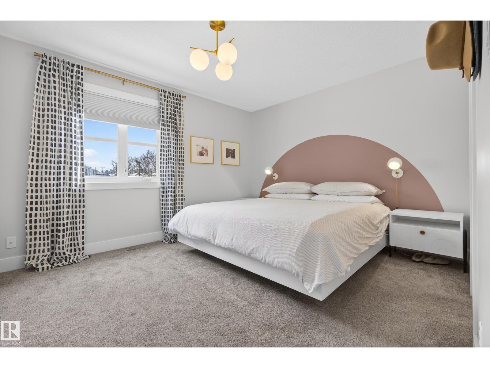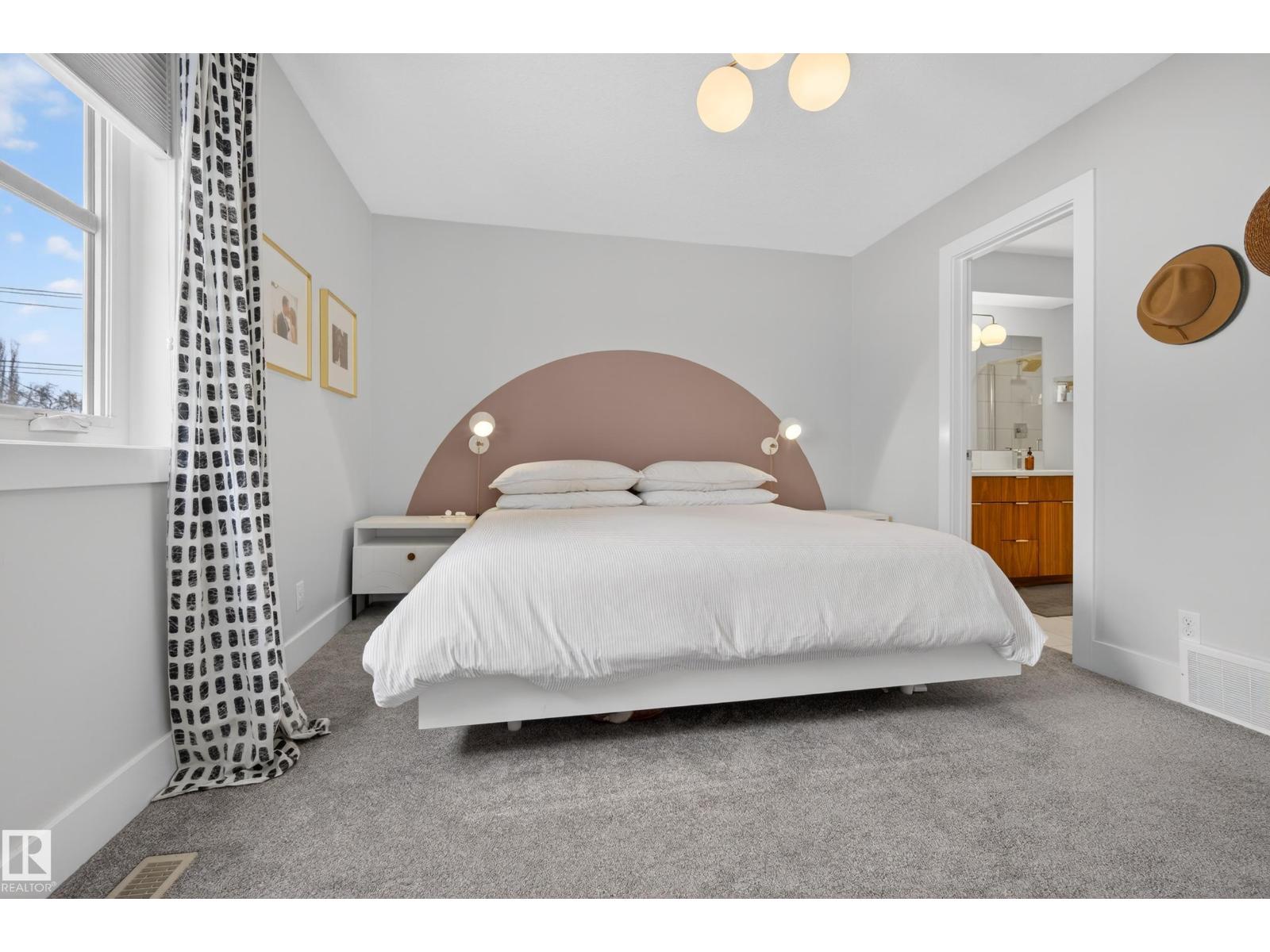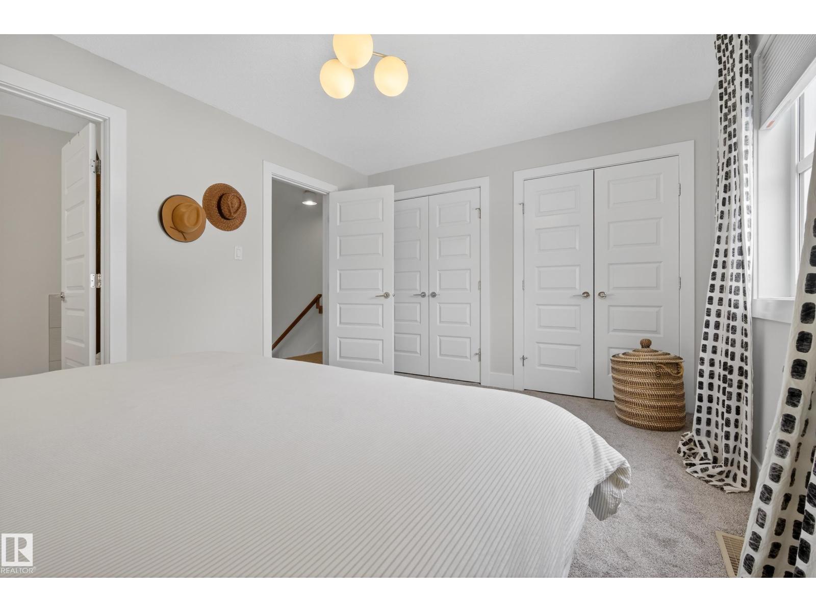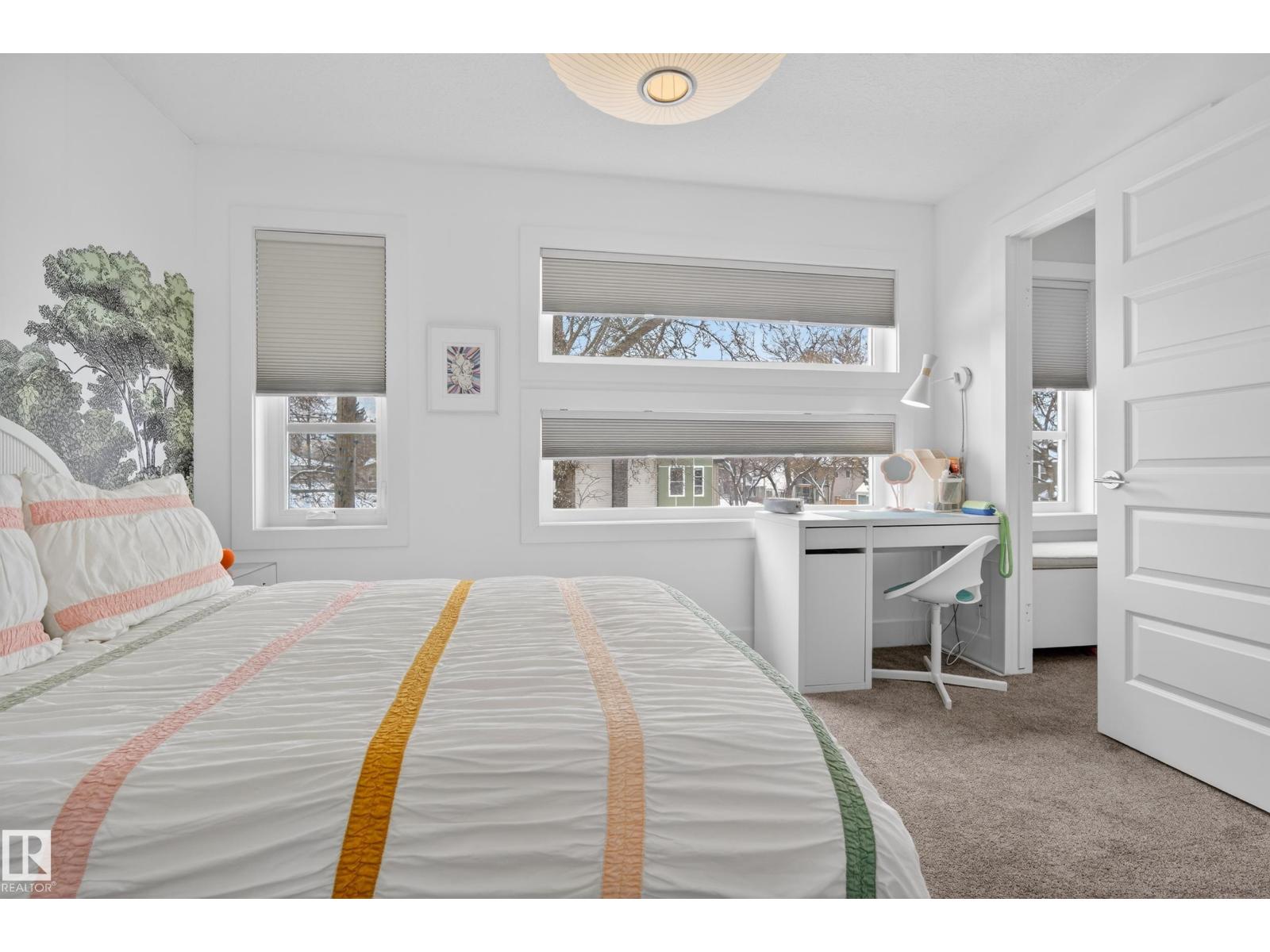 Welcome to this stunning 3-storey townhouse offering the perfect blend of modern style and functional living! The bright main floor features hardwood floors, a cozy gas fireplace, and an open-concept layout connecting the living, dining, and kitchen areas. The kitchen boasts quartz countertops, stainless steel appliances, a spacious dining area, and a convenient 2-piece bath. The second level offers two generous bedrooms, each with its own ensuite, plus a dedicated laundry space with updated cabinetry. The third floor features a private third bedroom and access to your own rooftop patio—perfect for relaxing or entertaining. The fully finished basement includes a rec room, 4th bedroom, and full bathroom. The garage is equipped with power for EV charging, and you’ll love the beautifully landscaped common yard. Ideally located within walking distance to Mill Creek Ravine, Bonnie Doon Shopping Centre, La Cité Francophone, and Colombian Coffee, this home offers incredible value in a prime location! (id:55690)