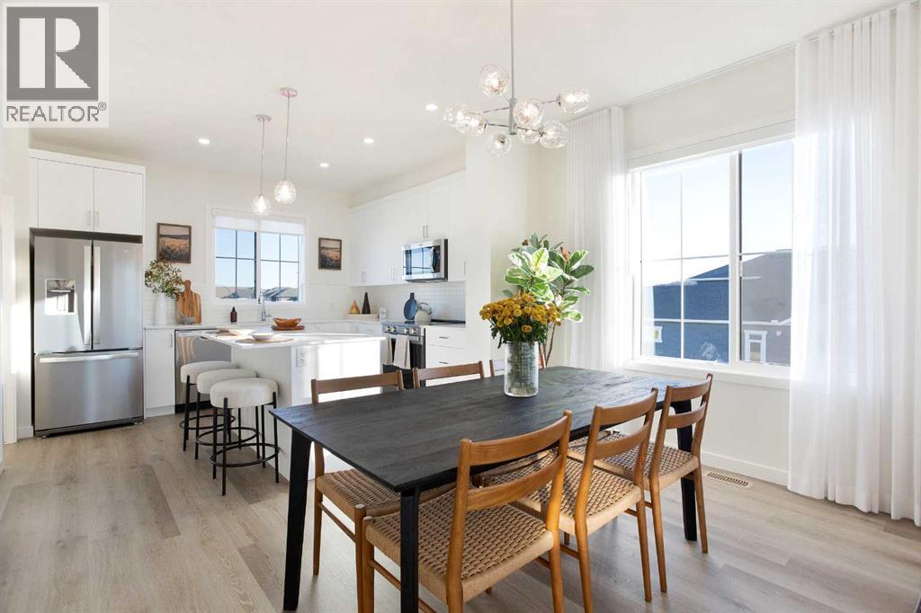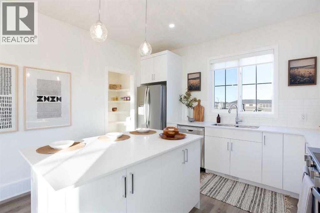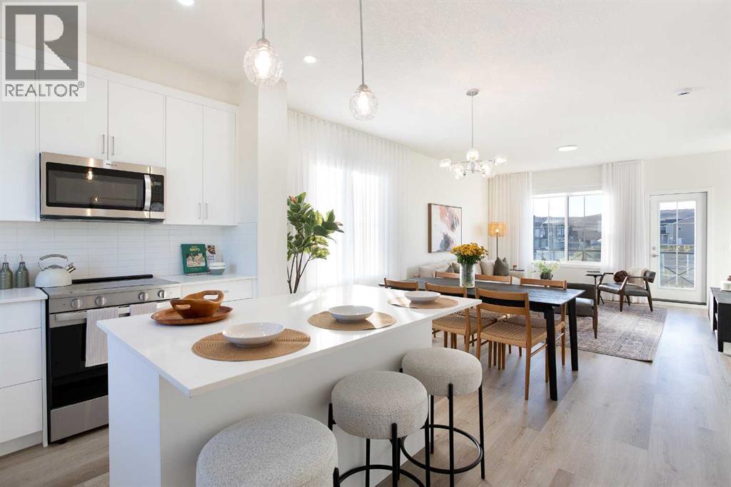 Discover modern comfort and style in this beautifully designed three-storey townhome with a basement den in the highly sought-after community of Sirocco. Offering 3 bedrooms, 2.5 bathrooms, and a single attached garage, this home combines functionality with refined design, creating a space that’s as versatile as it is welcoming.With a smartly planned layout and a dark interior palette, this home feature just the right mix of warmth and sophistication. The main floor’s 9’ ceilings and open-concept design provide an airy feel, while luxury vinyl plank flooring adds both durability and contemporary appeal. The kitchen is a true standout, offering slab-style cabinets with 42” uppers, soft-close drawers and doors, quartz countertops, and a sleek tile backsplash. A contemporary lighting package—already preselected—enhances the stylish finishes, ensuring a seamless look from the day you move in.Upstairs, you’ll find three spacious bedrooms, including a private primary retreat with a beautifully appointed ensuite. The two additional bedrooms are well-sized for children, guests, or a home office, while a full main bath ensures convenience for the entire household. Warm grey carpet with a thick 8lb underlay adds comfort to the stairs, bedrooms, and upper hallway, while 8’ ceilings maintain a bright and open feel. Bathrooms are finished with quartz counters, tile backsplashes, chrome faucets, and high-efficiency toilets, combining everyday function with timeless design.The basement den provides valuable extra living space, perfect for a quiet home office, hobby area, workout space, or media room. This flexible level makes it easy to adapt the home to your lifestyle needs—whether you’re entertaining, working from home, or simply seeking a place to unwind.Practical design touches such as knockdown ceilings, thoughtful finish selections, and a single attached garage add to the overall livability. Every detail has been chosen to create a home that balances style with every day convenience.Living in Sirocco means enjoying more than just a beautiful home. The community is rich with amenities including parks, pathways, playgrounds, and a central community pond. For golf enthusiasts, there are nearby semi-private courses, while shopping and dining options in Shawnessy and Legacy are just minutes away. With quick access to Macleod Trail, commuting into the city or heading out for weekend getaways is effortless.This 3-bedroom, 2.5-bathroom townhome with a basement den in Sirocco is the perfect choice for families, professionals, or anyone looking to combine modern living with community charm. With a bold dark palette, quality finishes, and a versatile three-storey design, these homes offer exceptional value in one of Calgary’s most exciting new neighbourhoods. (id:55690)