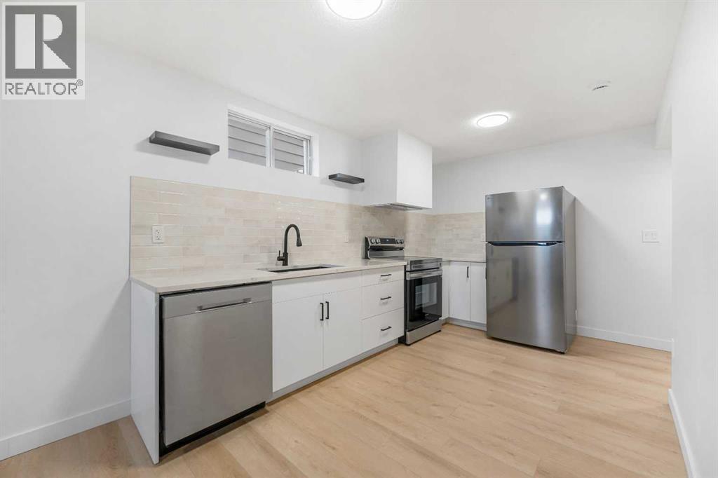 Welcome to "Paradise at Berkley"! This 5 bed + 2.5 bath fully remodeled semi-detached Bungalow with a WALKOUT Basement has been thoughtfully REMODELED from the studs up in a modern farmhouse style. With a beautifully finished 2 bed + 1 bath illegal SUITE, this home offers the perfect balance of family living with a downstairs rental, or a multi-generational household. With Brand NEW PLUMBING throughout the entire home, this property makes an incredible investment! Inside, the Open Concept floor plan is bursting with style. Superior craftsmanship is showcased throughout — from the massive Oak BEAM framing the kitchen paired with 8mm light oak LUXURY VINYL PLANK flooring running seamlessly across the home, custom 'hidden' laundry tucked behind dual Barn Doors, and new windows that flood the home with natural light. Your guests will love cozy evenings around the custom electric fireplace, where elegant tilework and a tailored frame add warmth and sophistication. The chef-inspired kitchen is a showstopper, featuring a statement Custom Range Hood, Quartz Countertops with an undermount Composite Sink, light oak Floating Shelves, a spacious Black Fluted Island with breakfast bar, matte black Hardware, a striking cloudy tile backsplash — all tied together with a full suite of Stainless Steel Appliances. The main level features 3 spacious bedrooms and 1.5 baths, including a tranquil primary suite with a VIEW and walk-through closet leading to the private ensuite bath. The Walkout Basement offers a spacious 2 bed + 1 bath illegal SUITE, designed with the same attention to detail — featuring a second CUSTOM Kitchen with crisp white cabinetry, black matte Hardware, and modern finishes throughout. Enjoy the backyard, offering a private space for your family, or tenants and access to your oversized driveway. Whether you’re looking to live up, rent down, or run an Airbnb (as the current owners have successfully done over the summer months), your options are endless. Don’t miss you r chance to own ‘Paradise at Berkley’. (id:55690)